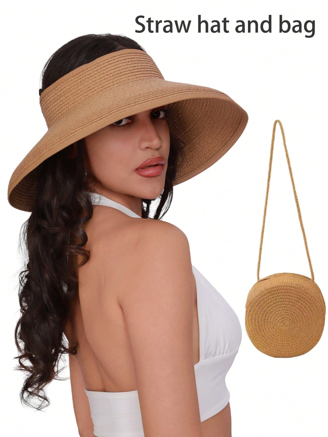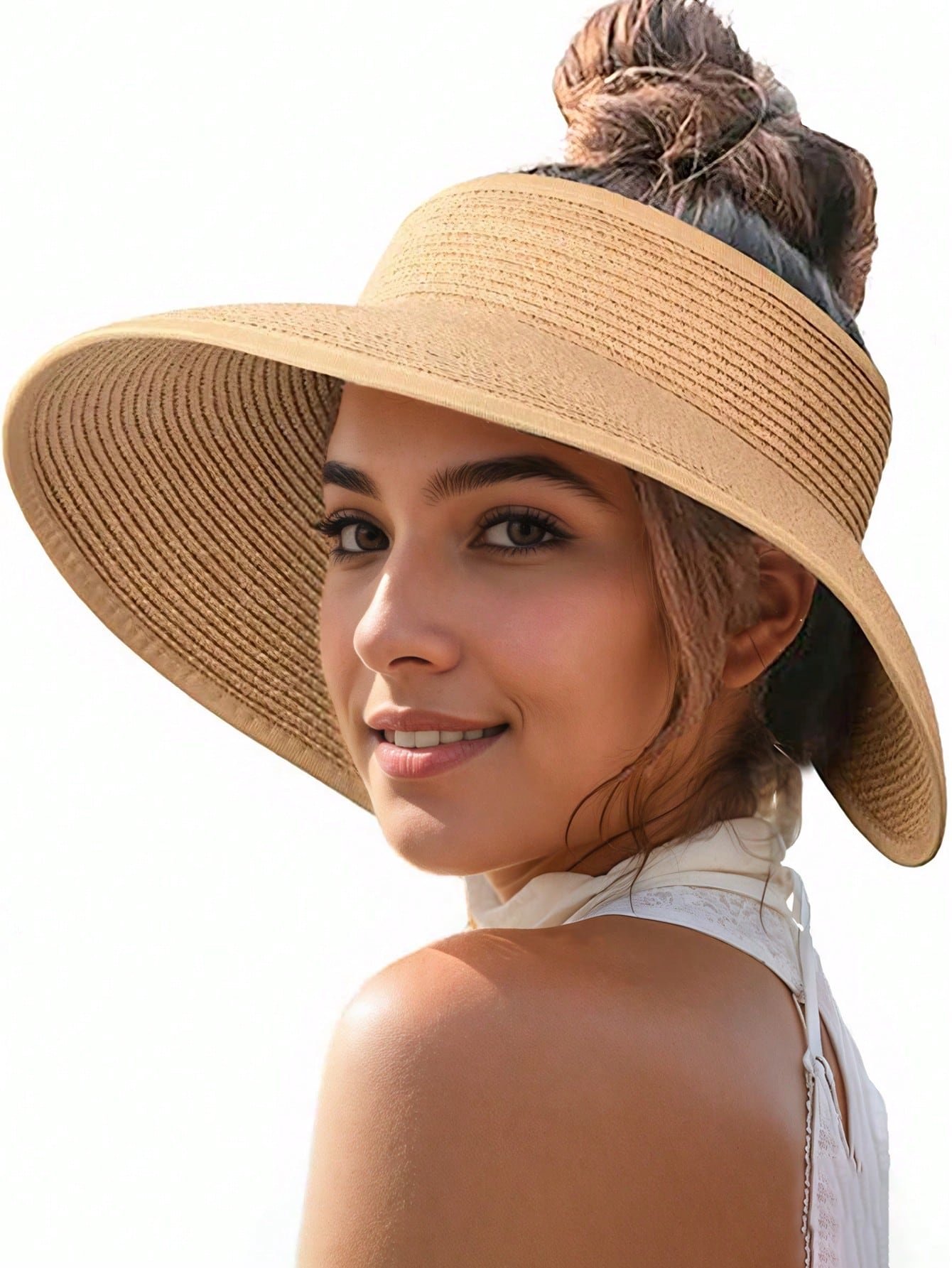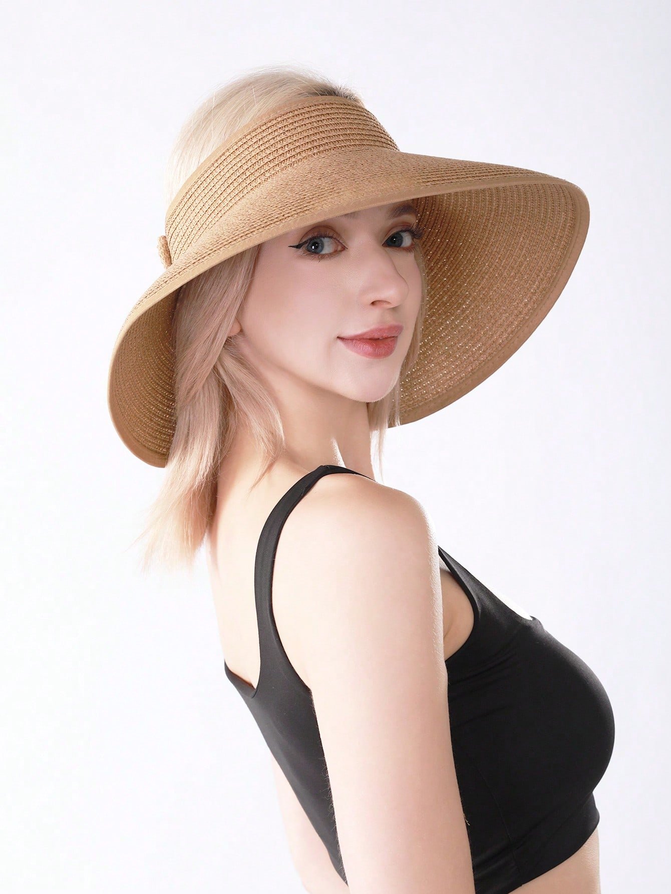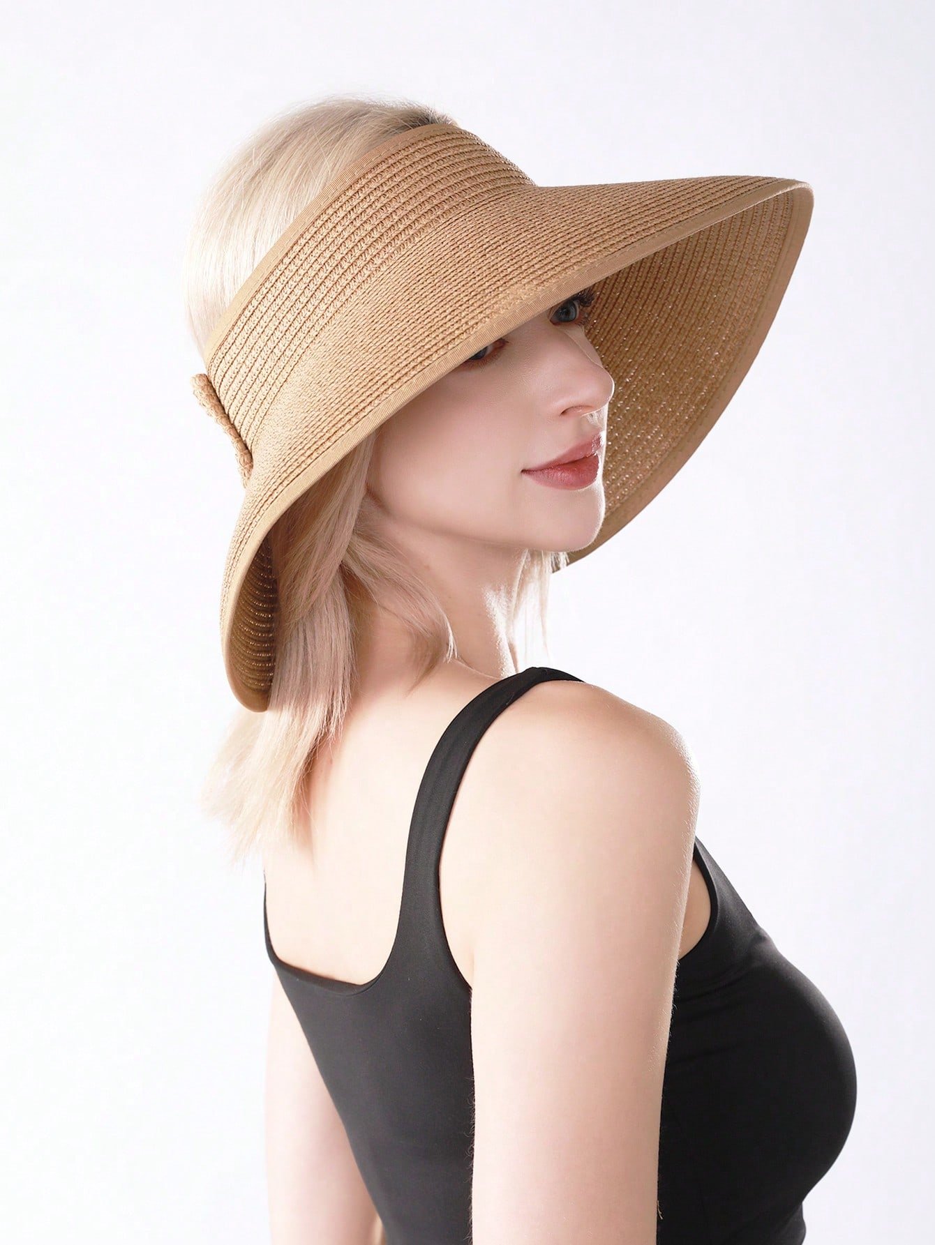 Sun Visor Hats For Women Wide Brim Straw Roll-Up Ponytail Summer Beach Hat UV UPF Packable Foldable Travel Boho Bow