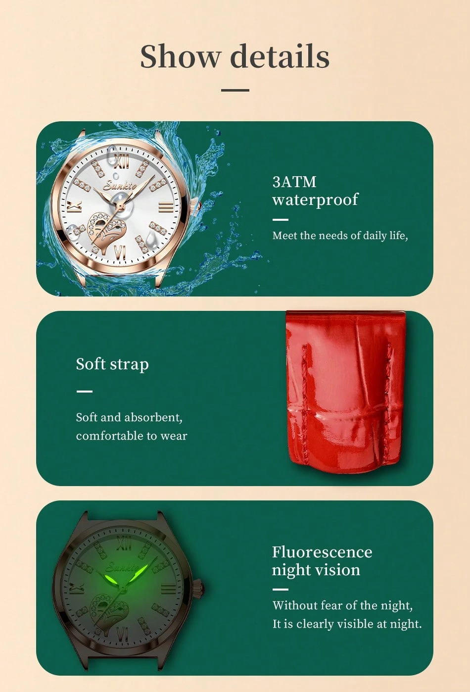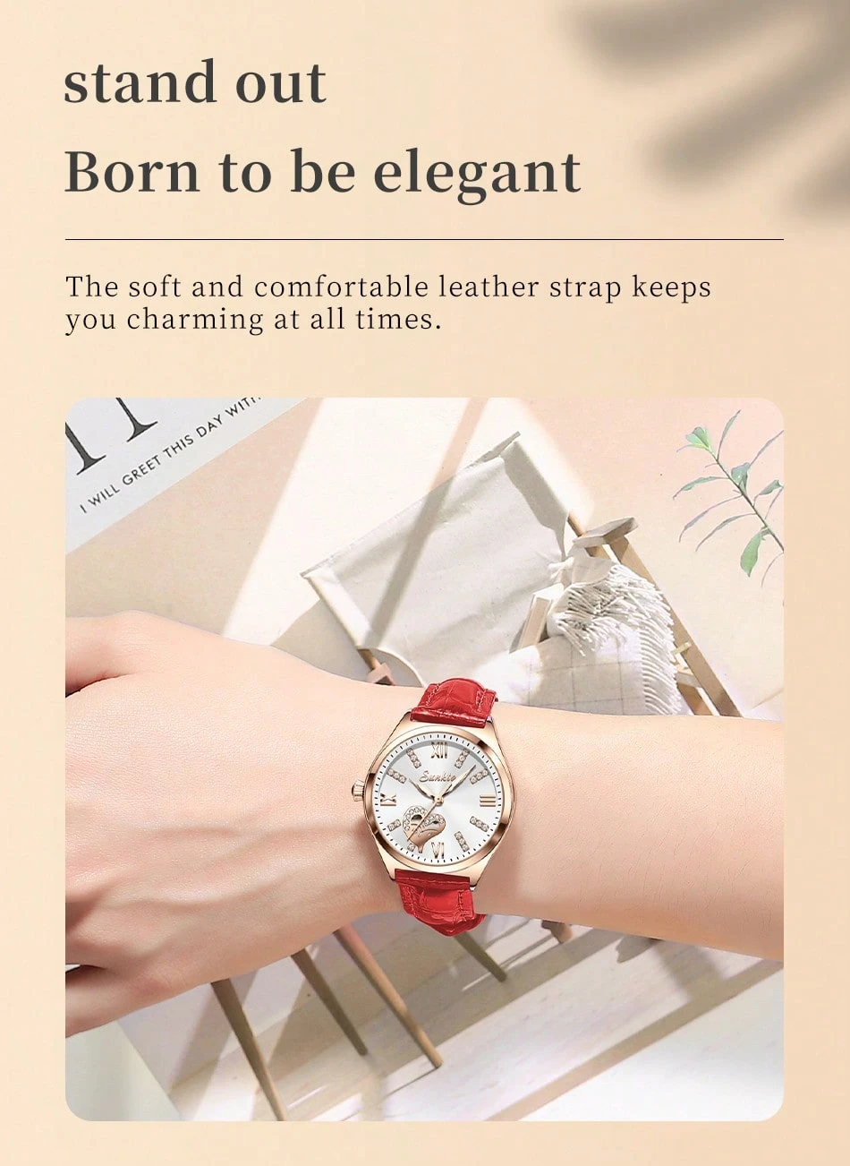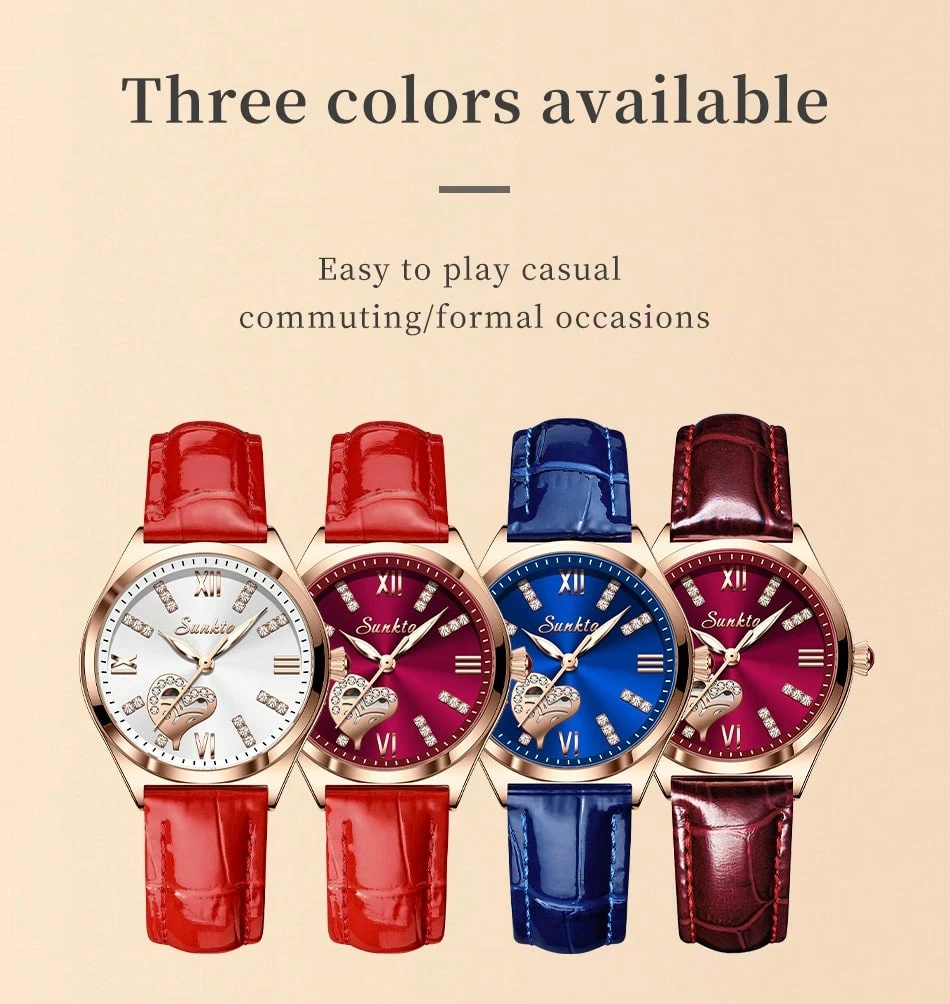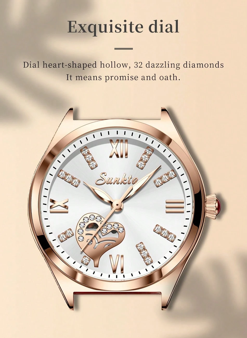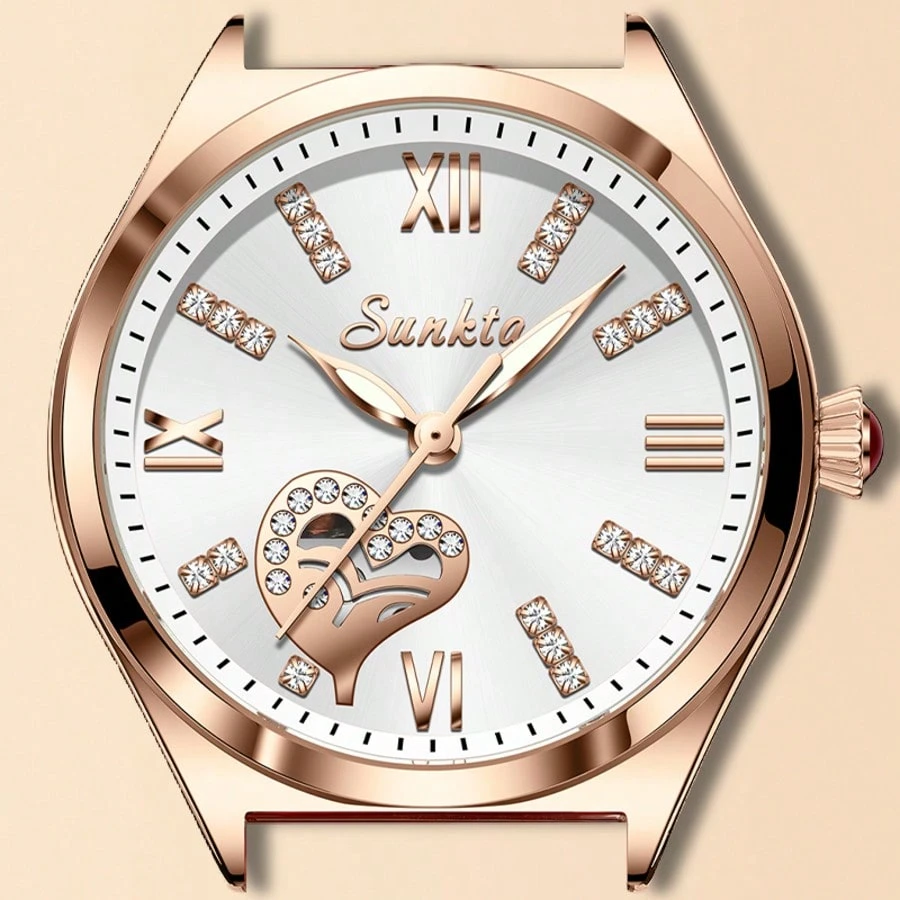 SUNKTA Fashionable Ladies Exquisite And Elegant Watch Waterproof Clock Watch Love Design Dial For Friends And Girlfriend Holiday Gifts