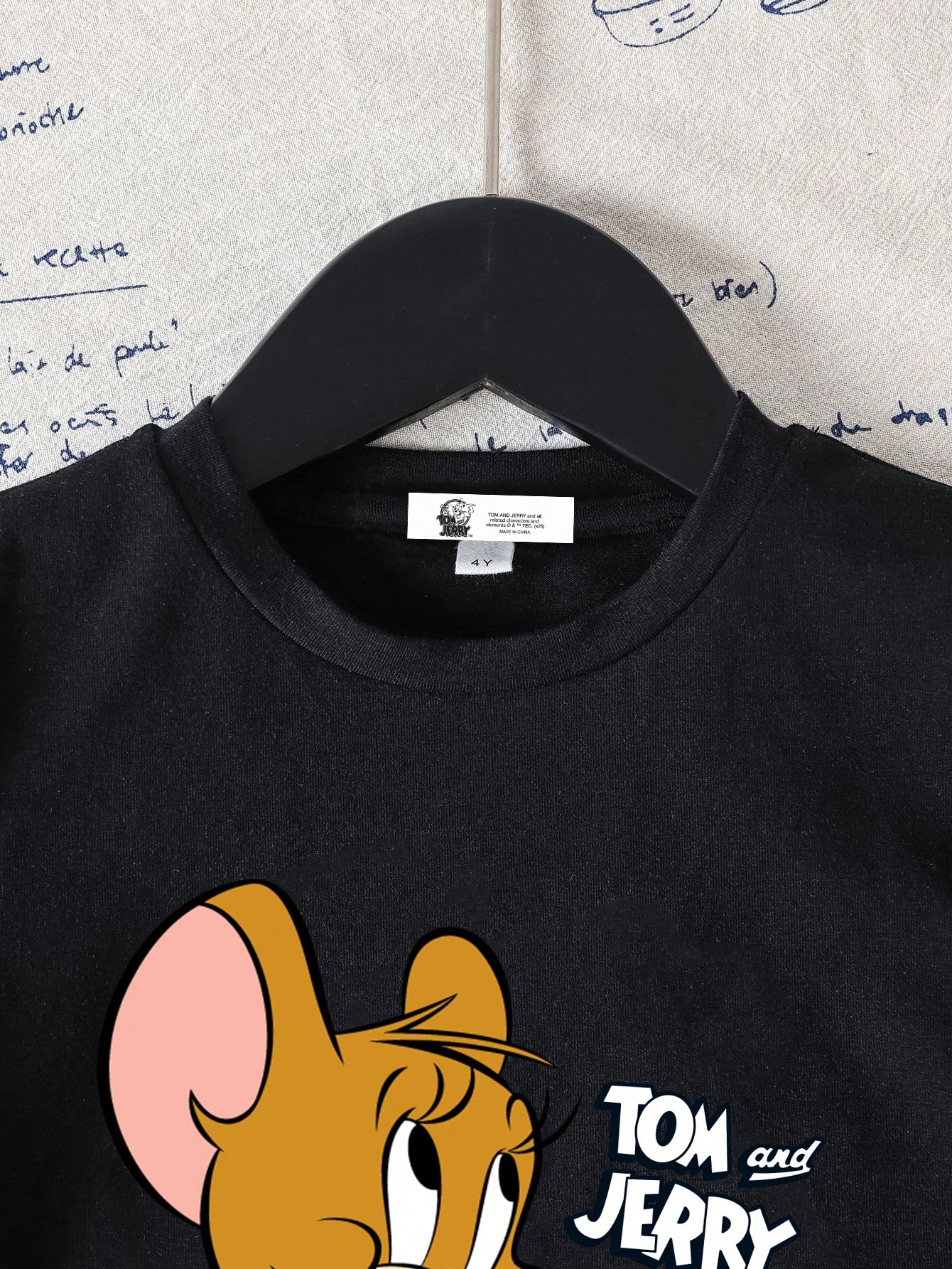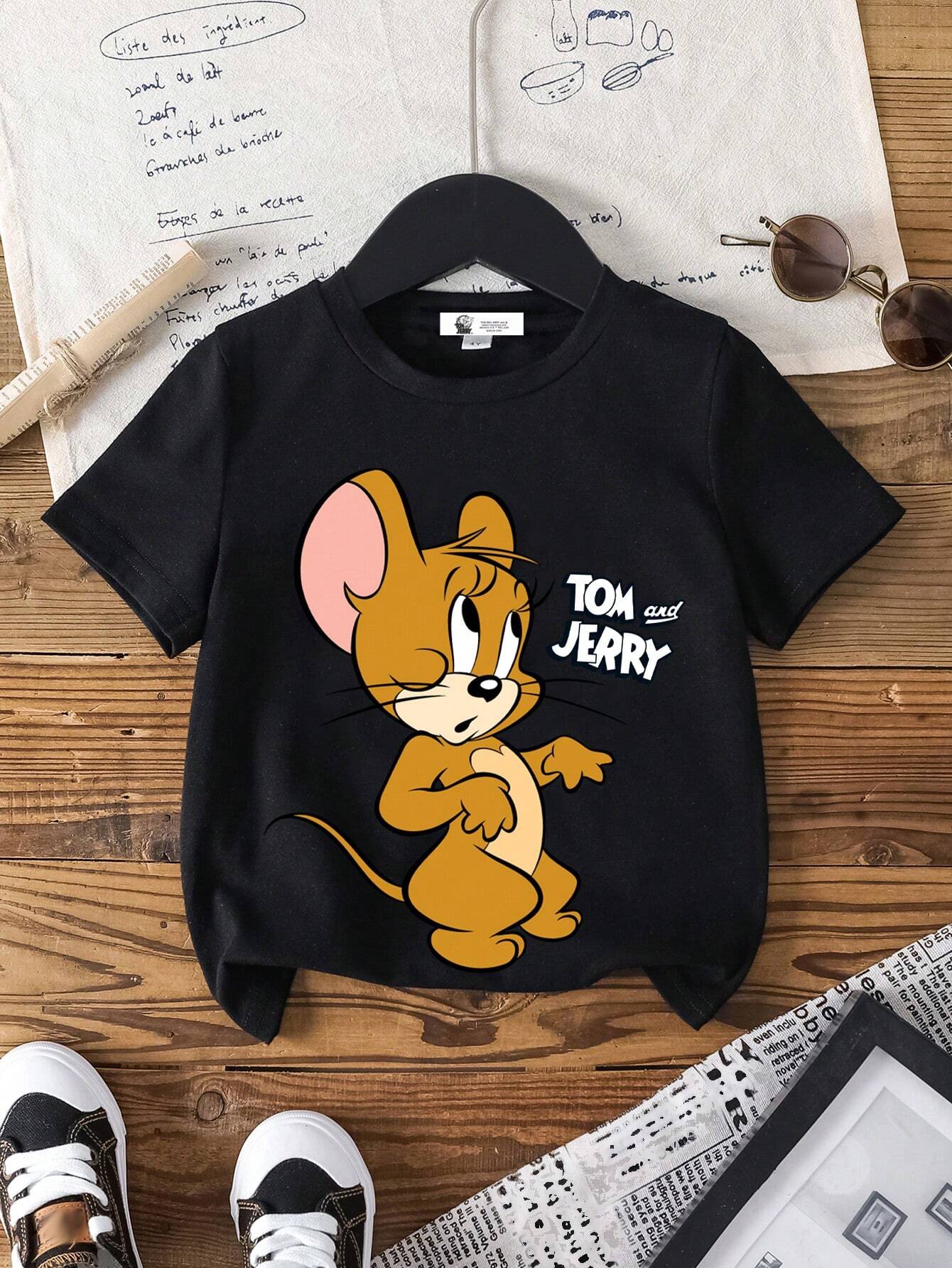 TOM & JERRY X SHEIN Young Girl Casual Cartoon Jerry Print Short Sleeve T-Shirt For Summer