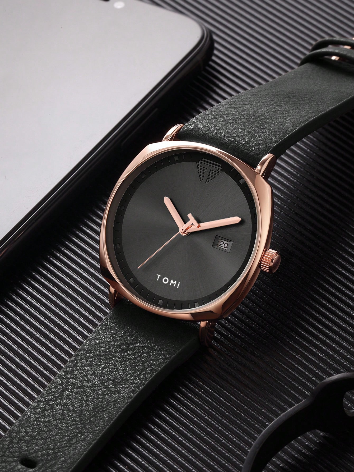 TOMI Men Round Pointer Date Quartz Watch As A Gift For Students Returning To School