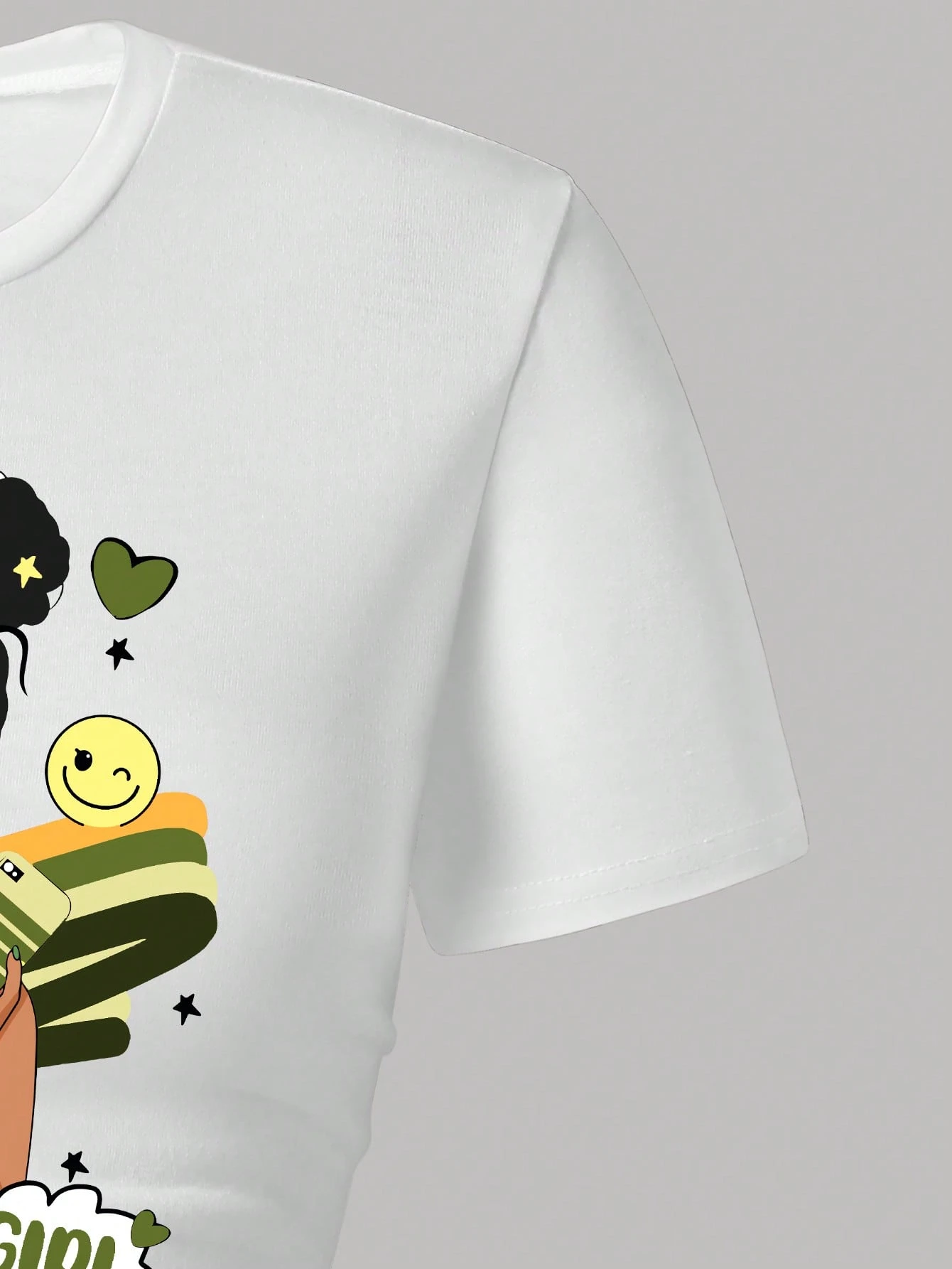 Young Girl Casual Minimalist Round Neck Short Sleeve Basic T-Shirt, Suitable For Spring/Summer
