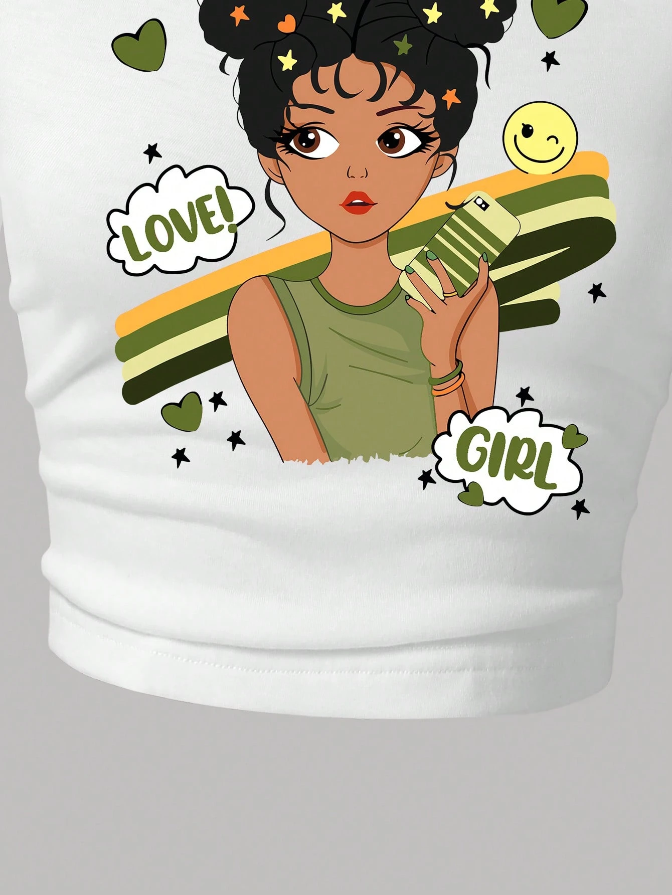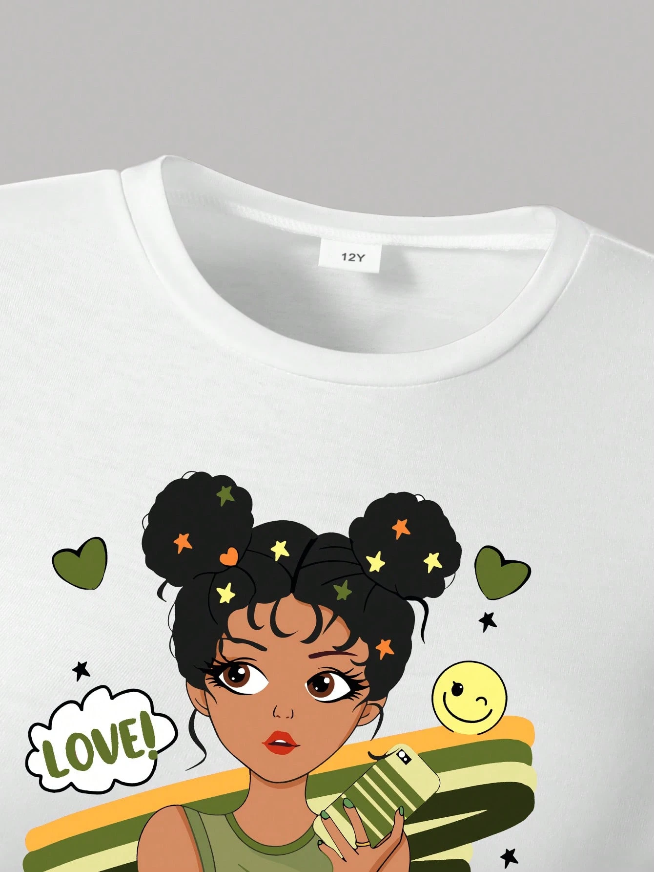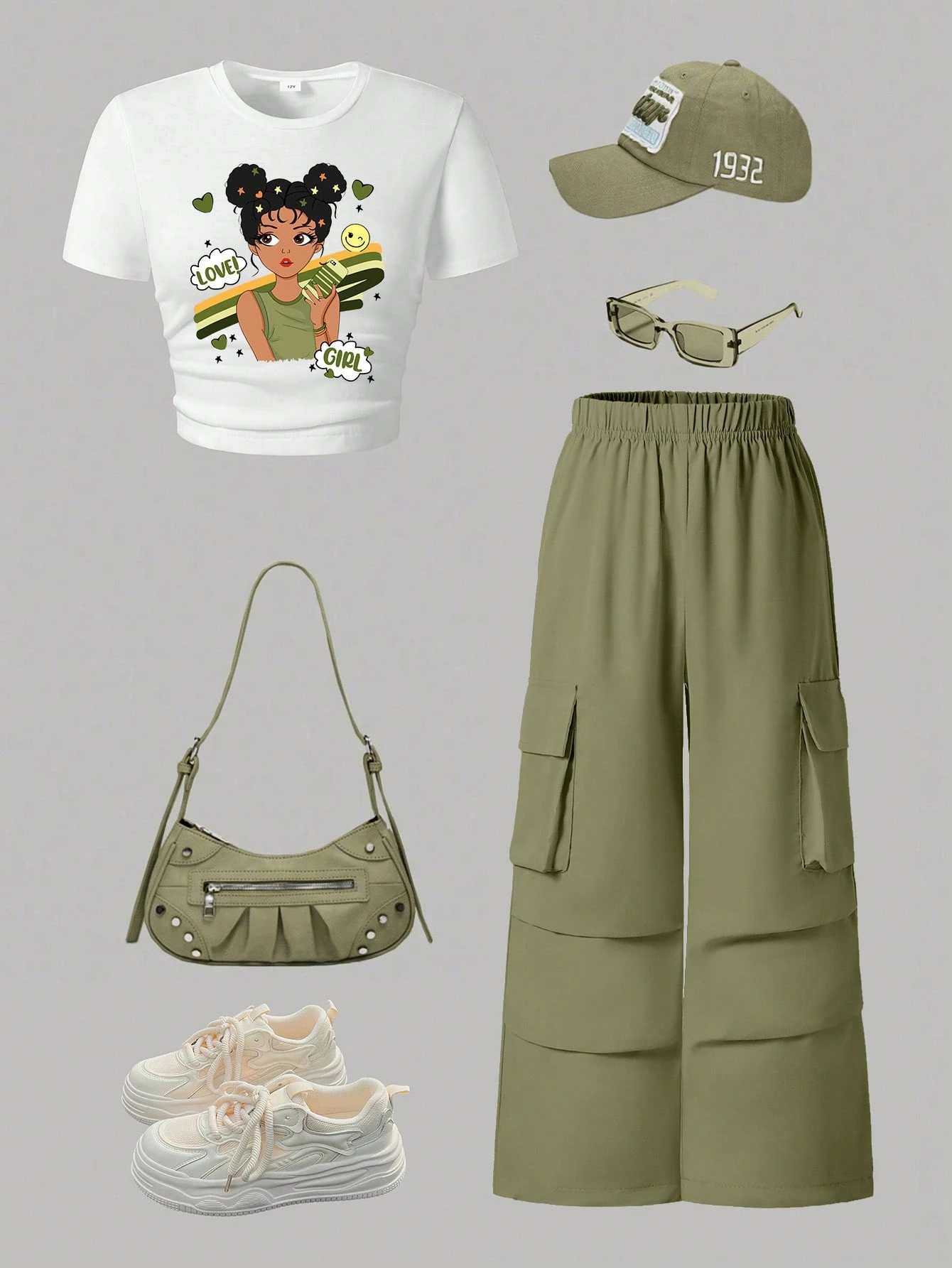 Tween Girls' Cartoon Graphic Print Short Sleeve Top And Cargo Pants Set