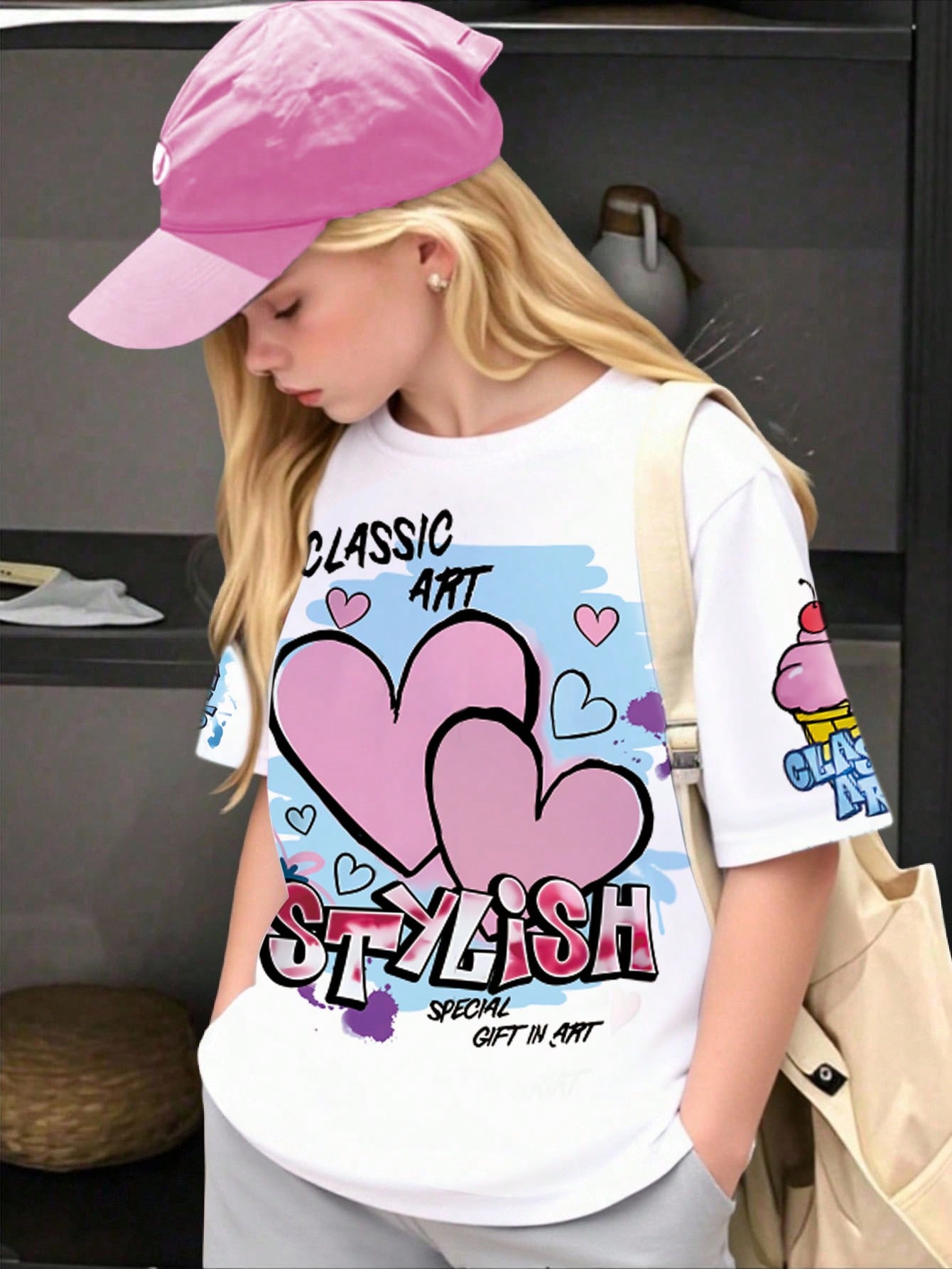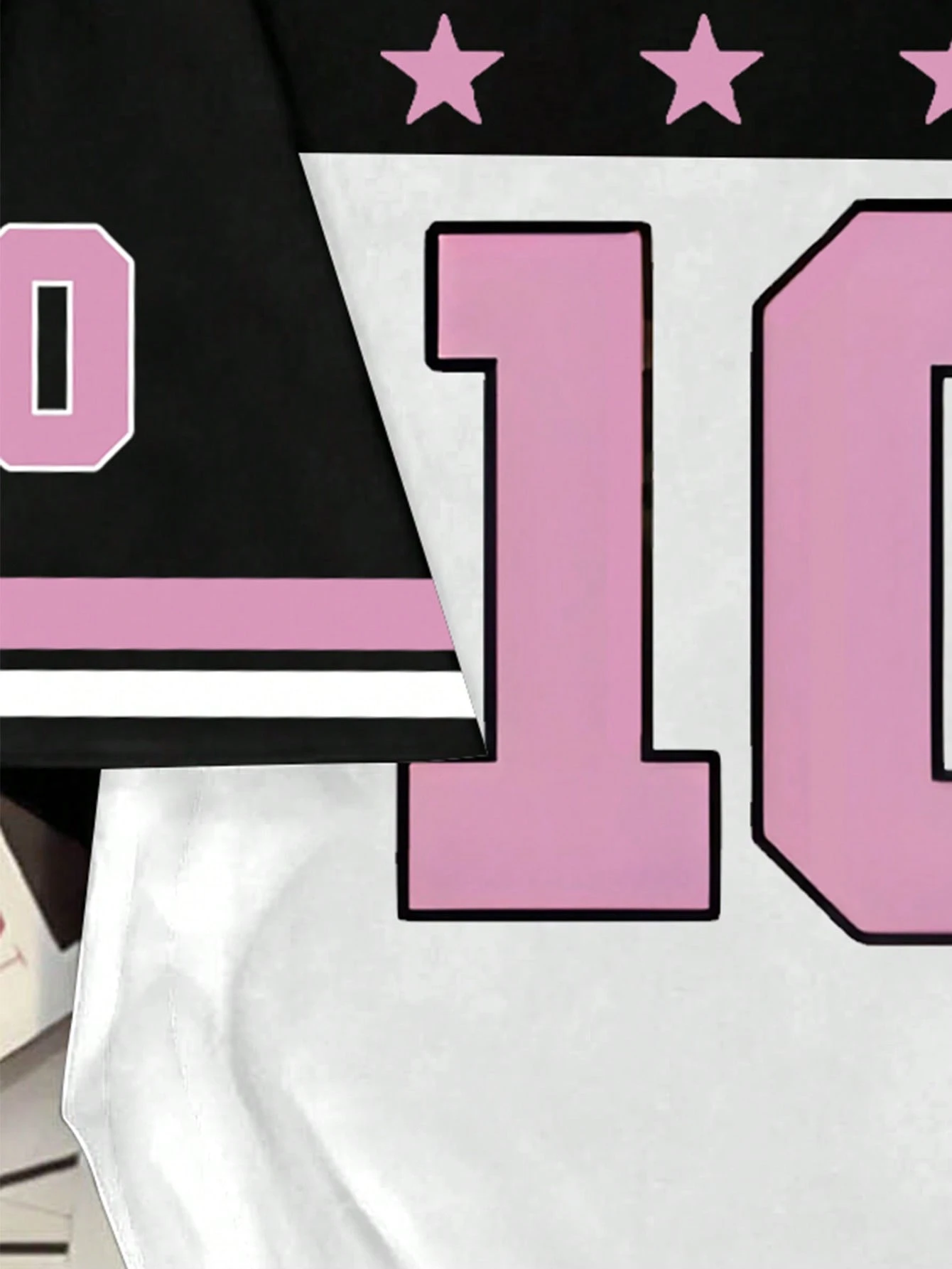 Tween Girls Casual Street Style Jersey Top, Star & Number 10 Print Colorblock Short Sleeve Crew Neck T-Shirt, Summer Sports & Leisure Wear