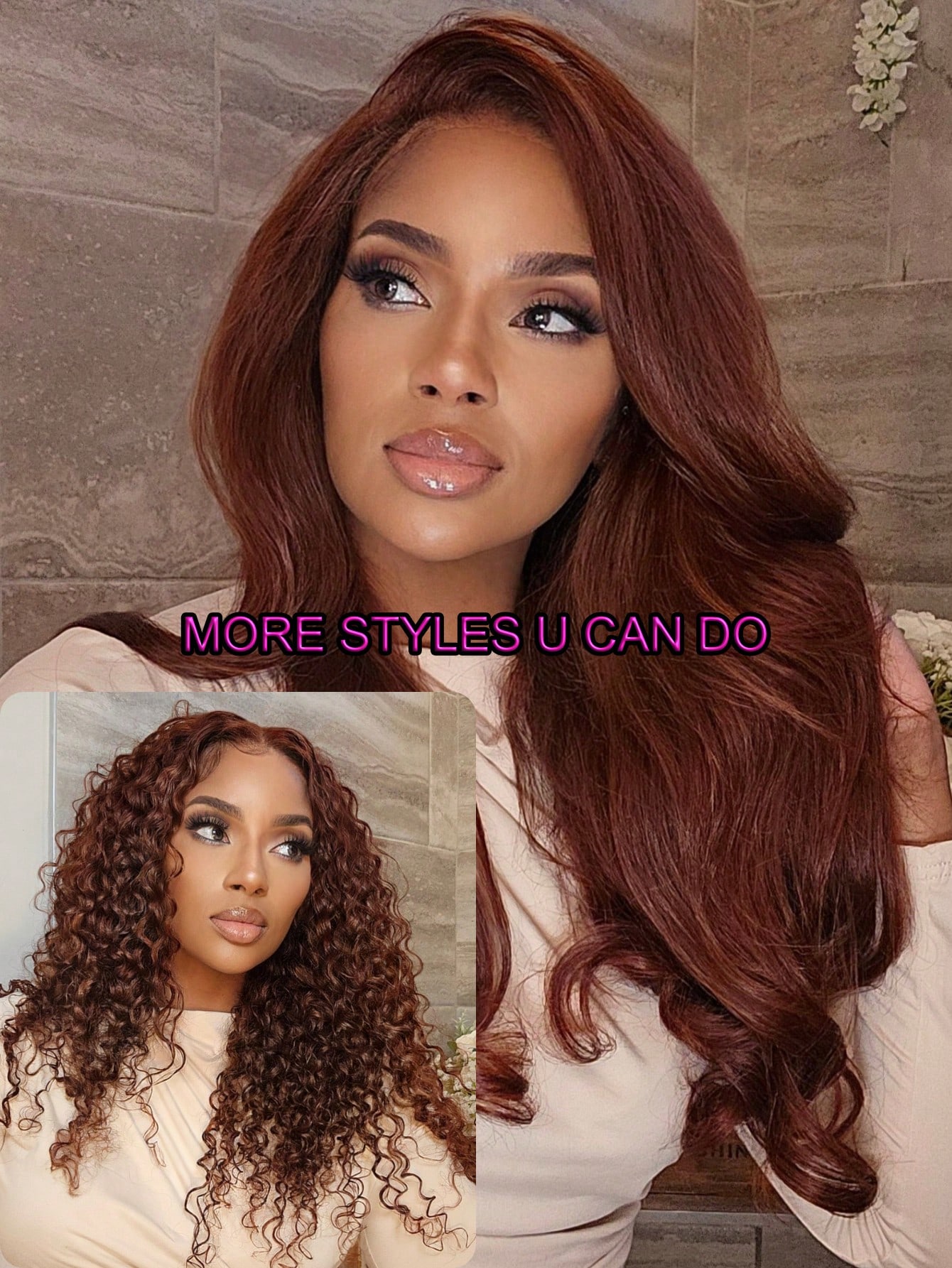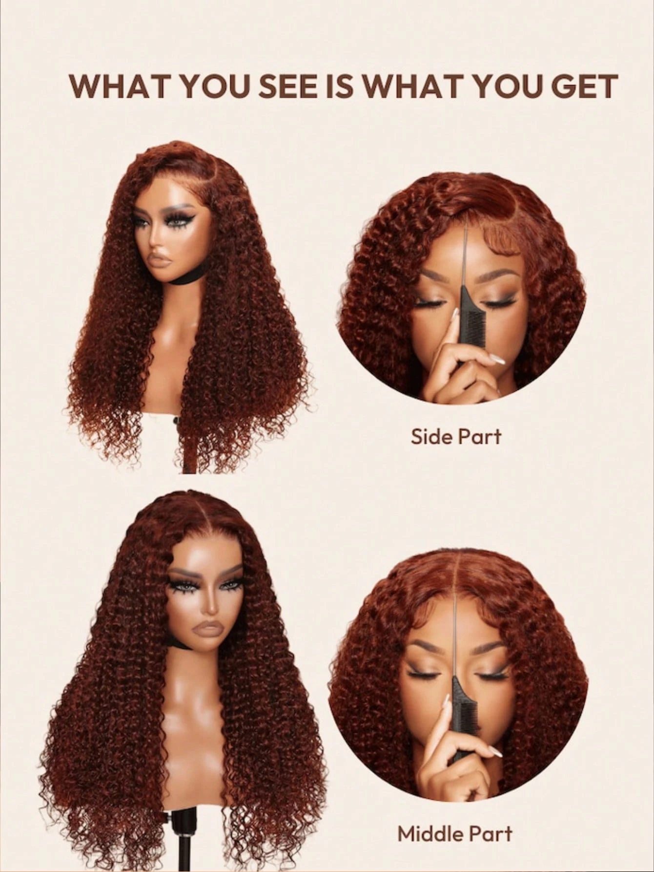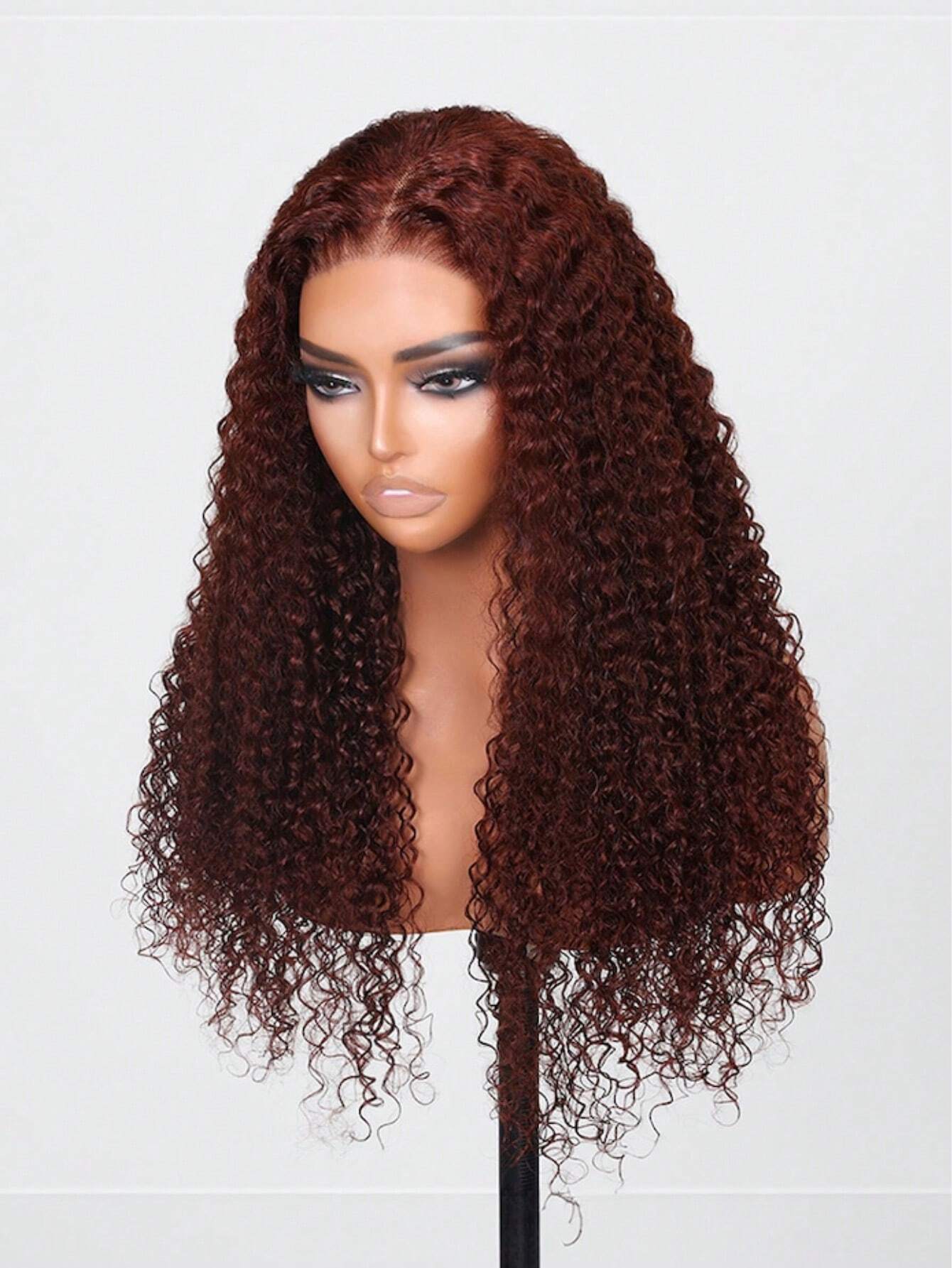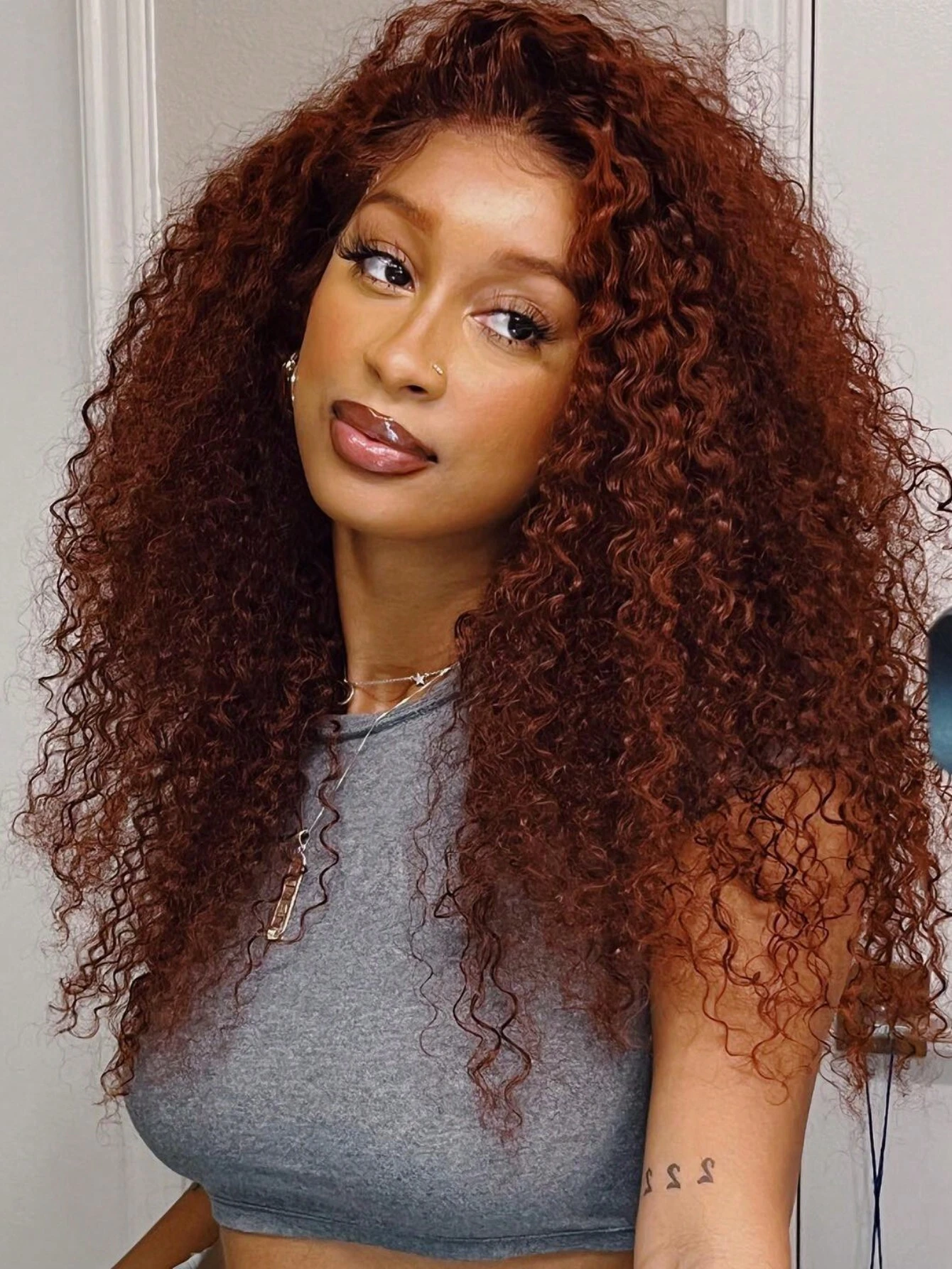 UNice Wigs Bye-Bye Knots Wig 7×5 Jerry Curly Wear Go Glueless Wig Human Hair Reddish Brown Pre Cut Pre Bleached Human Hair Lace Front Wig Hair