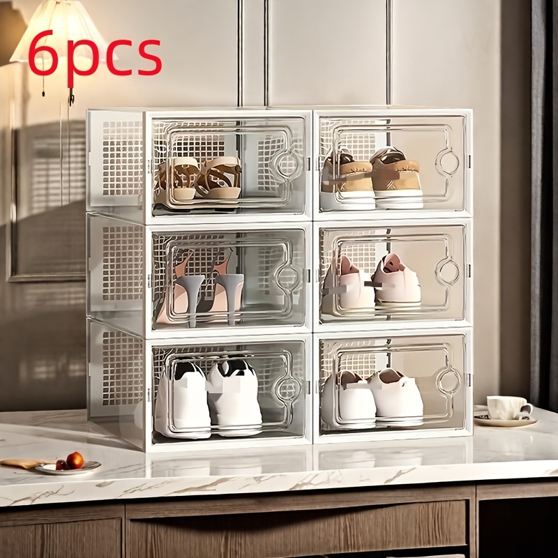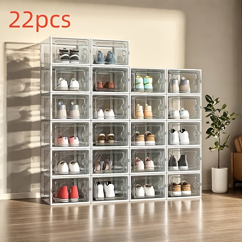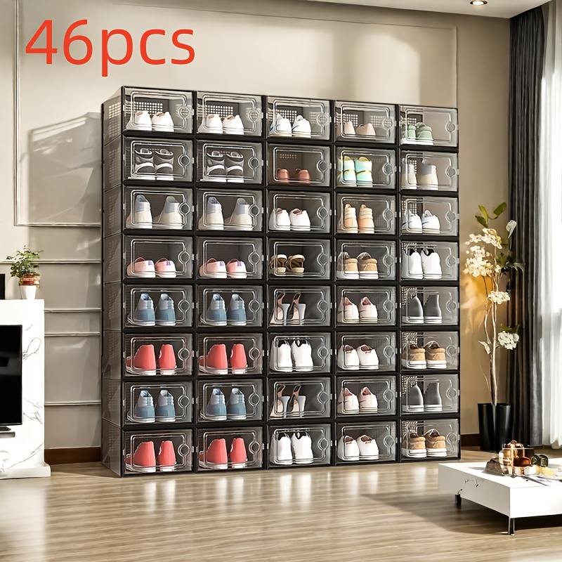 Unisex Dustproof Side-Opening Shoe Cabinets6/14/22/35/46/100pcs- Plastic Shoe Storage Boxes, Clear& Foldable, Side-Opening Buckle Doors, High-Quality Load-Bearing