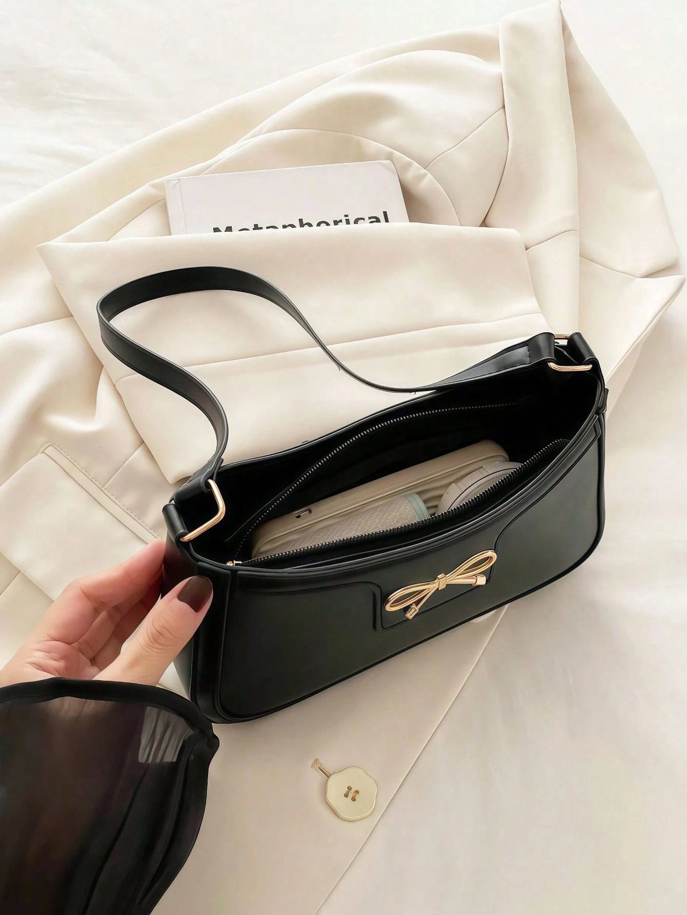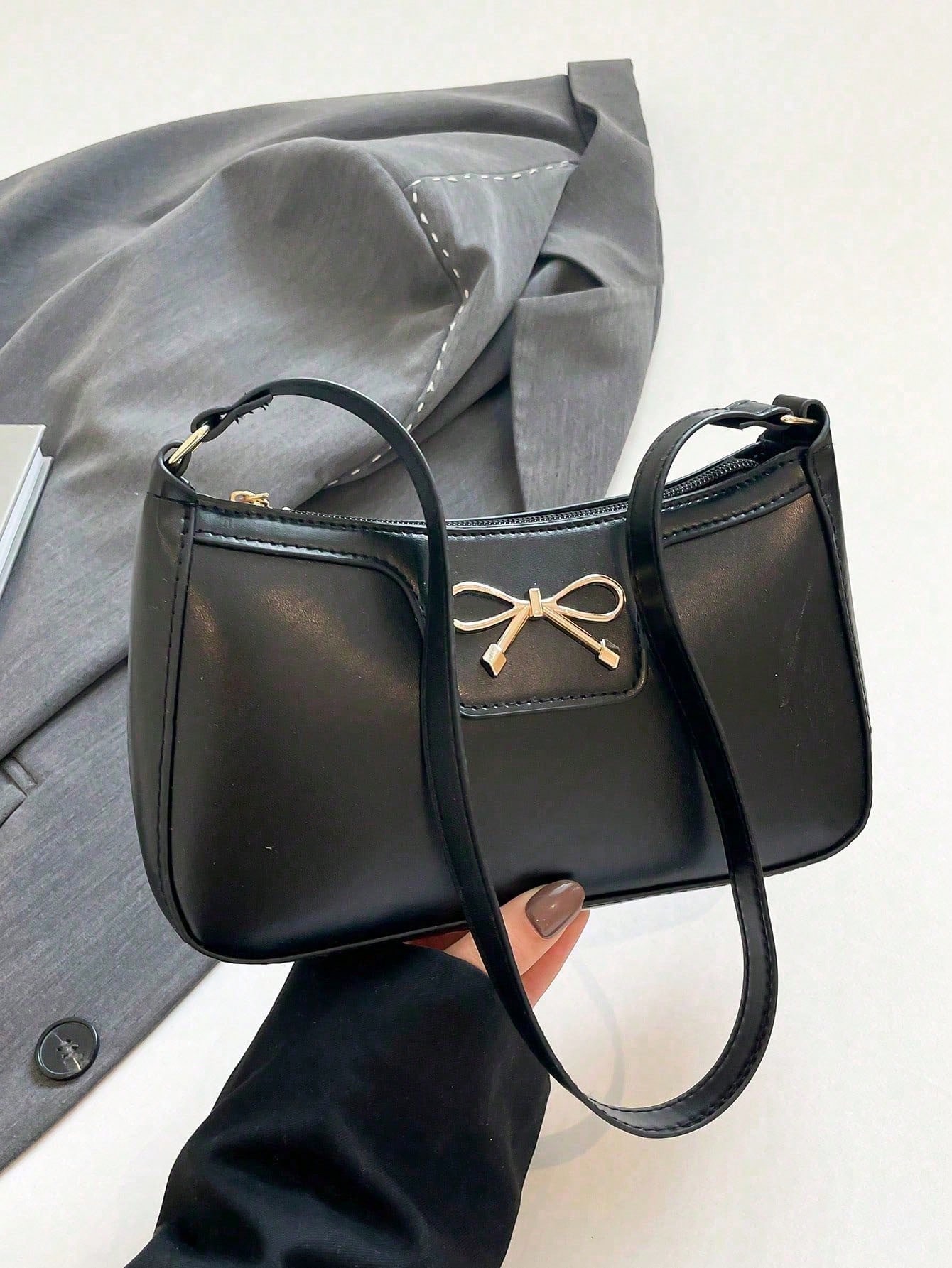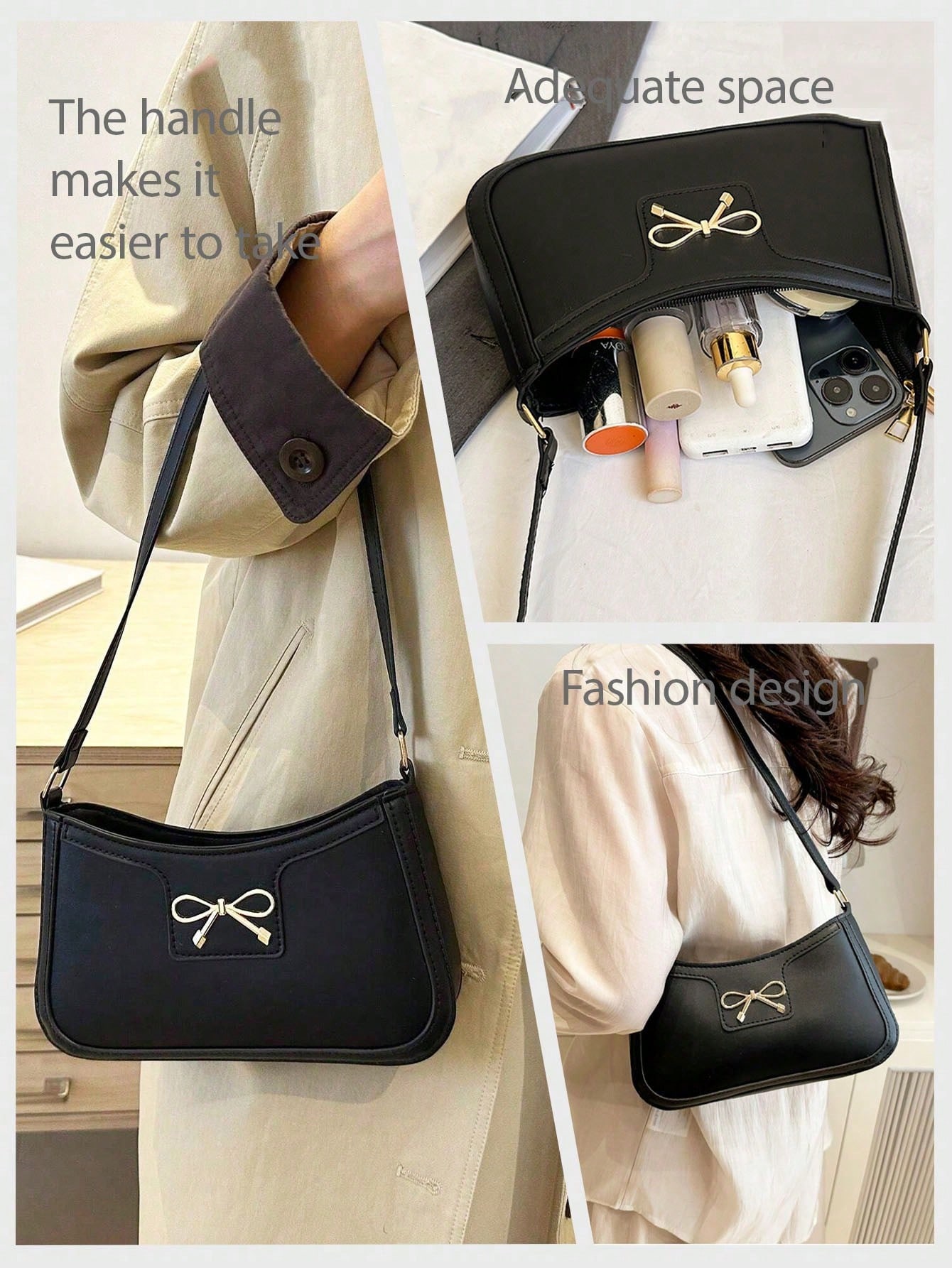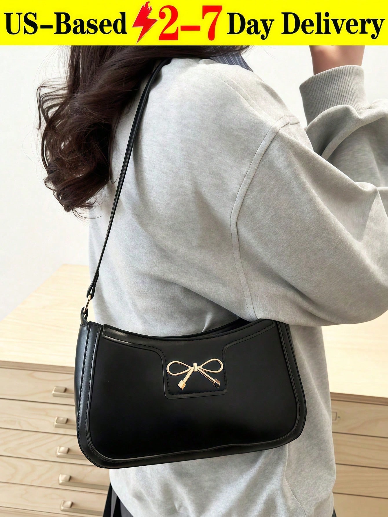 [US-Based Shipping]1pc Elegant Crescent-Shaped Underarm Shoulder Bag For Women, Chic Casual Fashion, Solid Color Underarm Bag,New Fashion Casual Women's PU Solid Bow Metal Decor Underarm Coin Purse Makeup Bag,Crescent Hobo Shoulder Bag Zipper Handbag,Bow