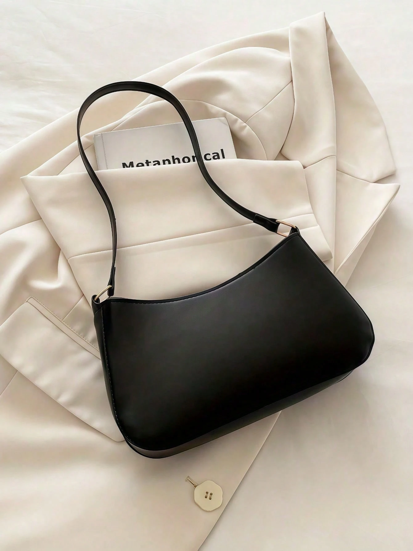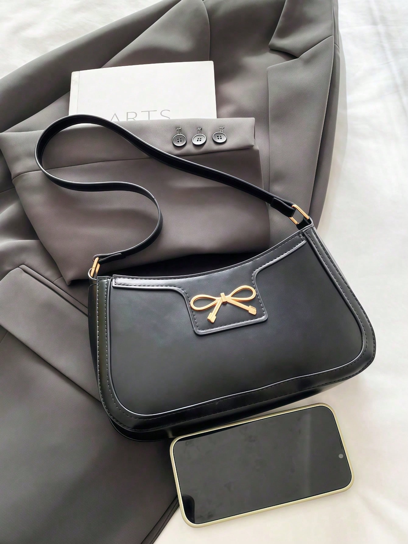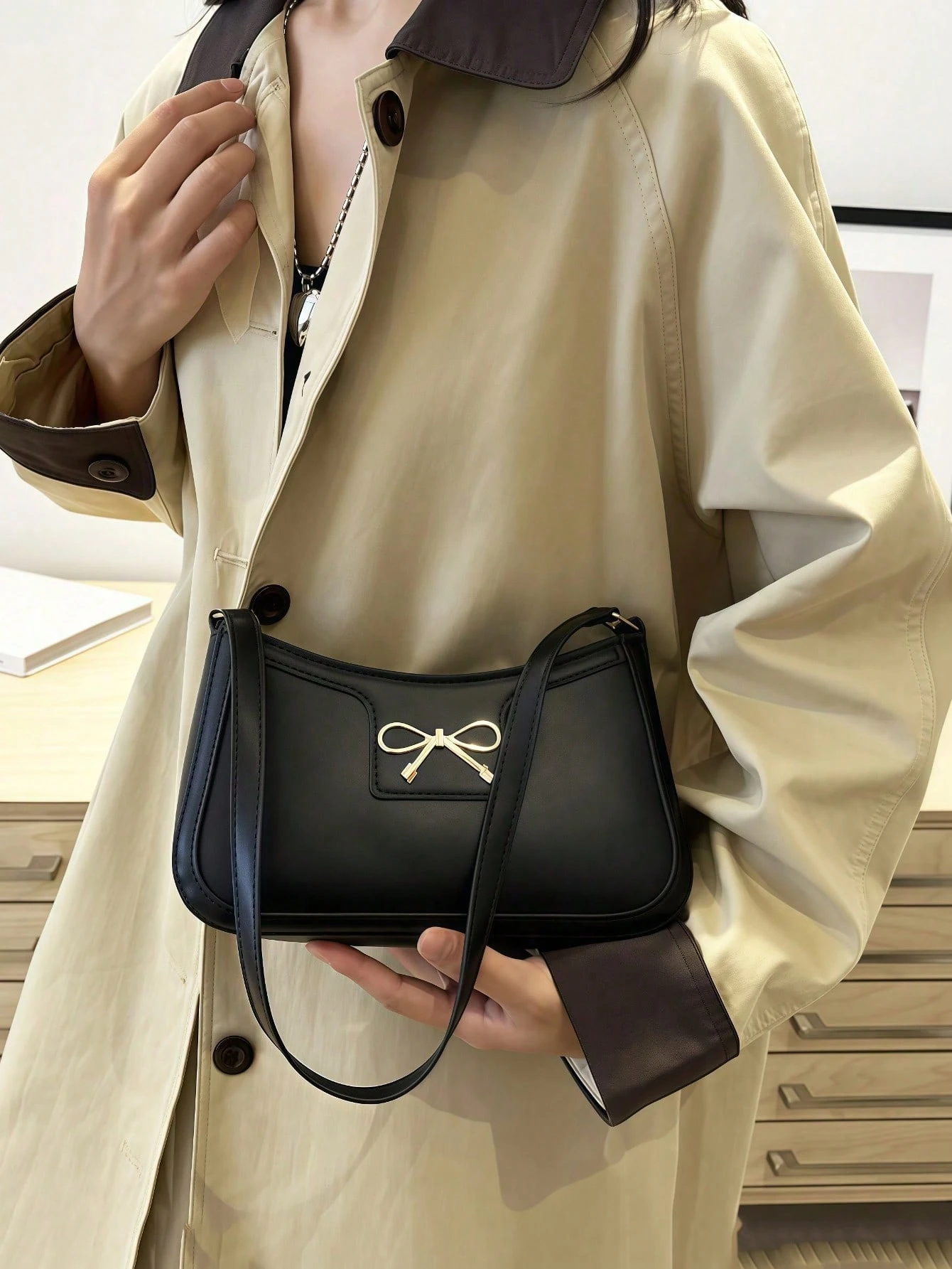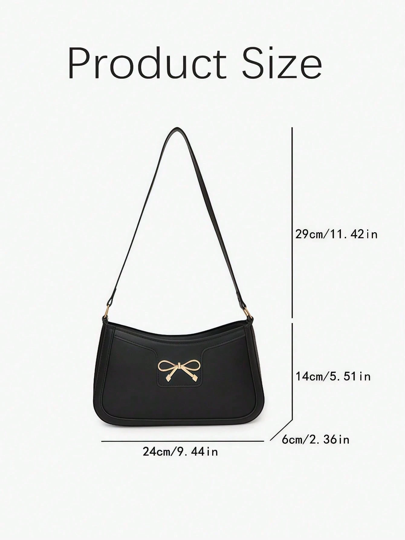 [US-Based Shipping]1pc Elegant Crescent-Shaped Underarm Shoulder Bag For Women, Chic Casual Fashion, Solid Color Underarm Bag,New Fashion Casual Women's PU Solid Bow Metal Decor Underarm Coin Purse Makeup Bag,Crescent Hobo Shoulder Bag Zipper Handbag,Bow