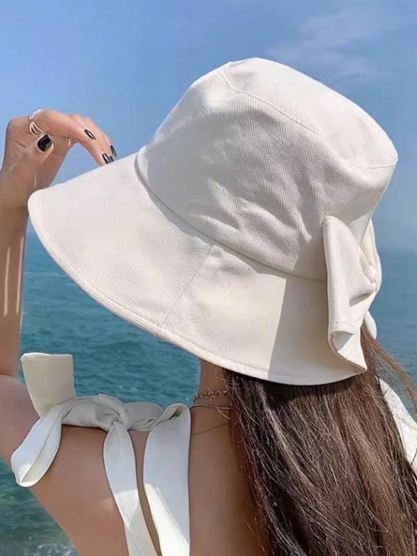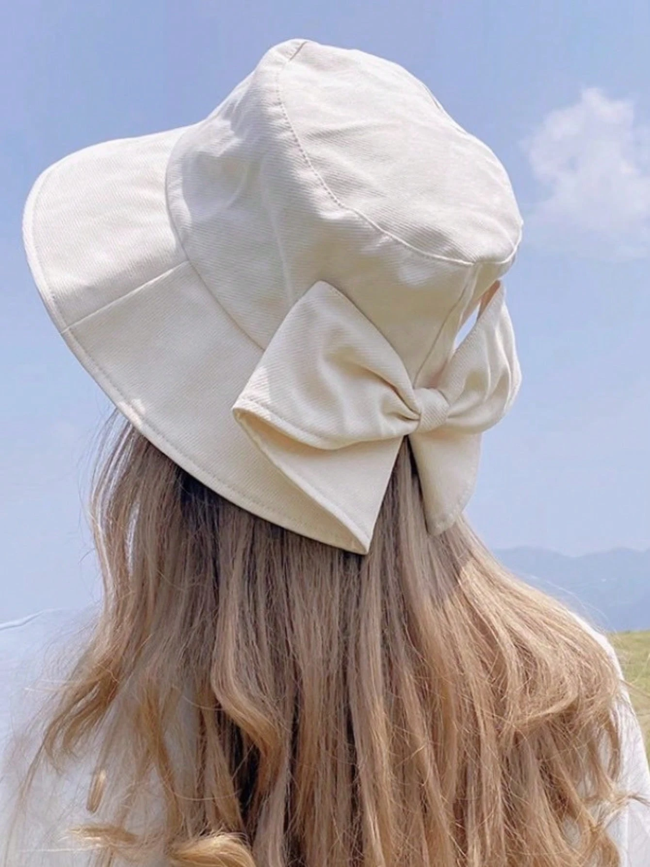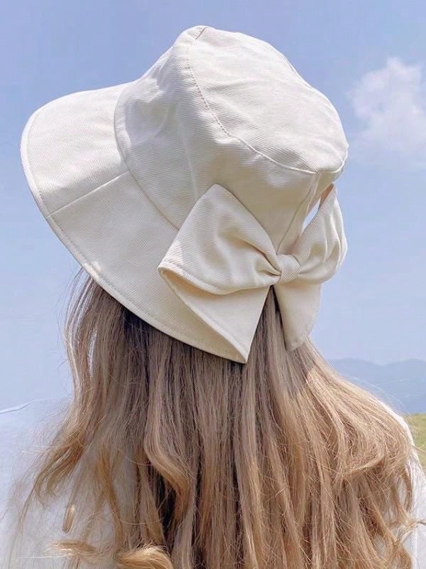Home Accessories Women-Accessories Hats & Caps-WA Versatile Bucket Hat Spring And Autumn Split Bow Fashion Leisure Sunscreen Hat Korean Edition Sunscreen Hat Pot Hat Female