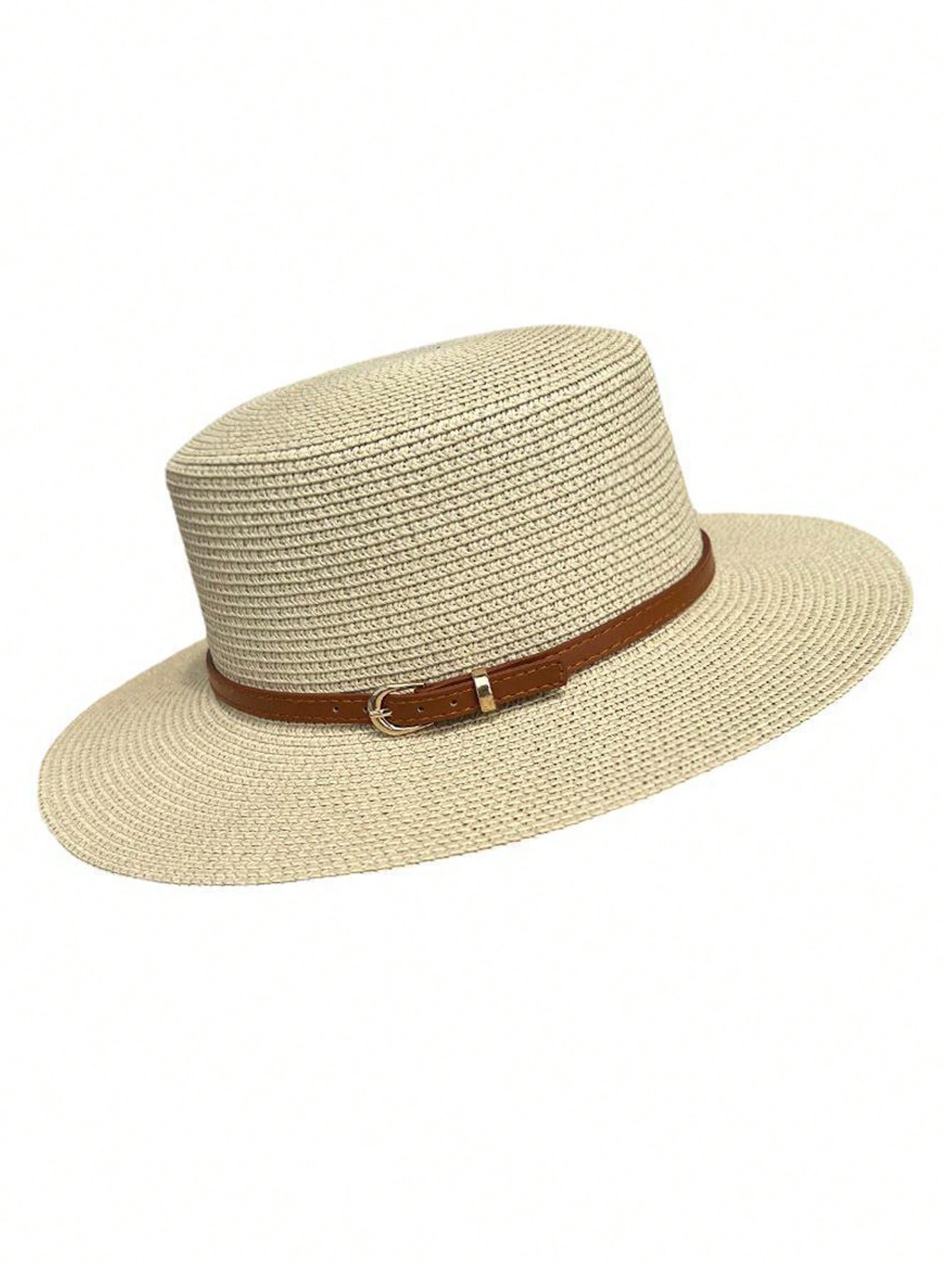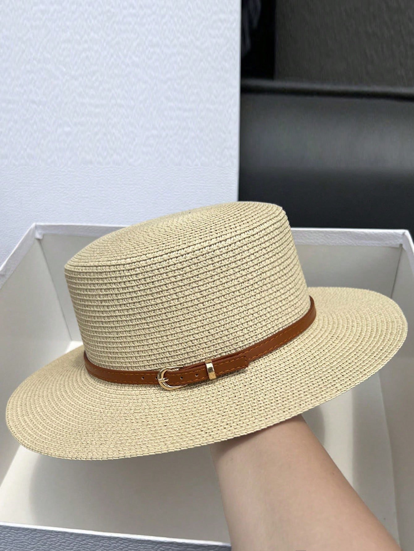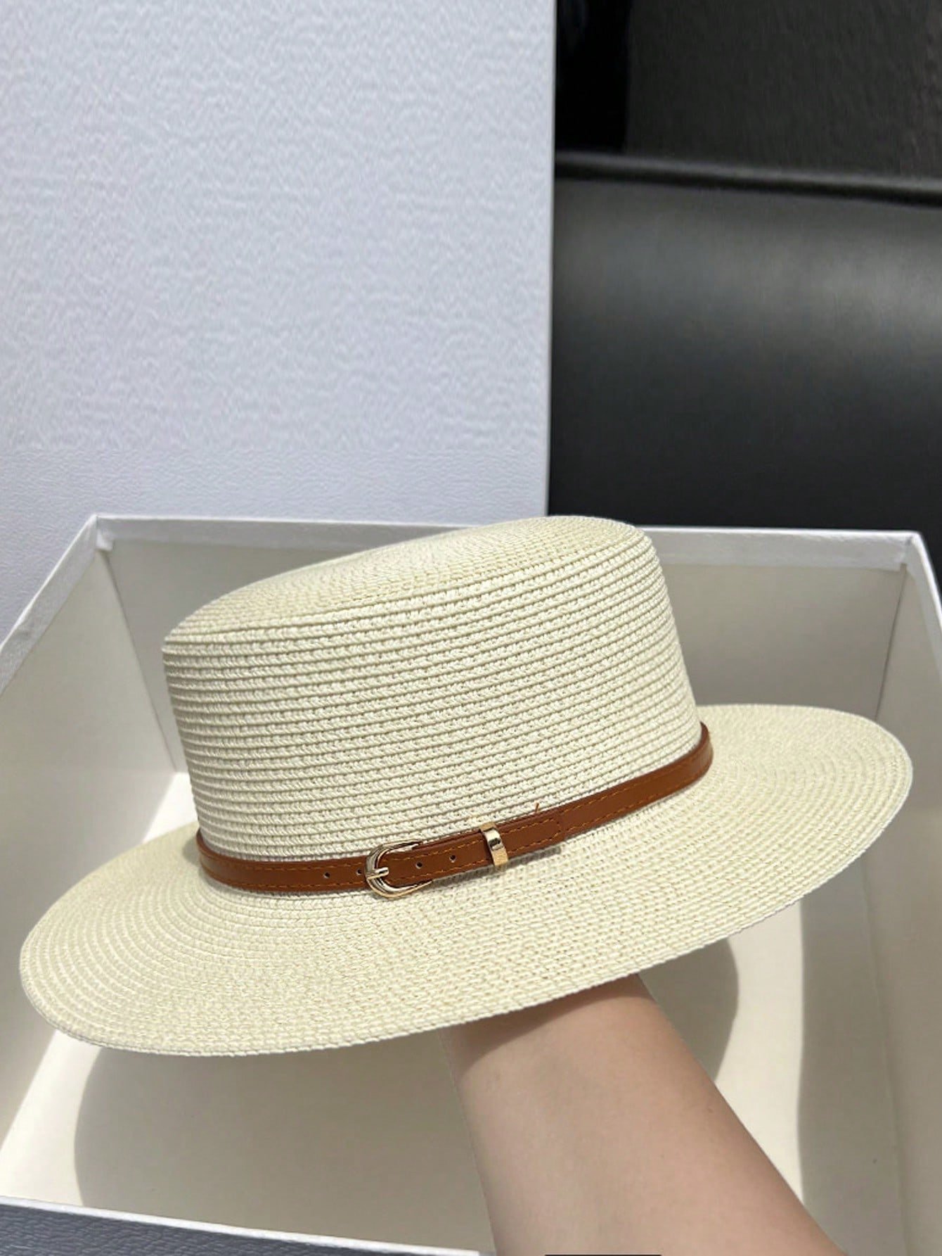 Wide Brim Sun Hat, Flat Top, Vintage Chic For Women, Suitable For Beach, Travel, Casual, Straw Braid, No Wind Protection, UVB Protection, Polyester Fiber, Spring/Summer
