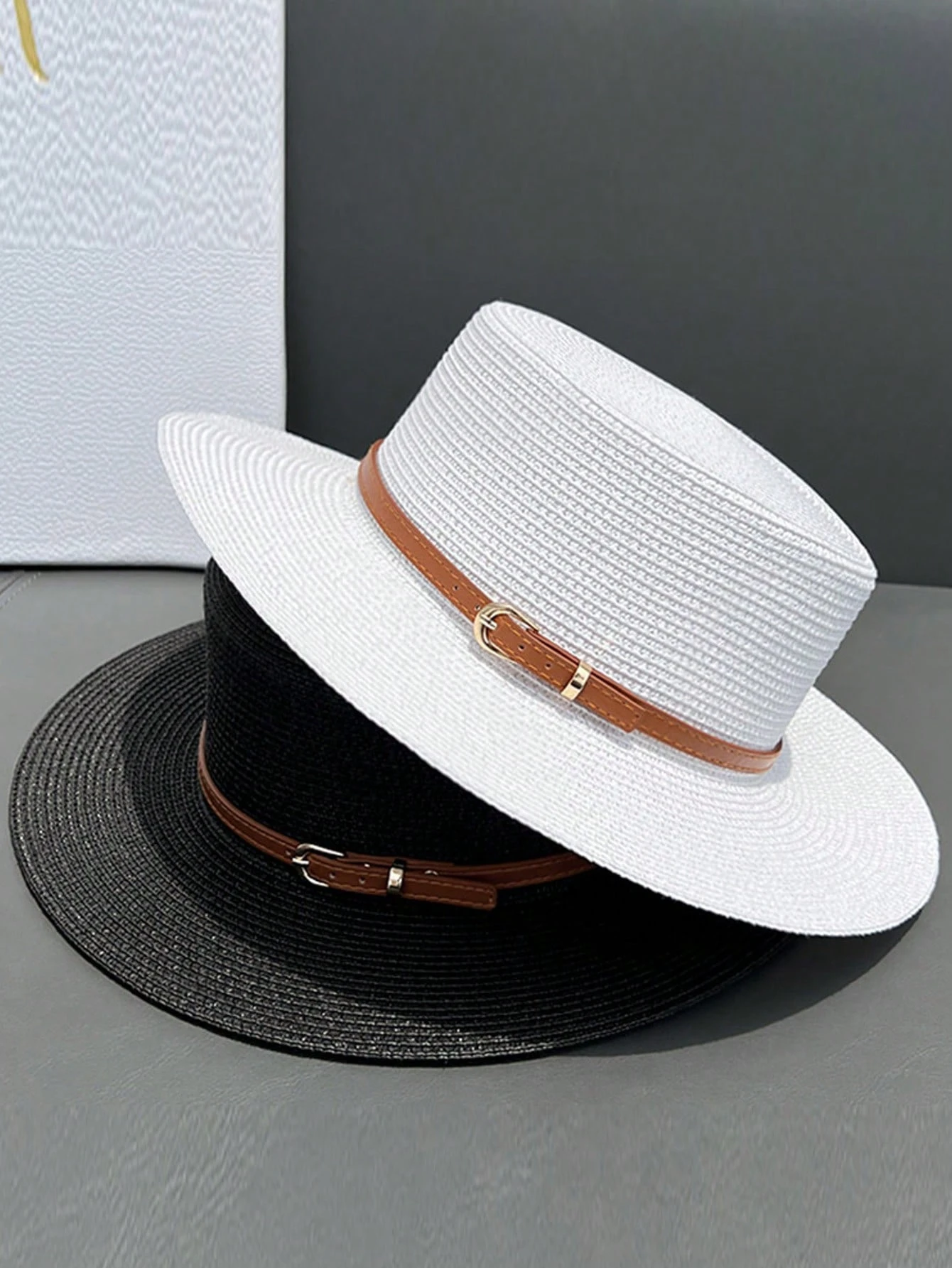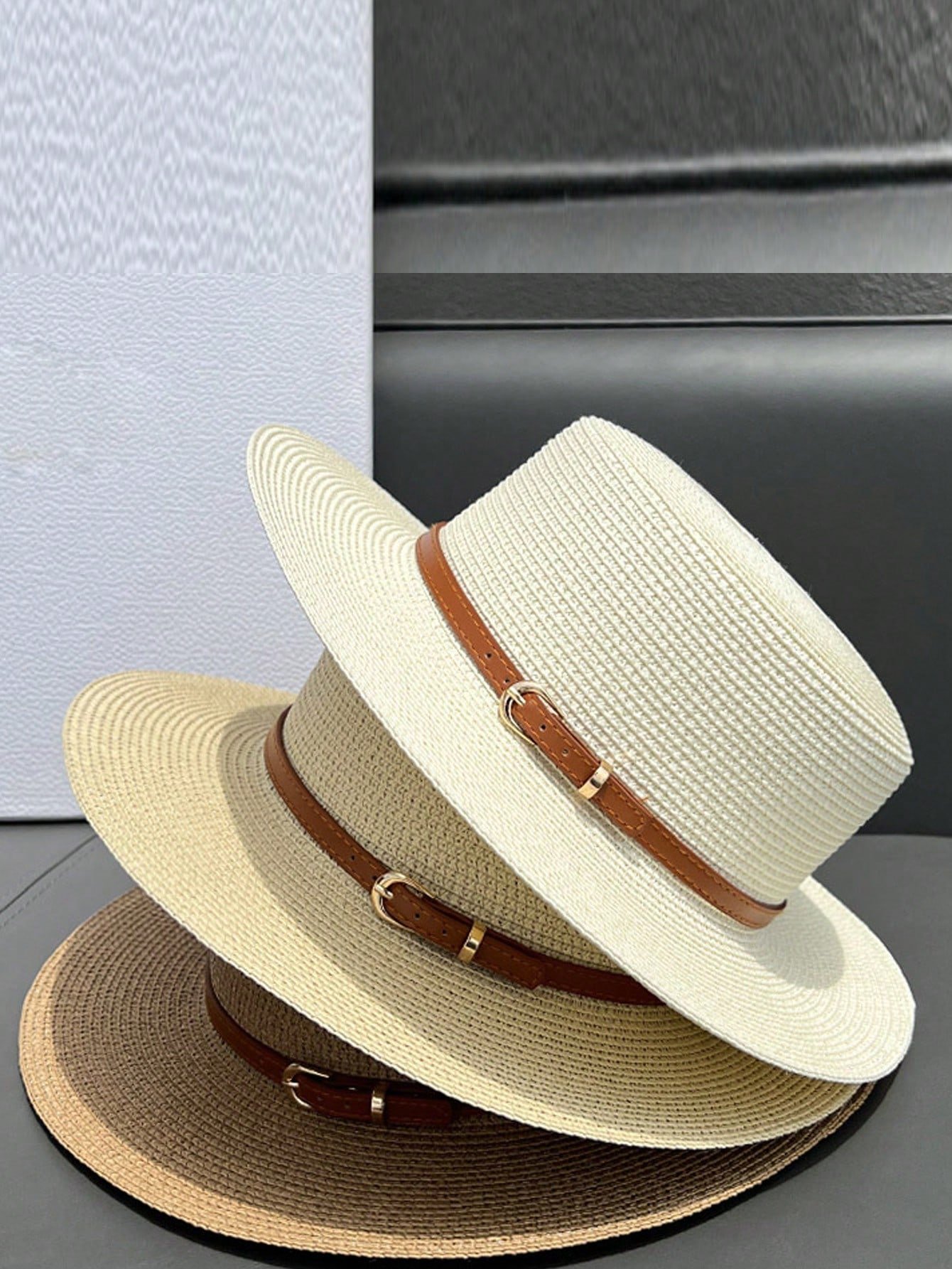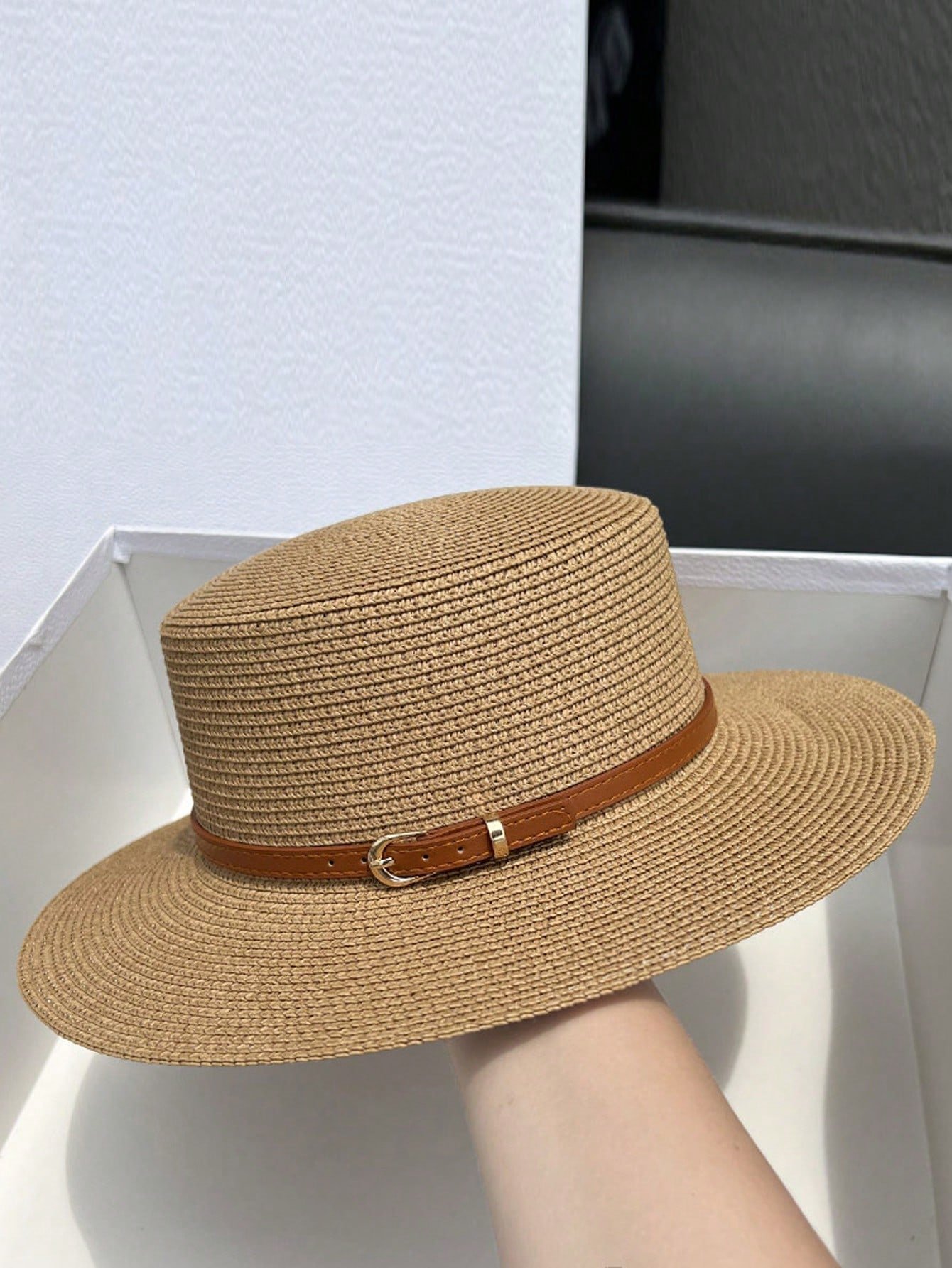 Wide Brim Sun Hat, Flat Top, Vintage Chic For Women, Suitable For Beach, Travel, Casual, Straw Braid, No Wind Protection, UVB Protection, Polyester Fiber, Spring/Summer