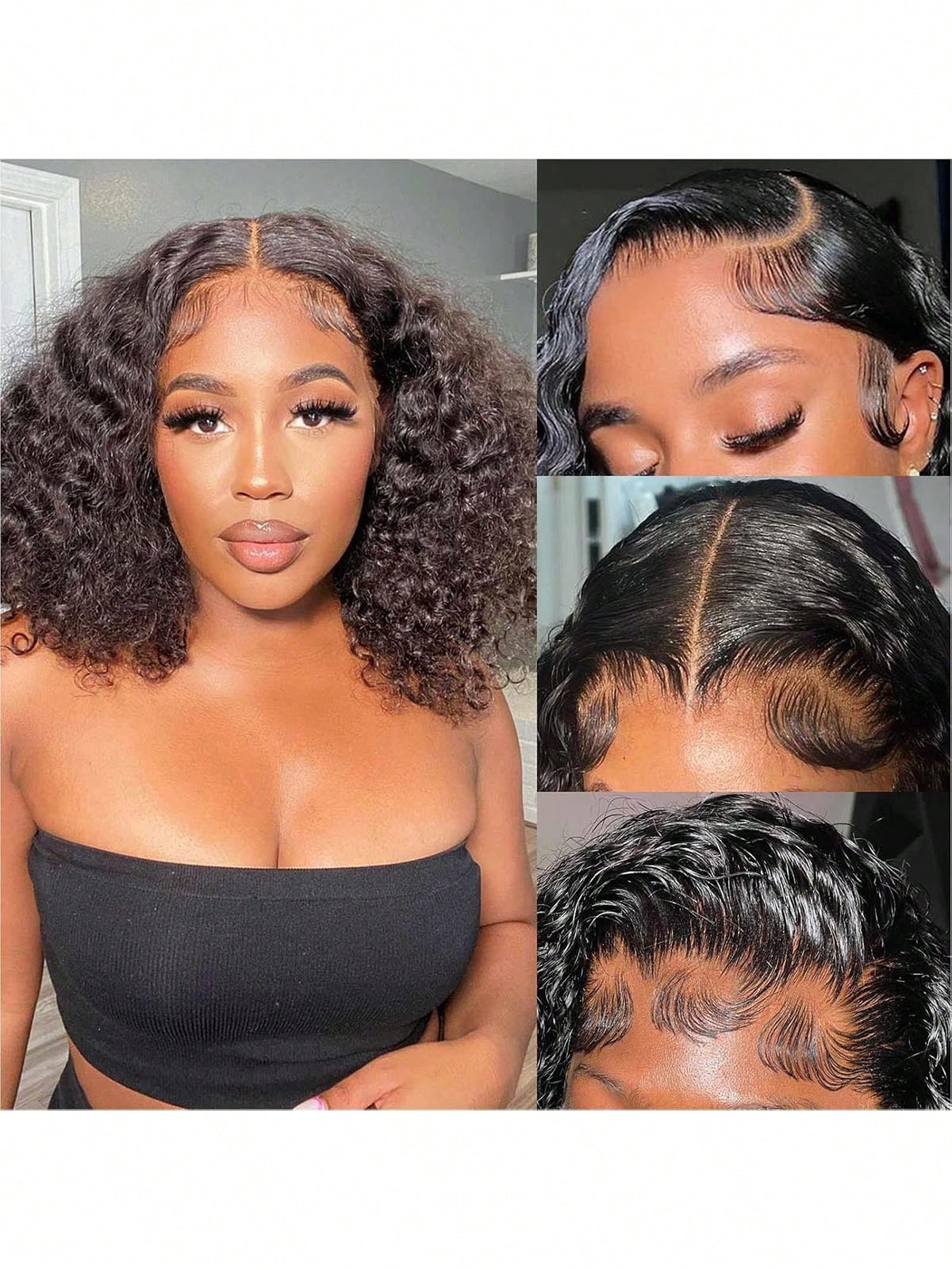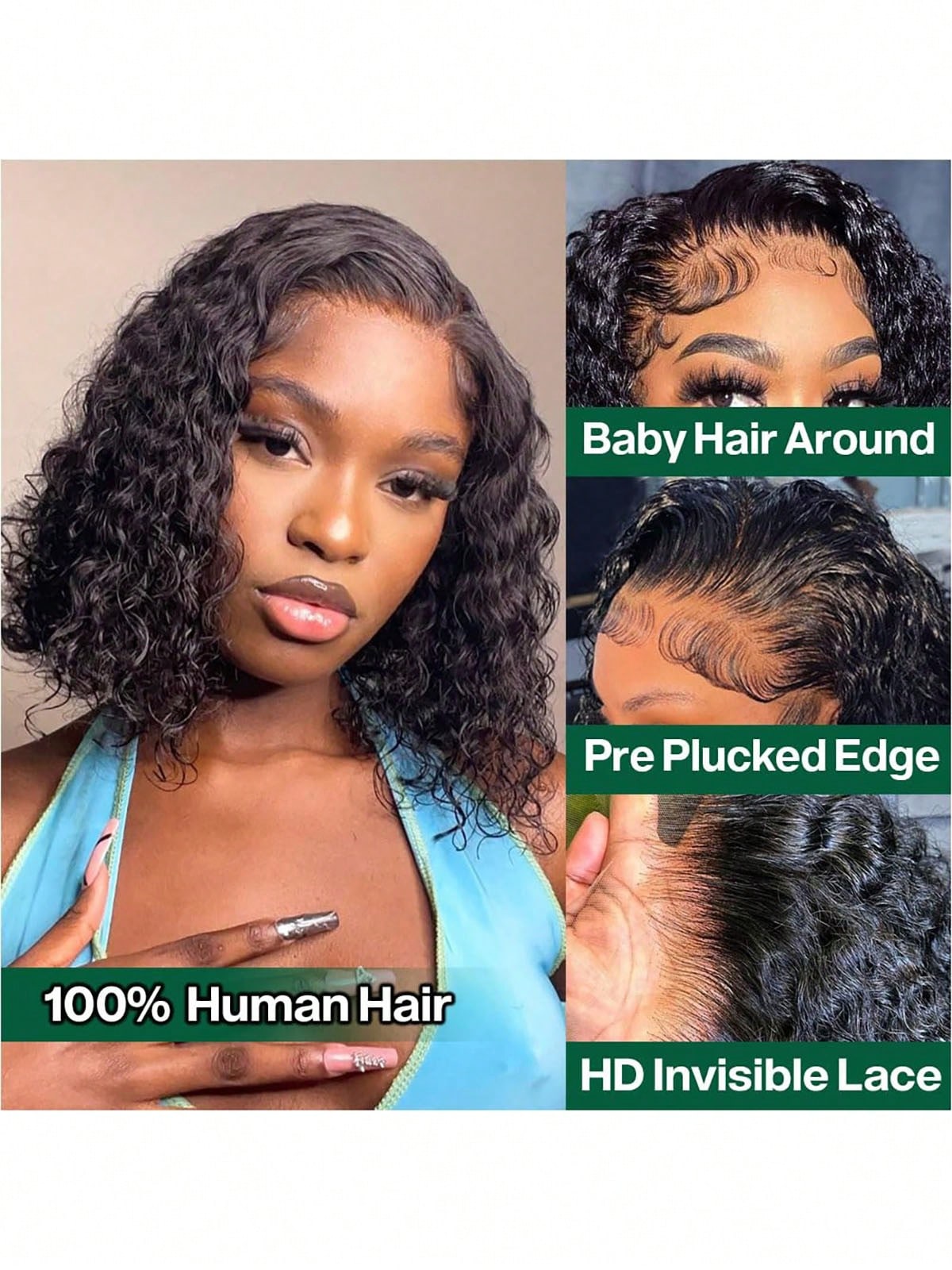 Wigs,Deep Wave, 13×4 HD Lace Front Deep Wave Wigs Human Hair Pre Plucked, Curly Frontal Human Hair Waterwave Lace Front Wet And Wavy Wig 180 Density 24 Inch