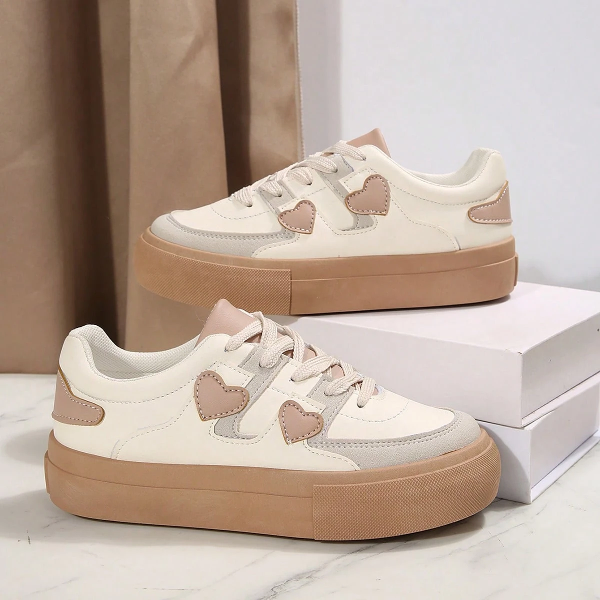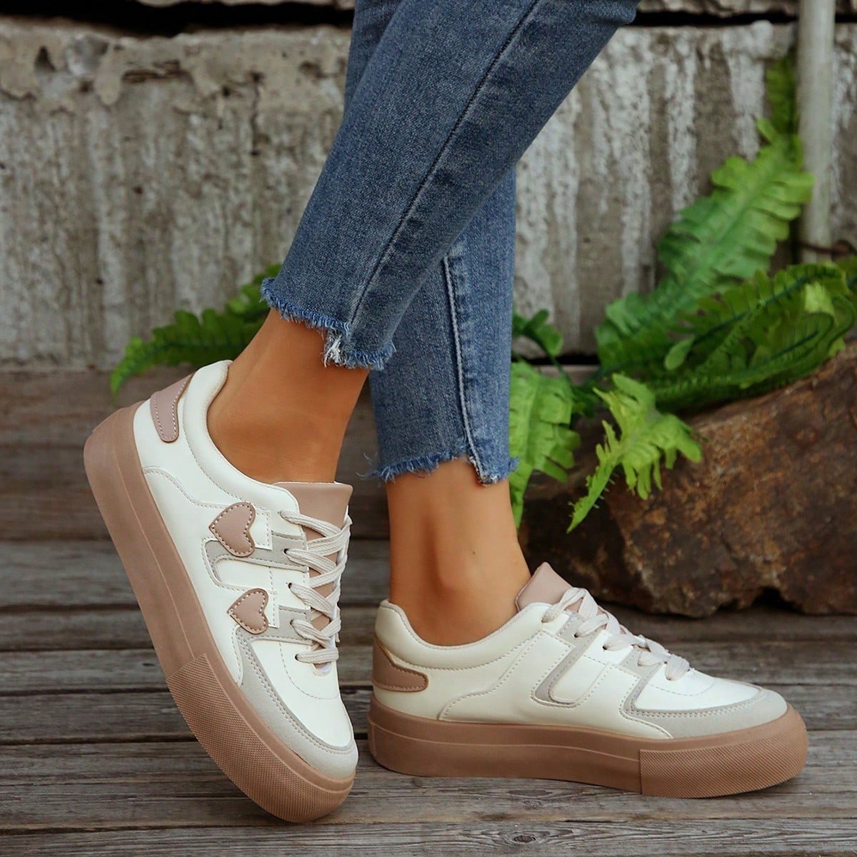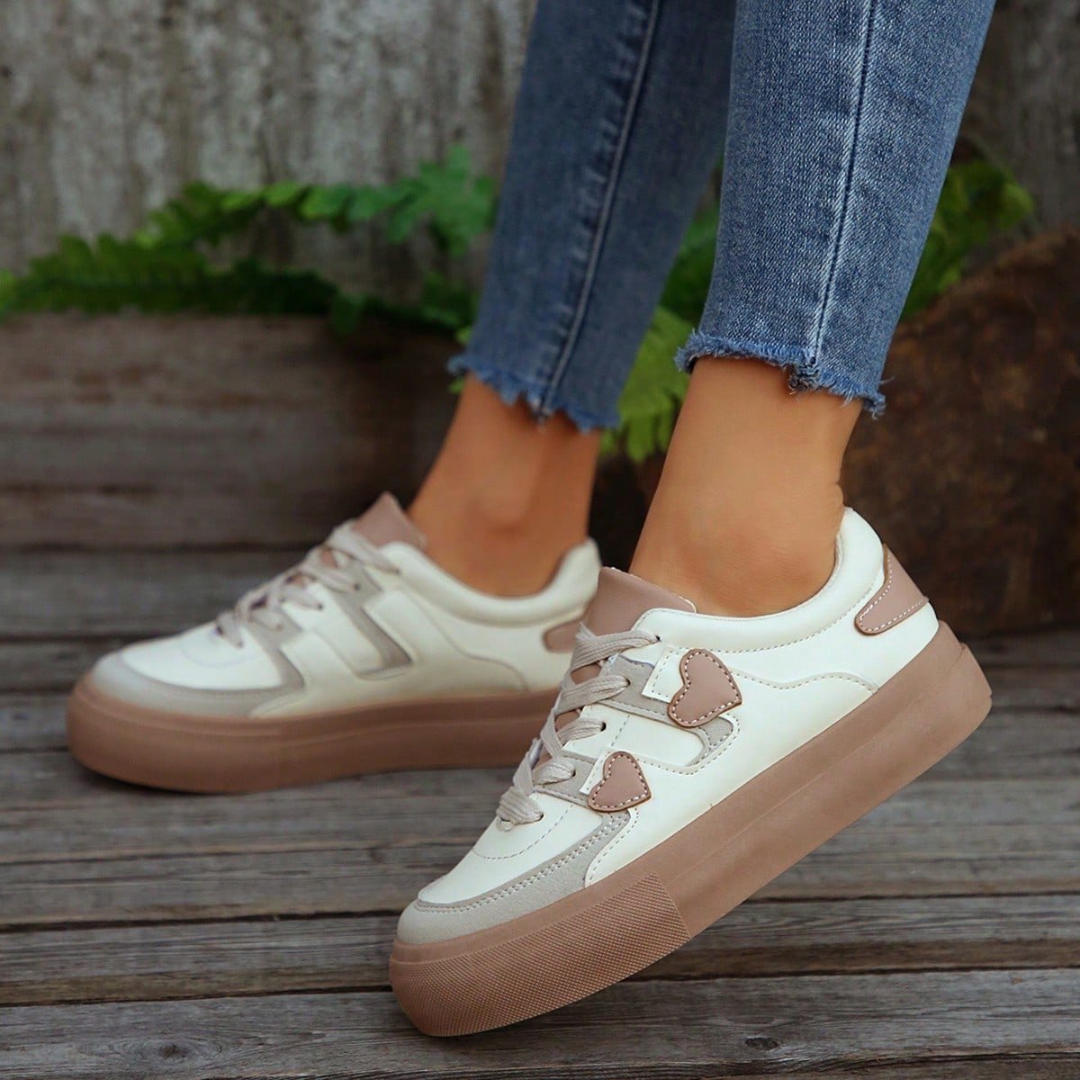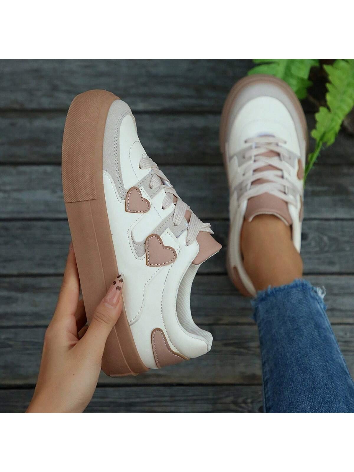 Women Slip-On Casual Sneakers, Lightweight Non-Slip Rubber Sole, Heart Pattern Leather Upper, Suitable For Running, Walking, Women Shoes