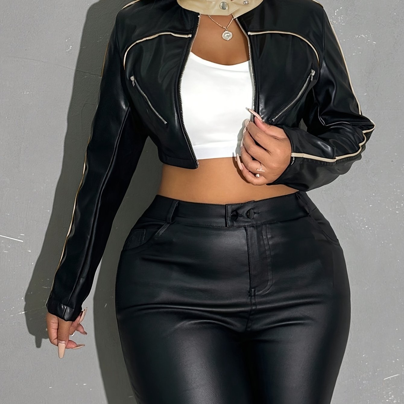 A Fitted Solid Color Zip-Up Jacket with Directional Design, Y2K Long-Sleeve Cropped Jacket for Women