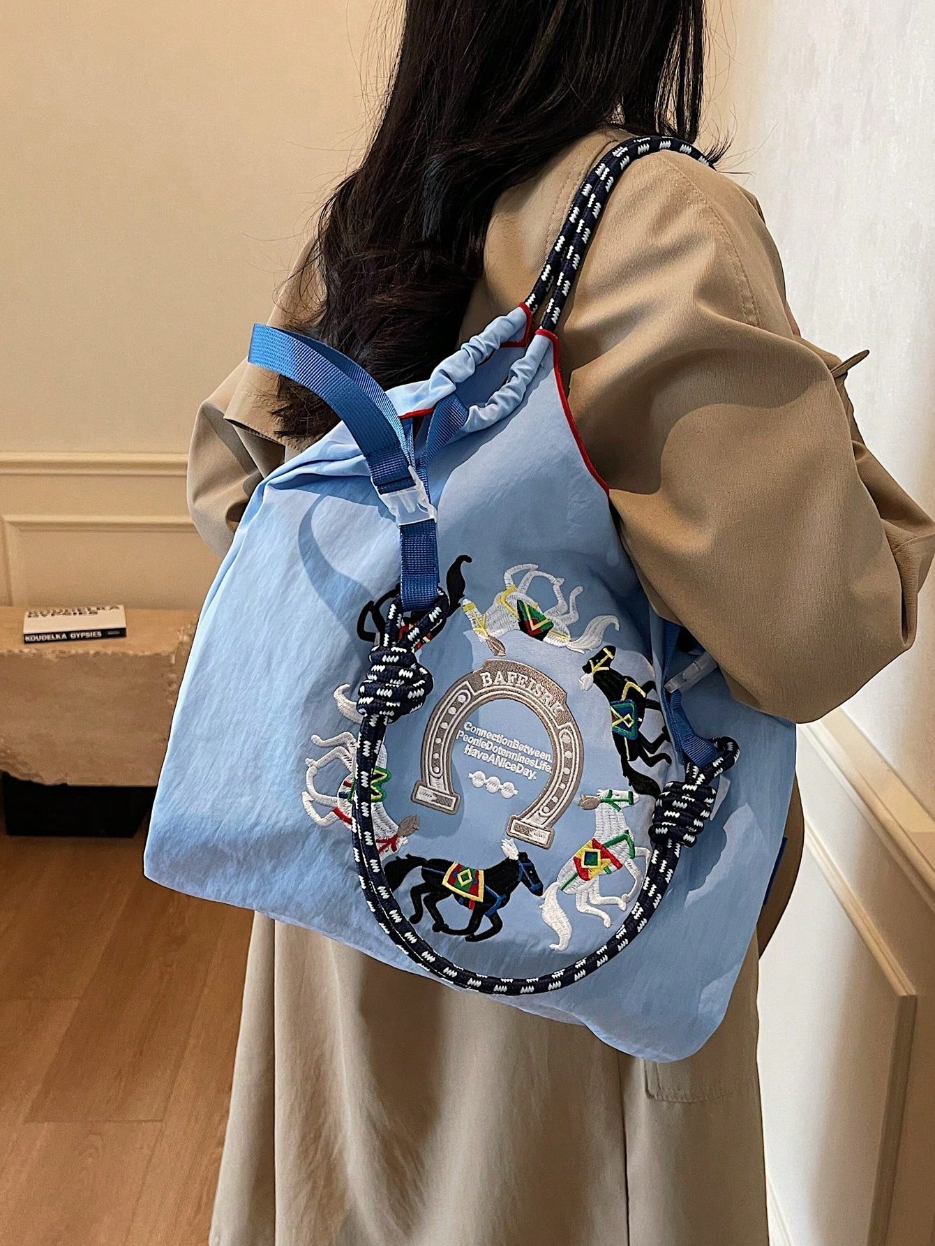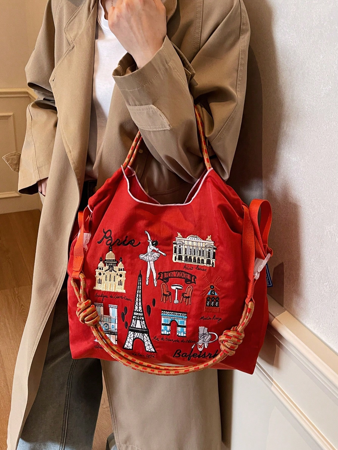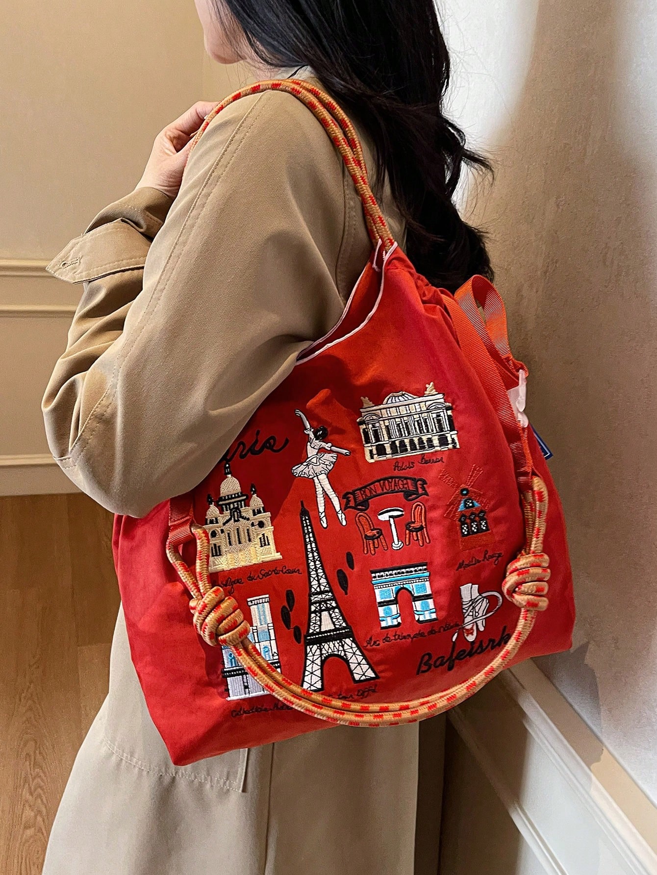 Women's Handbag, Large Capacity Waterproof Canvas Embroidered Tote Bag, Personalized Pattern Portable Shoulder Tote Bag