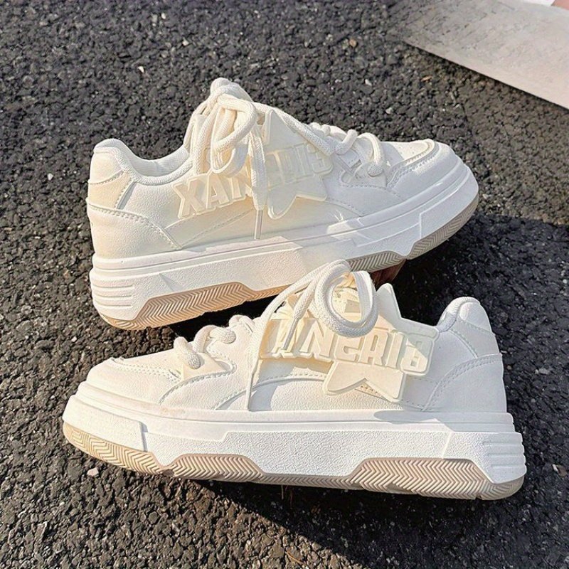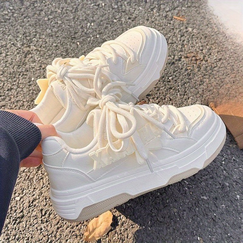 Women'S Low-Top Sneakers – Pastel Pink & White Lace-Up Shoes, Synthetic Cover Upper & Cushioned Rubber Sole for Gym, Everyday, Formal – All-Season Minimalist Sneakers with Easy-Clean Design, Ladies Sneakers, Casual Footwear, Round Toe Design, Fabric Lined