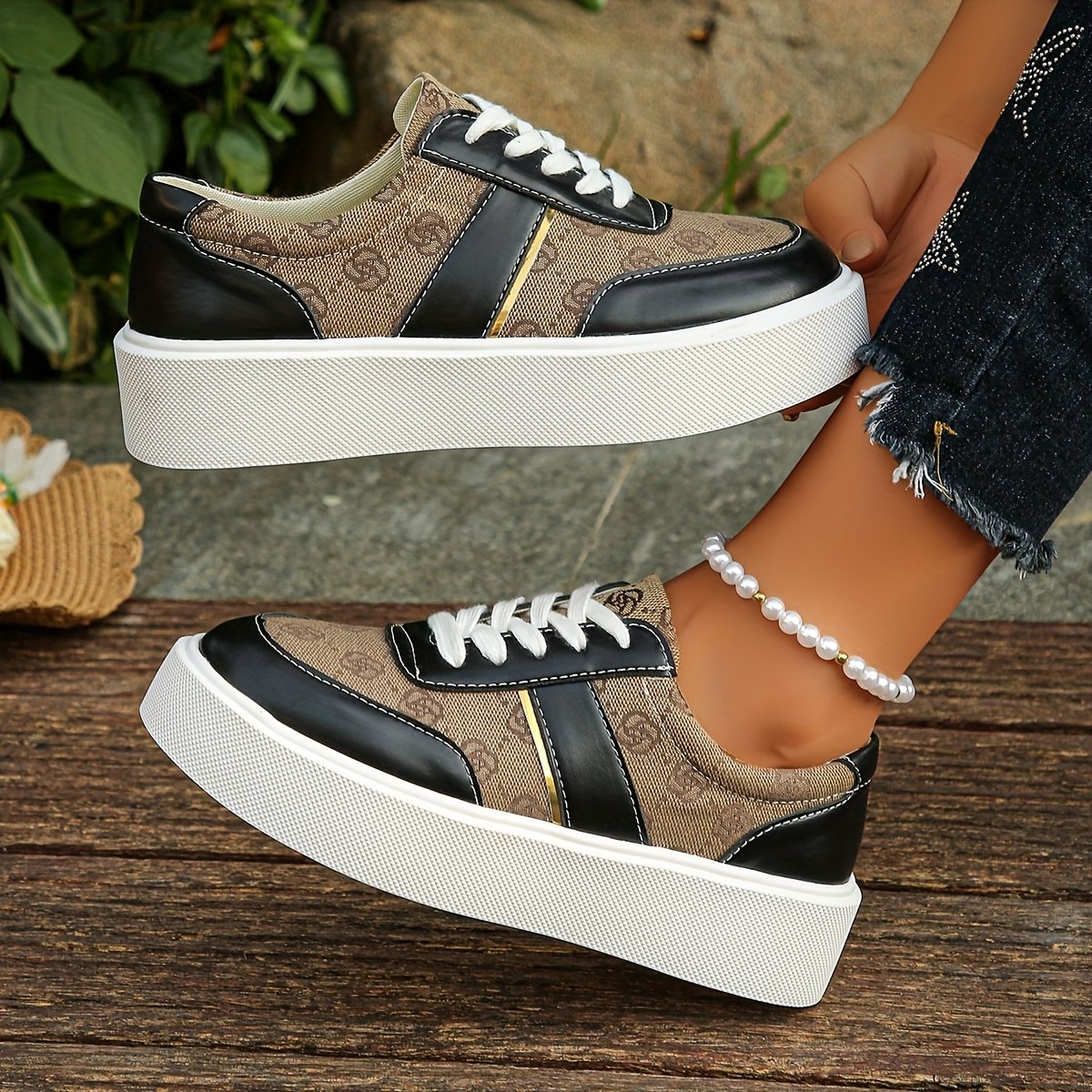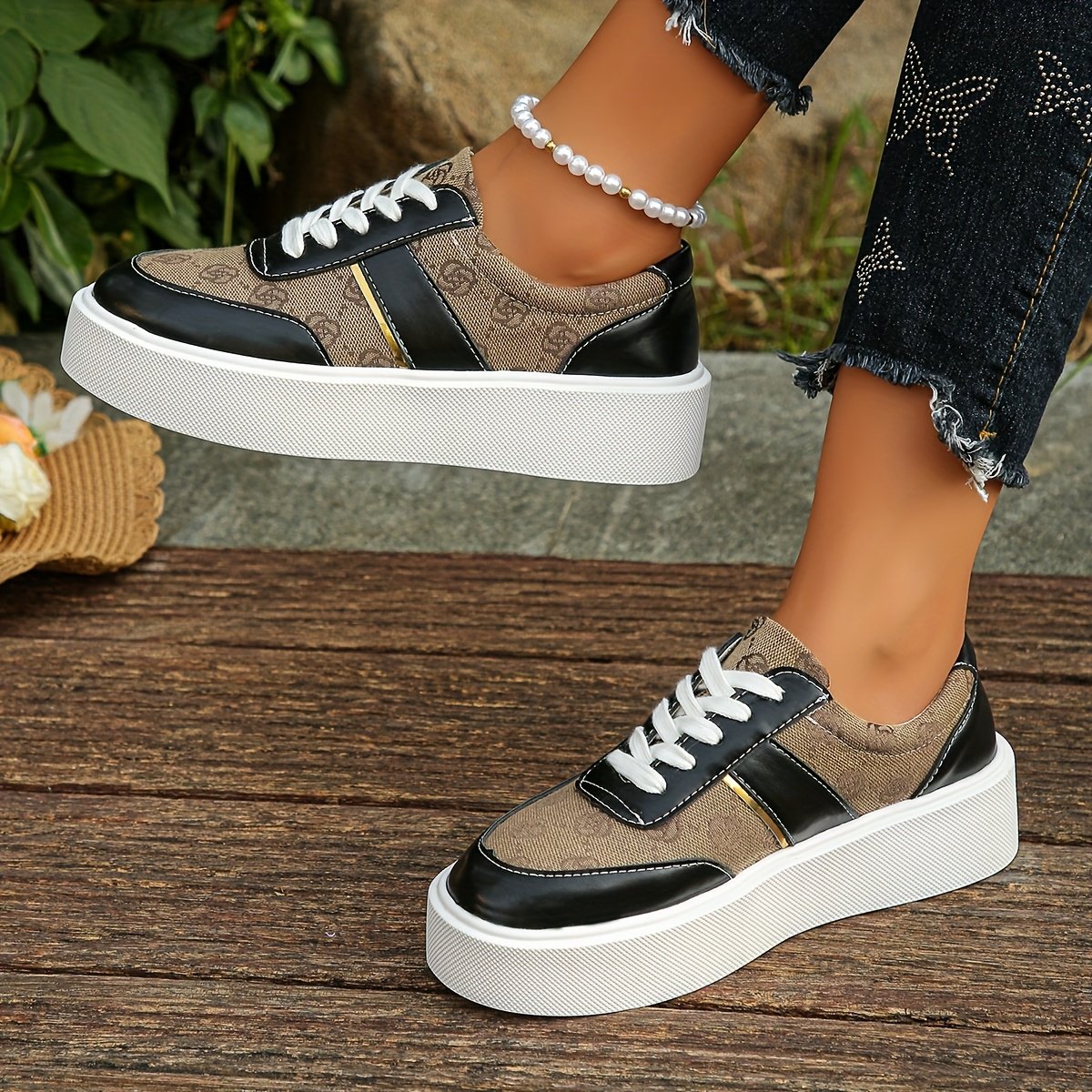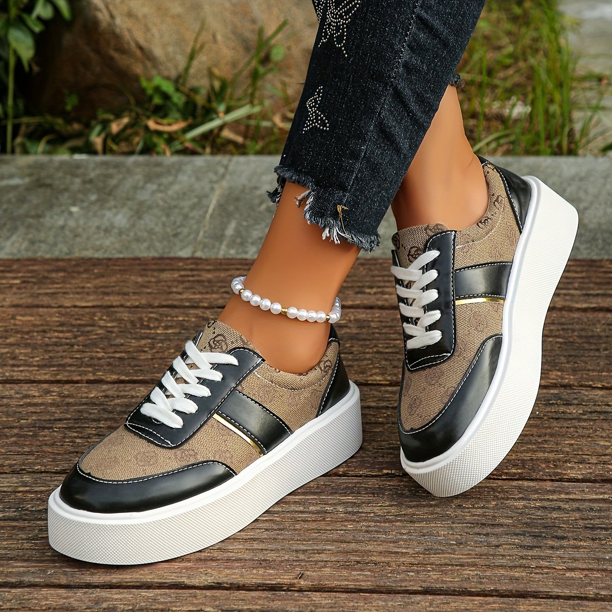 Women'S Mid-Top Lace-Up Sneakers – All-Season Casual Shoes with Breathable Fabric Upper, Cushioned Rubber Sole & Durable Traction Tread – Brown/Black Colorway for Casual Attire, Comfortable Footwear, Sleek Shoe Design, Fabric Lined Interior, Everyday Foot