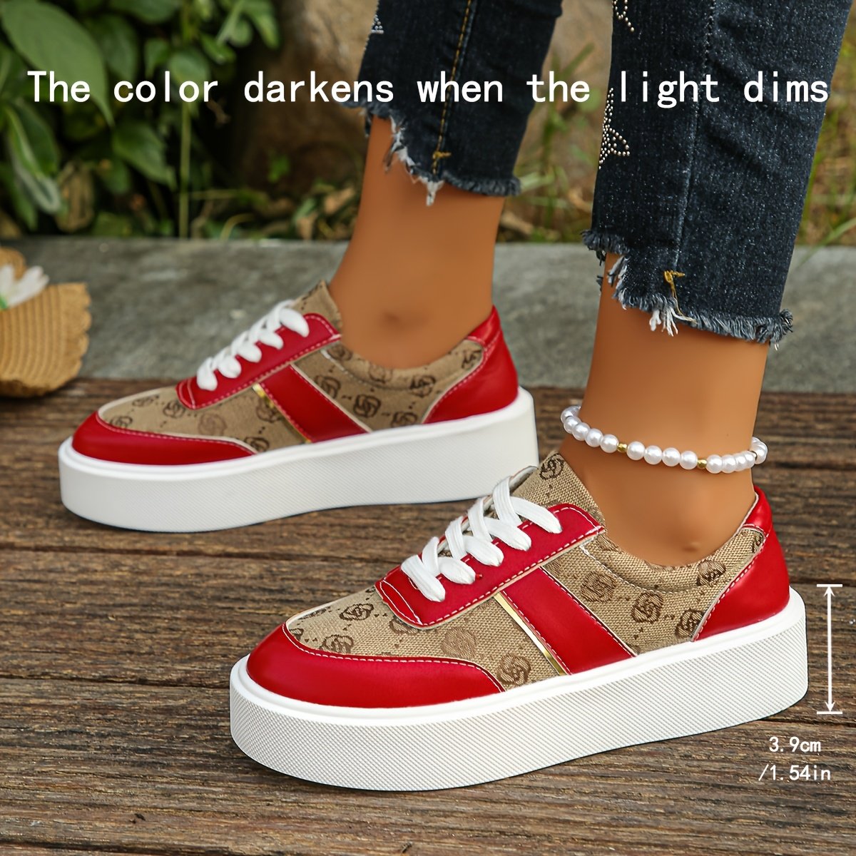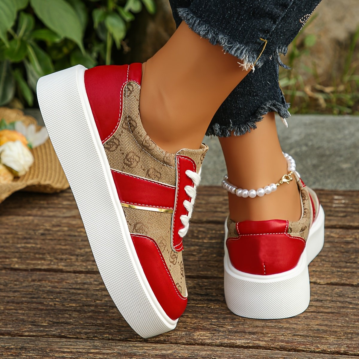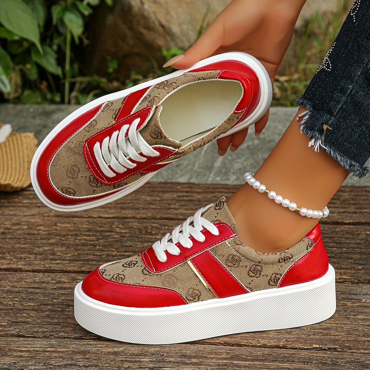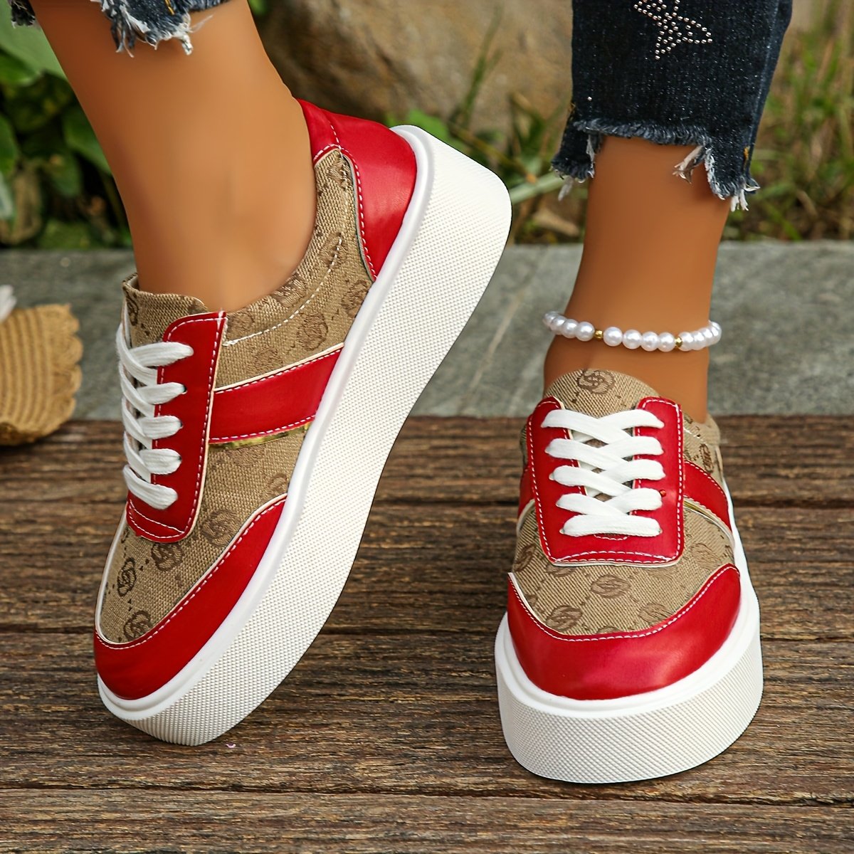 Women'S Mid-Top Lace-Up Sneakers – All-Season Casual Shoes with Breathable Fabric Upper, Cushioned Rubber Sole & Durable Traction Tread – Brown/Black Colorway for Casual Attire, Comfortable Footwear, Sleek Shoe Design, Fabric Lined Interior, Everyday Foot