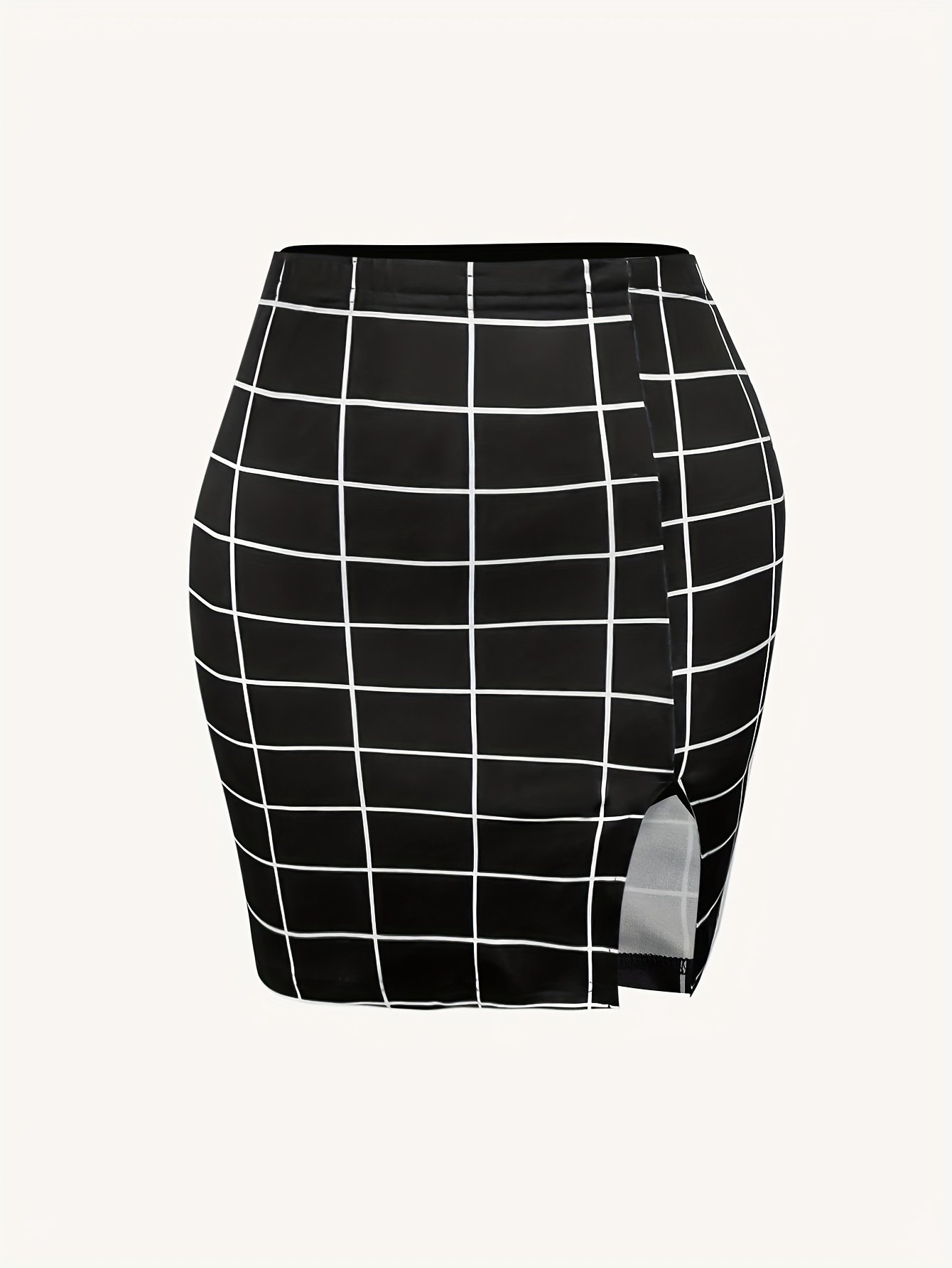 Women'S Sexy Plaid Mini Skirt with Side Slit – High-Waisted, Form-Fitting, Black & White Check Pattern, Perfect for Night Out & Parties, Party Wear Skirt | Highwaisted Skirt | Glossy Texture