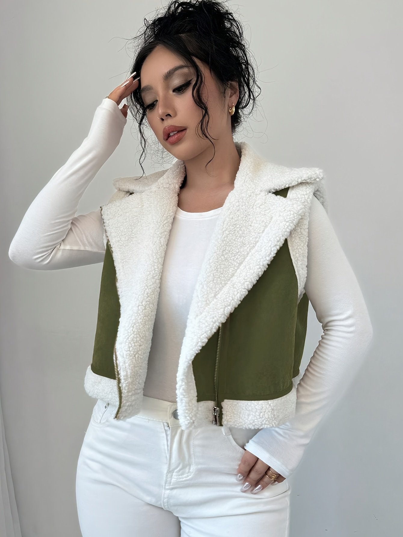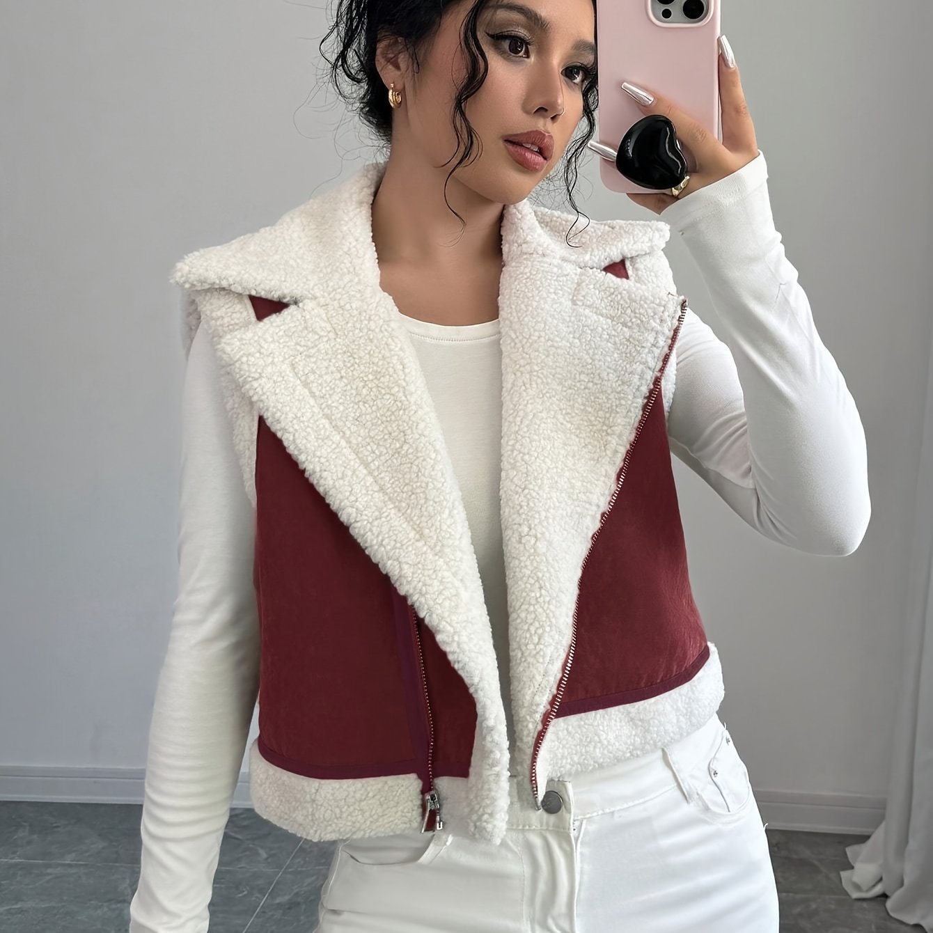 Women's Short Faux Lamb Sleeveless Vest Coat