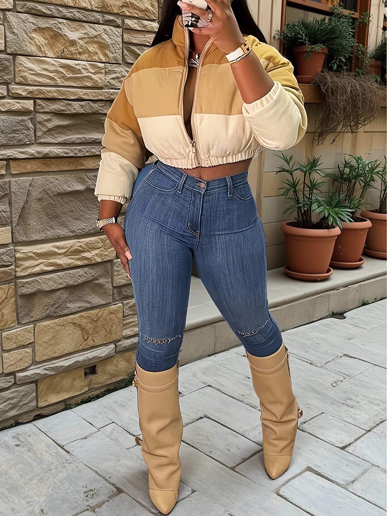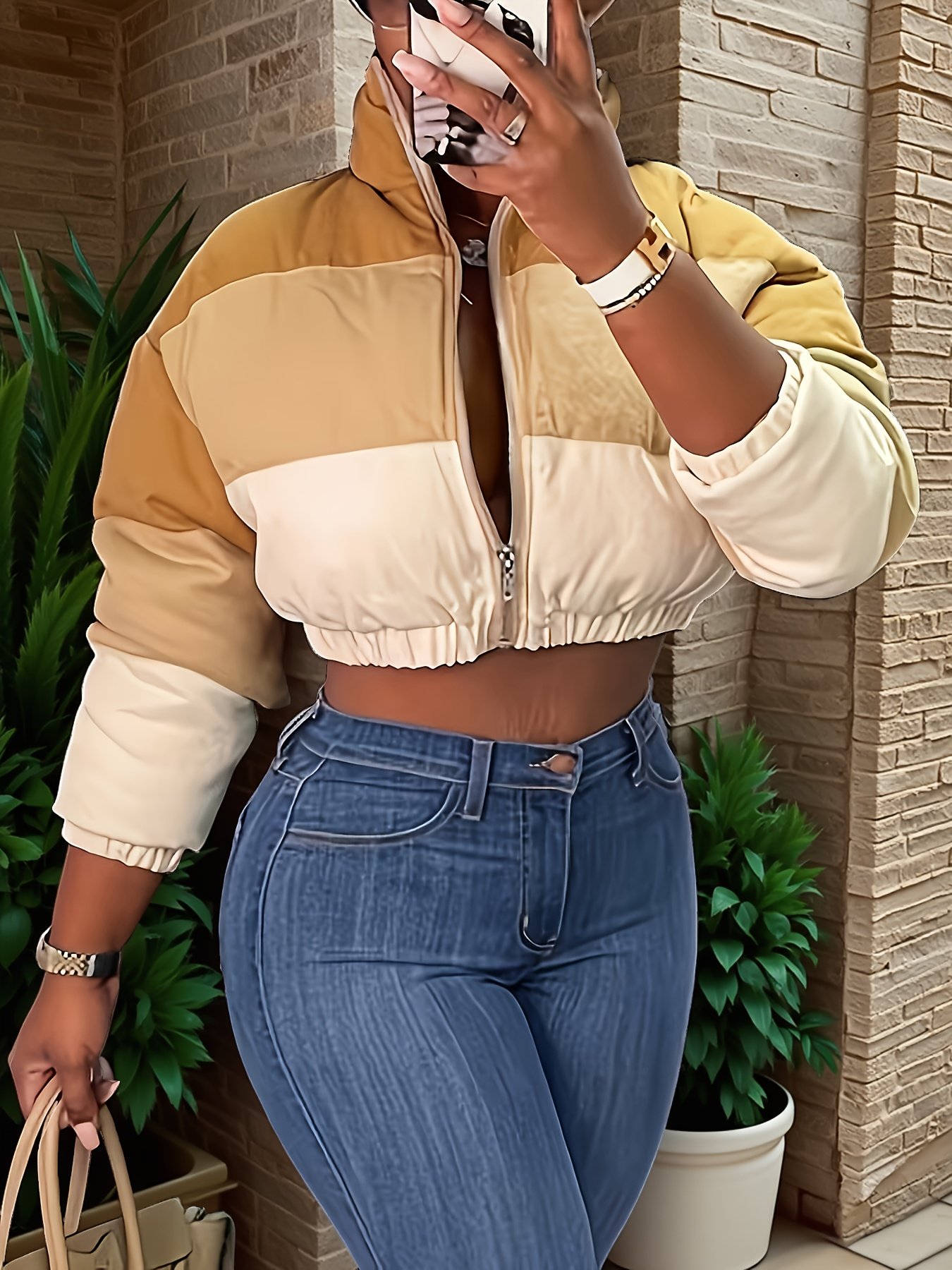 Be the first to review “Women'S Short Warm Jacket | Fashionable Yellow and White Patchwork, Non-Stretch Fabric, Regular Fit, Long Sleeves” Cancel reply