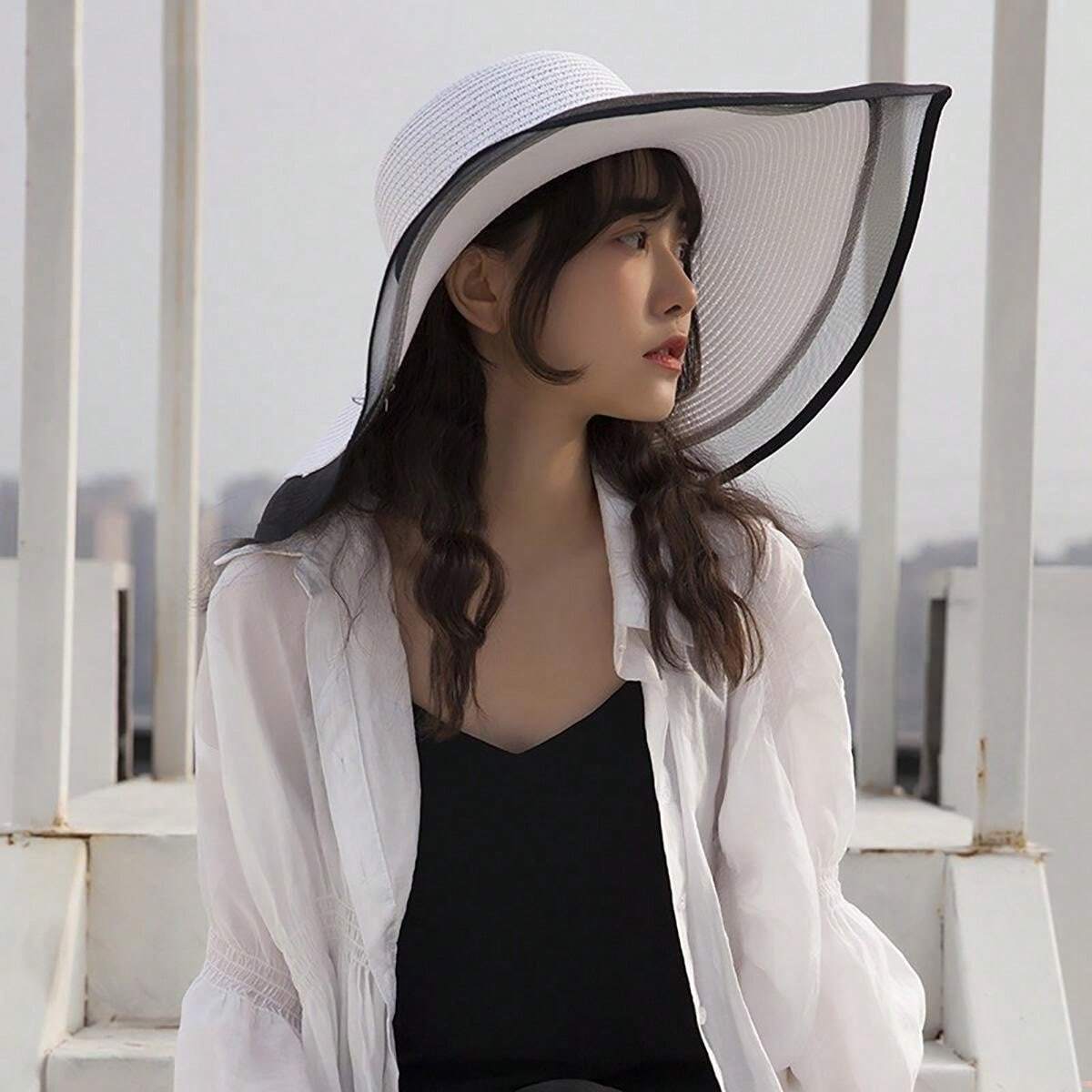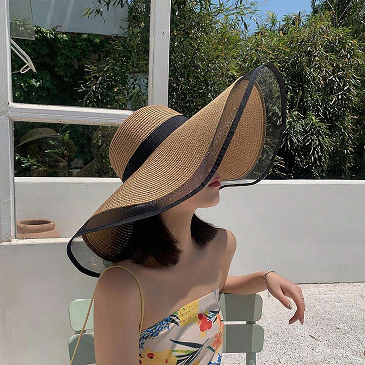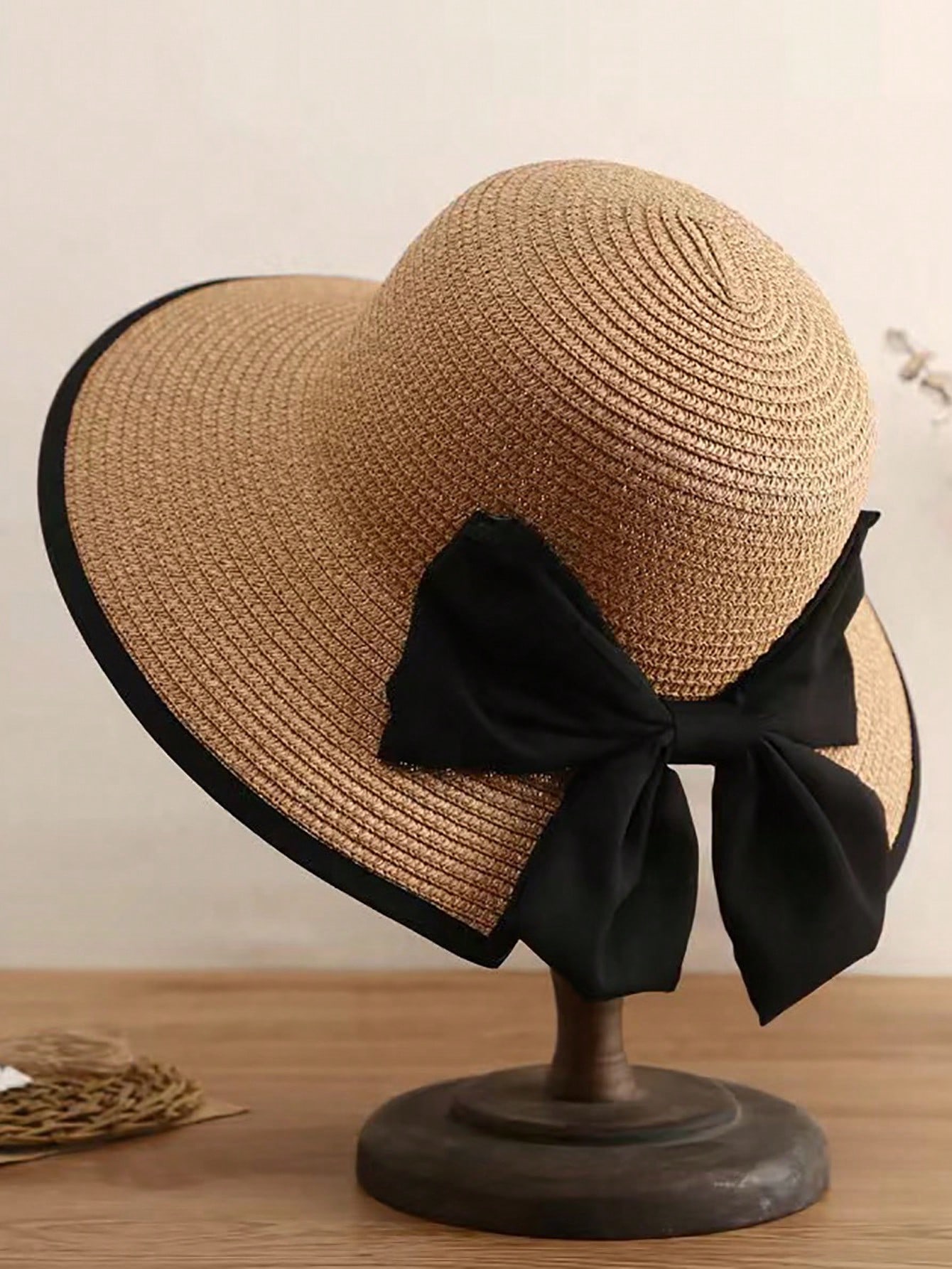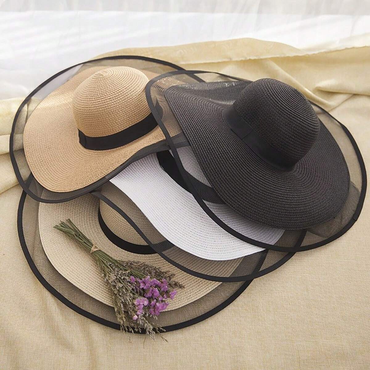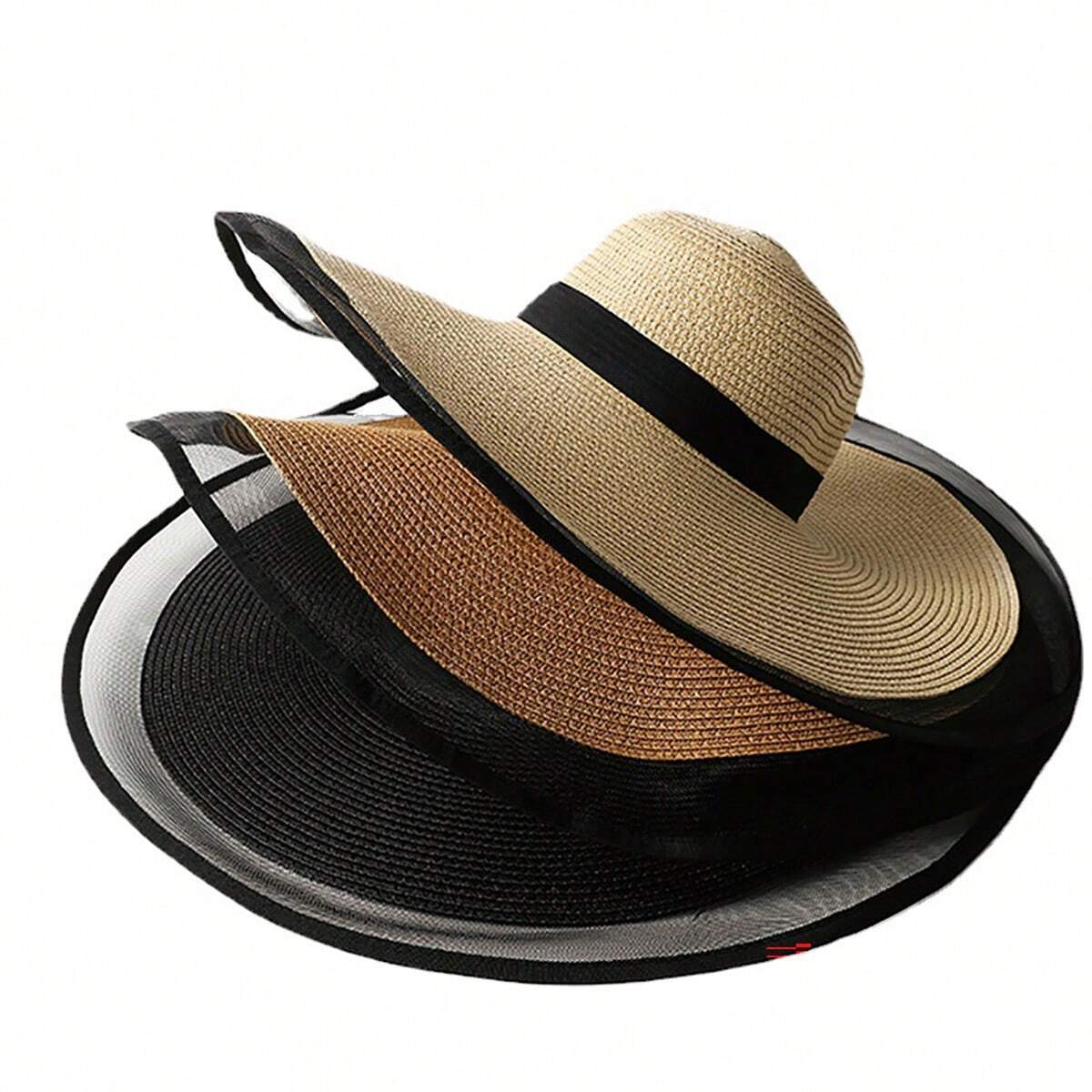 Women's Sun Hat Summer Straw Hat With Wide Brim, Sun Protection And Fashionable French Mesh Design For Travel, Beach, Outdoor Activities Boho Bow