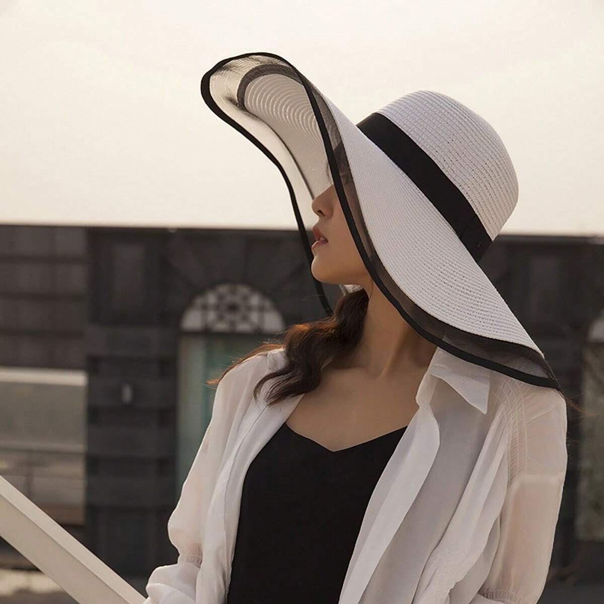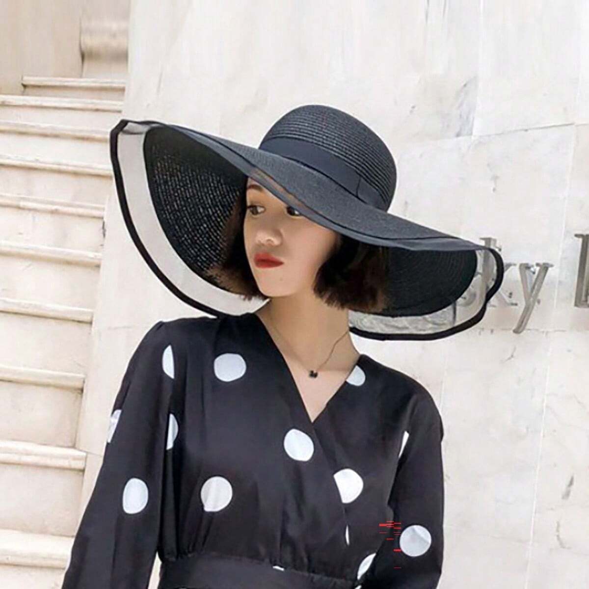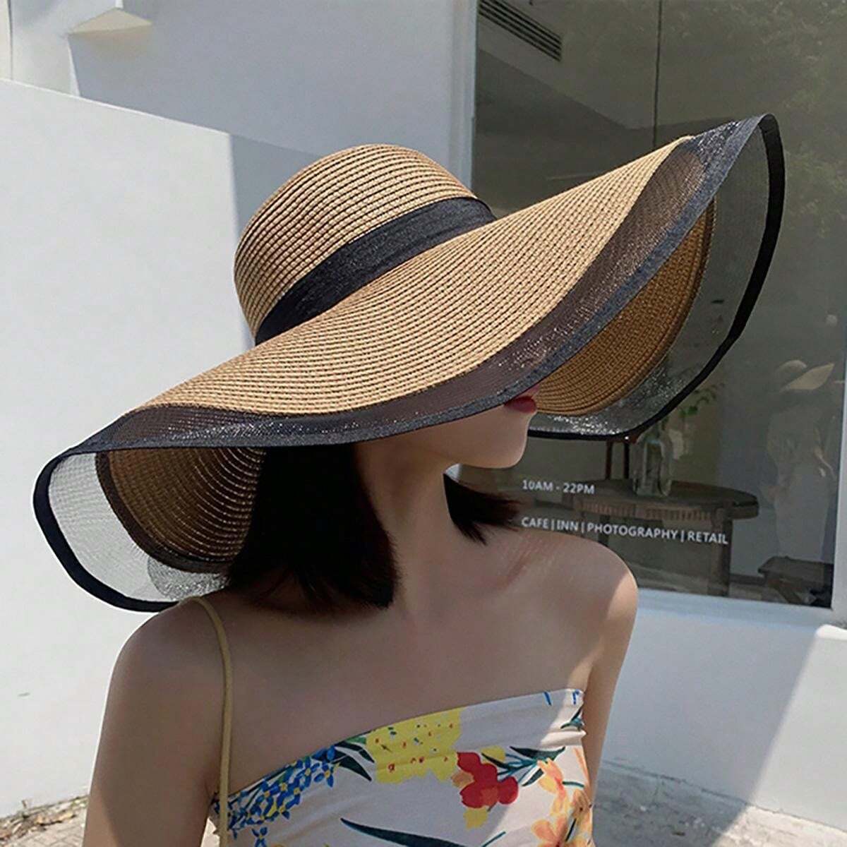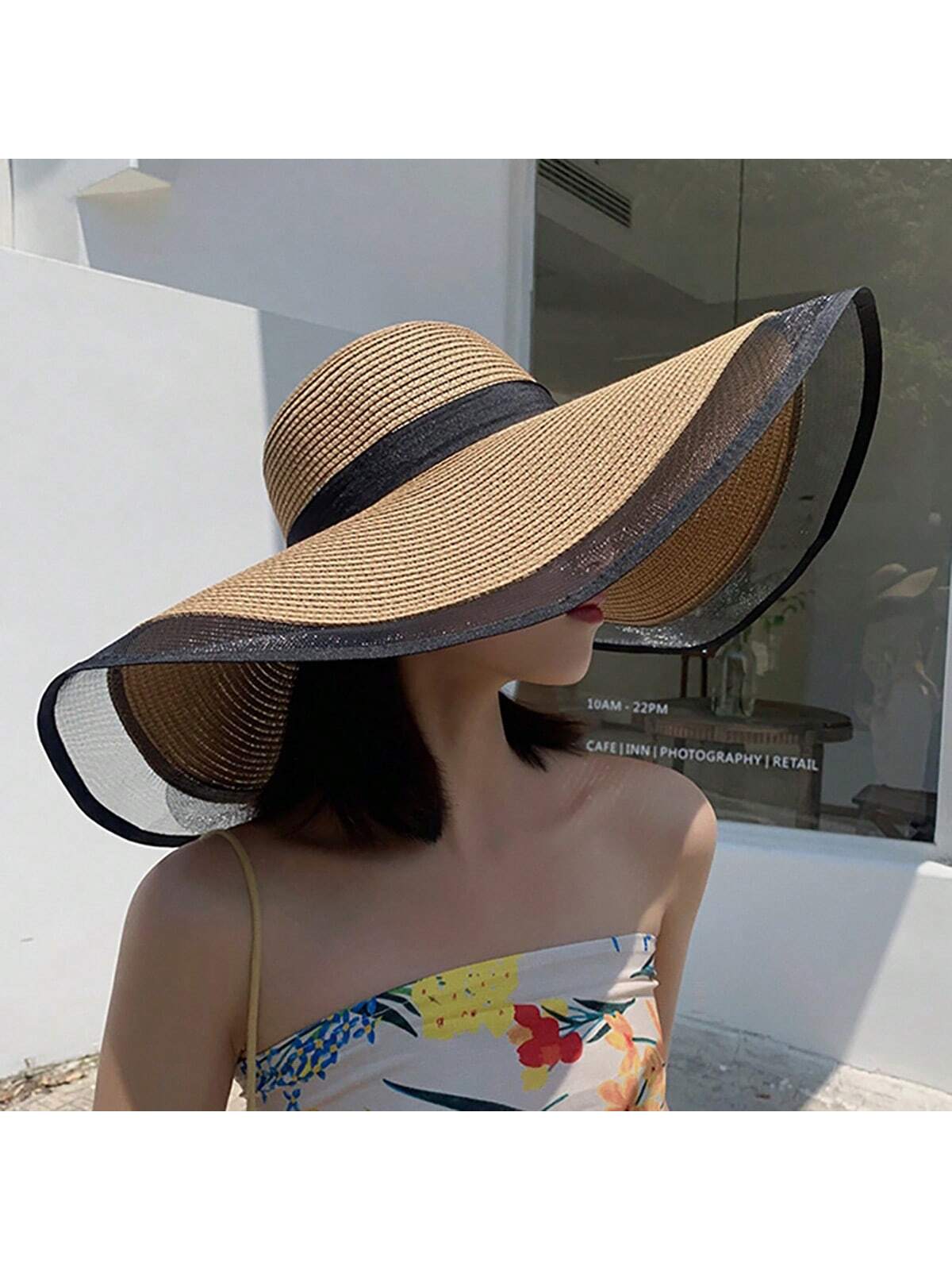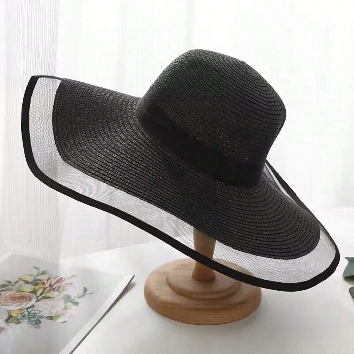 1pc Retro Black Fashionable Sun Hat, Sun Protection Wide Brim Beach Hat For Women, Summer Resort, Includes Care Instructions If Hat Arrives Slightly Pressed €16.00