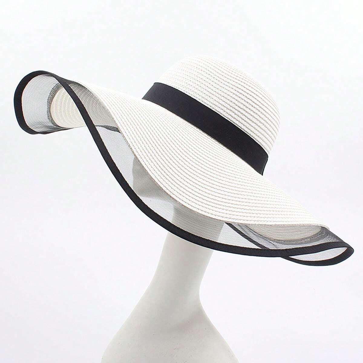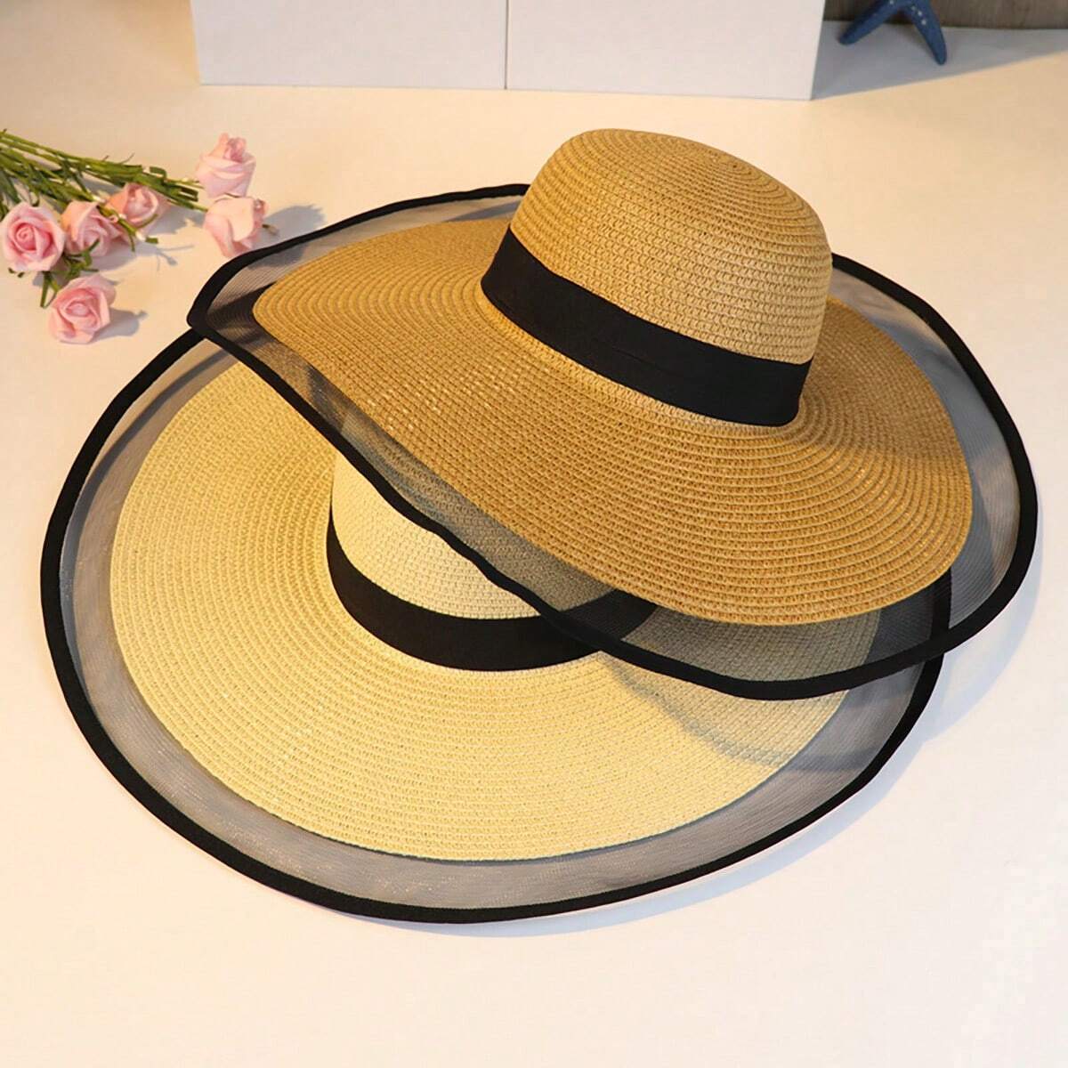 Home Accessories Women-Accessories Hats & Caps-WA Women's Sun Hat Summer Straw Hat With Wide Brim, Sun Protection And Fashionable French Mesh Design For Travel, Beach, Outdoor Activities Boho Bow
