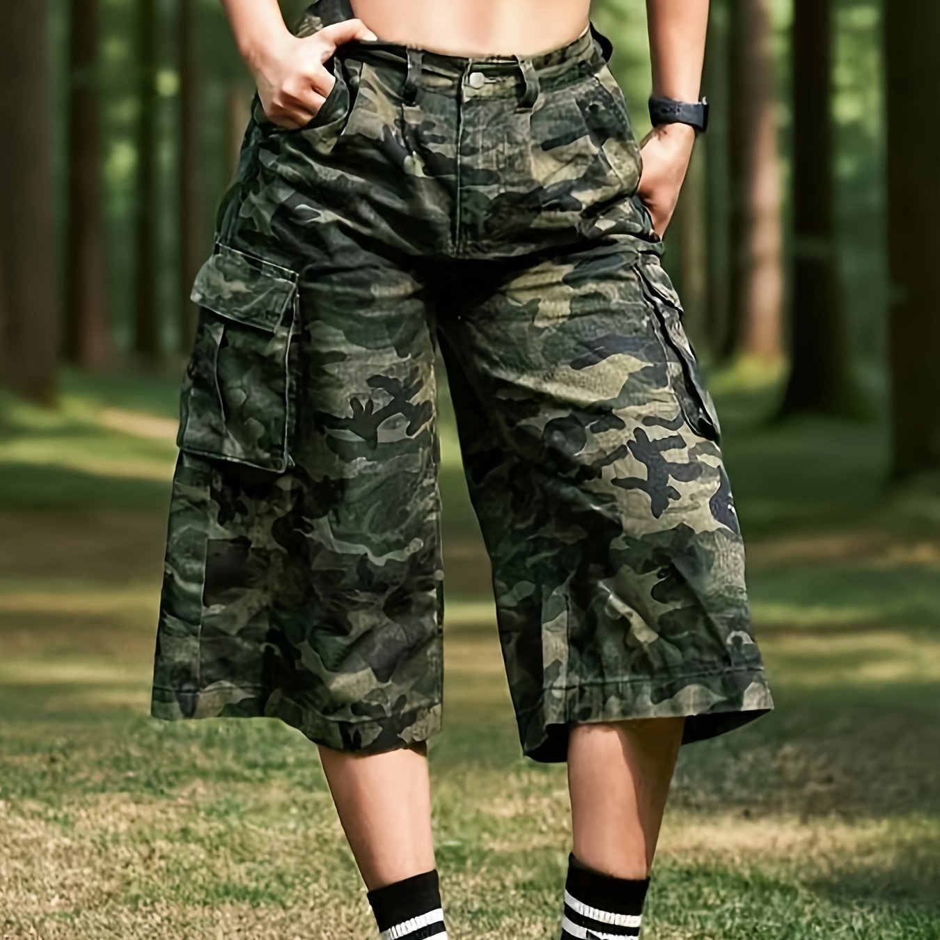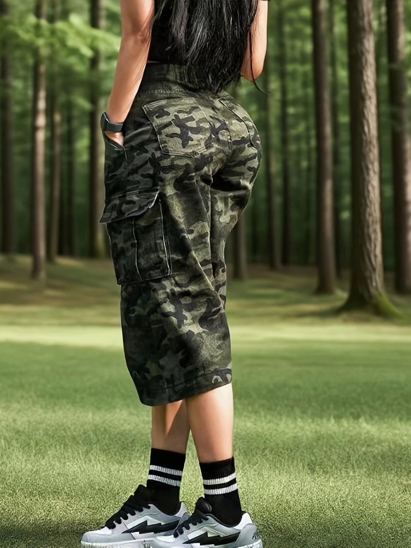 Be the first to review “Women'S Vintage Camo Cargo Shorts with Multiple Pockets – Mid-Thigh Length, Stretch Denim, Black & White Striped Socks, White Sneakers, Perfect for Spring/Fall, Casual Outdoor Wear, Casual Outdoor Wear | Vintage Style Shorts | Medium Stretch Fabric” Cancel reply