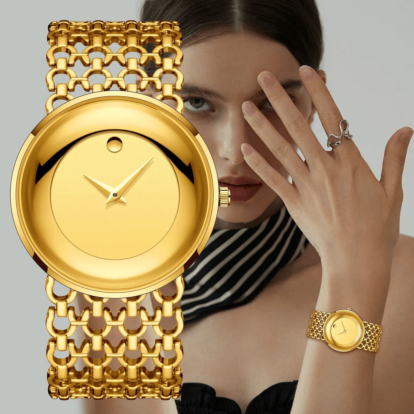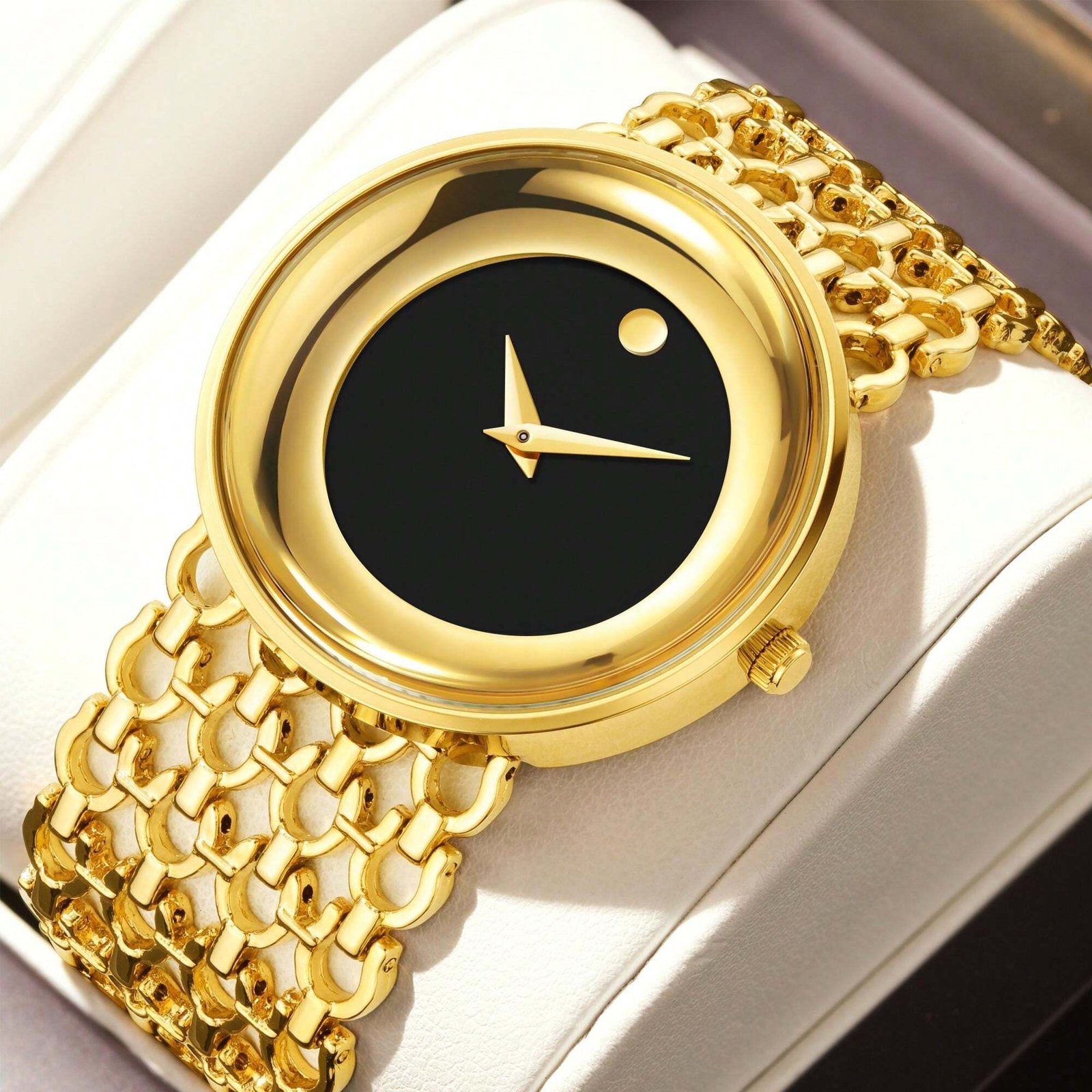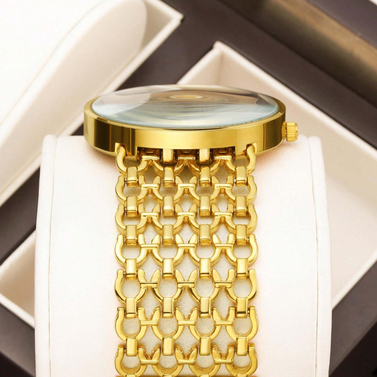 YaLaLuSi 1 Piece Newest Women's Gold Quartz Watch Waterproof Mineral Glass Luxury Casual Fashion Skeleton Bracelet Wear-Resistant Oxidation-Resistant With Strap Adjuster Hundreds Of Designs Gift For Mom, Friend, Girlfriend Holiday Gift, Birthday Gift