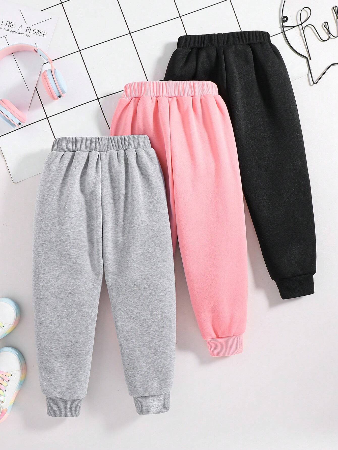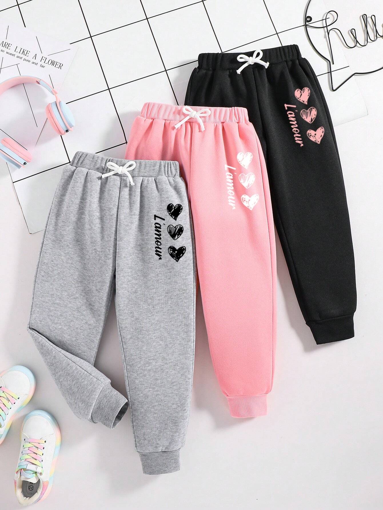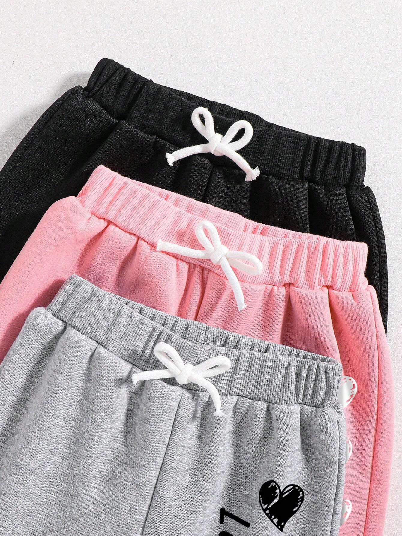 Young Girl Letter And Heart Printed Sports Pants Set Of 3