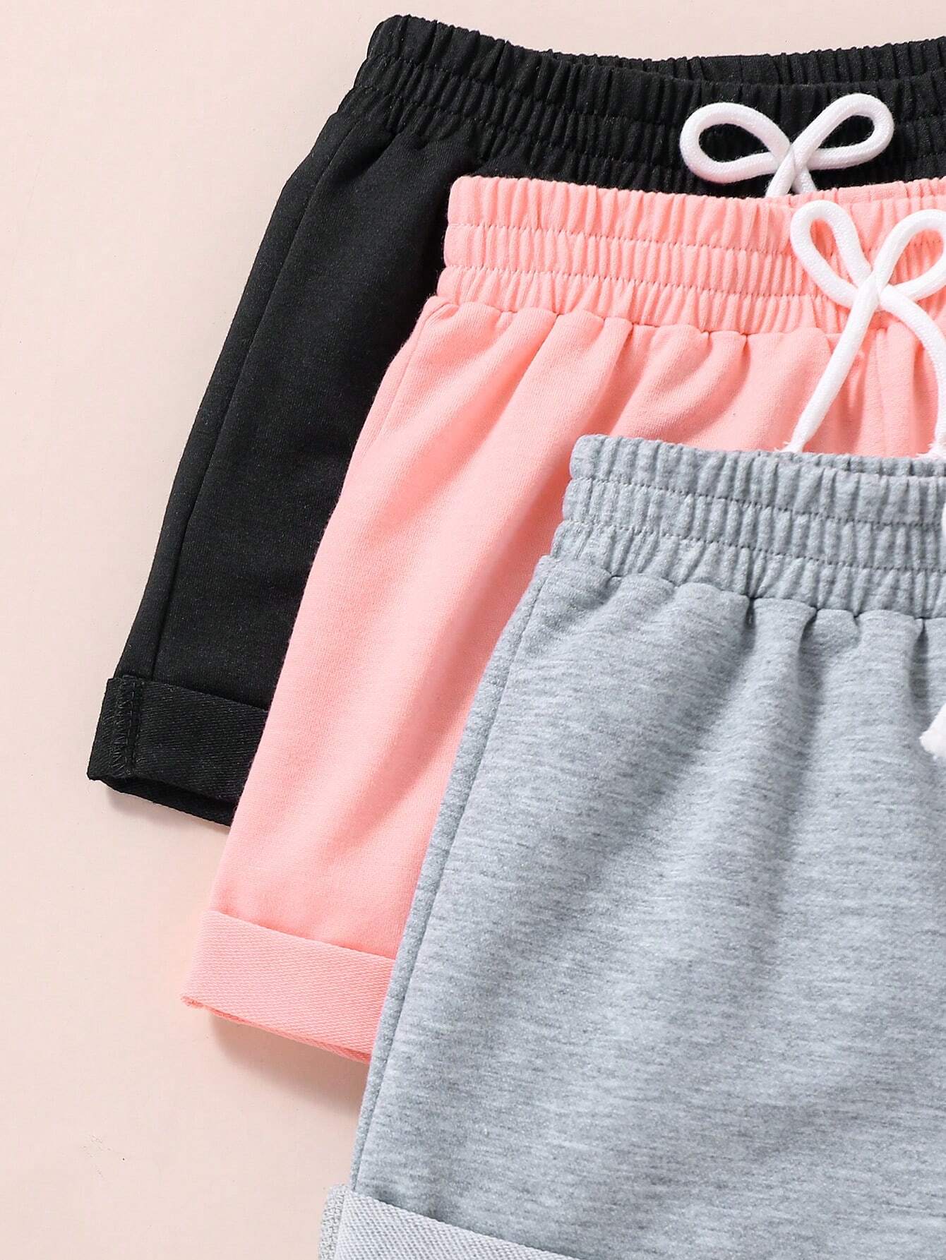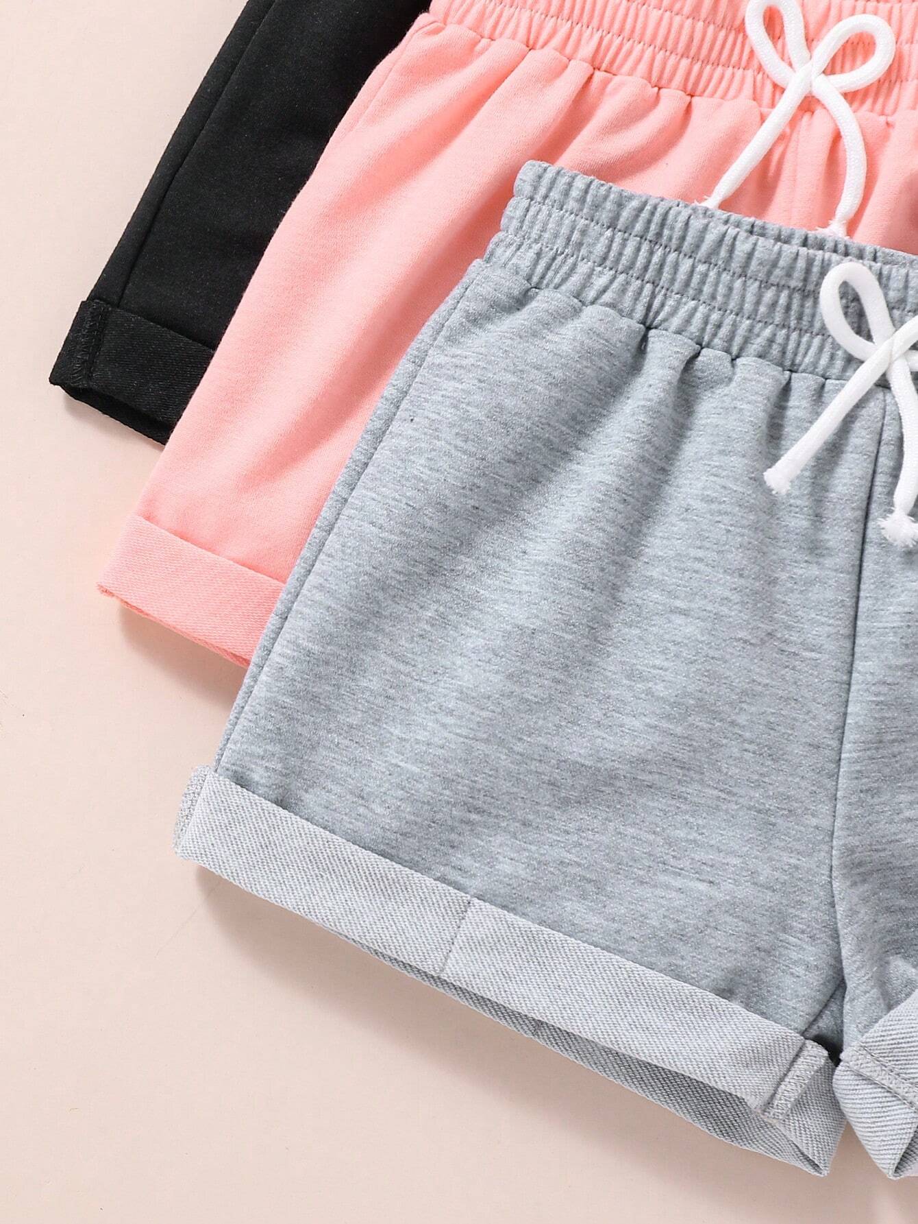 Young Girl Summer Casual Three-Piece Set With Waist Bow Tie Shorts