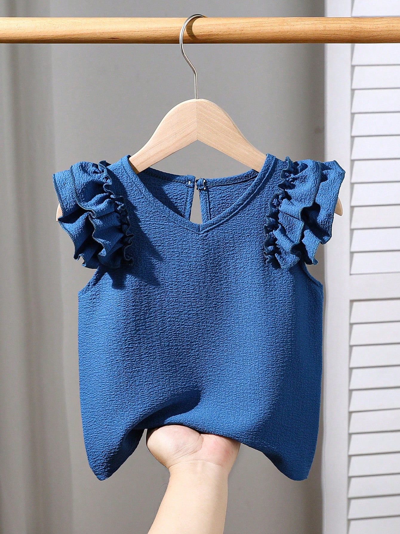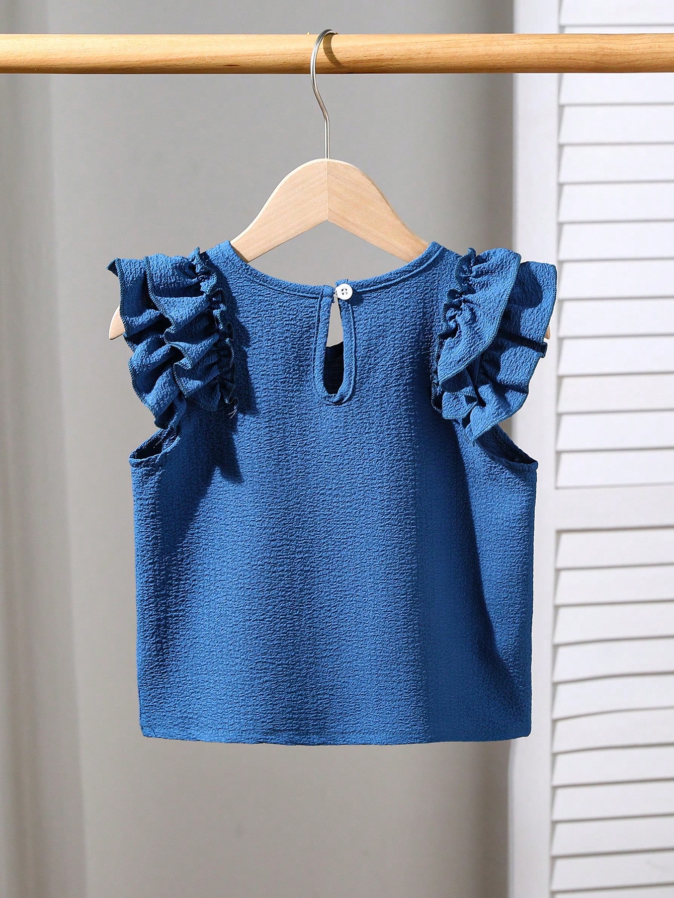 Young Girl Textured Fabric Short Cap Sleeve Casual T-Shirt