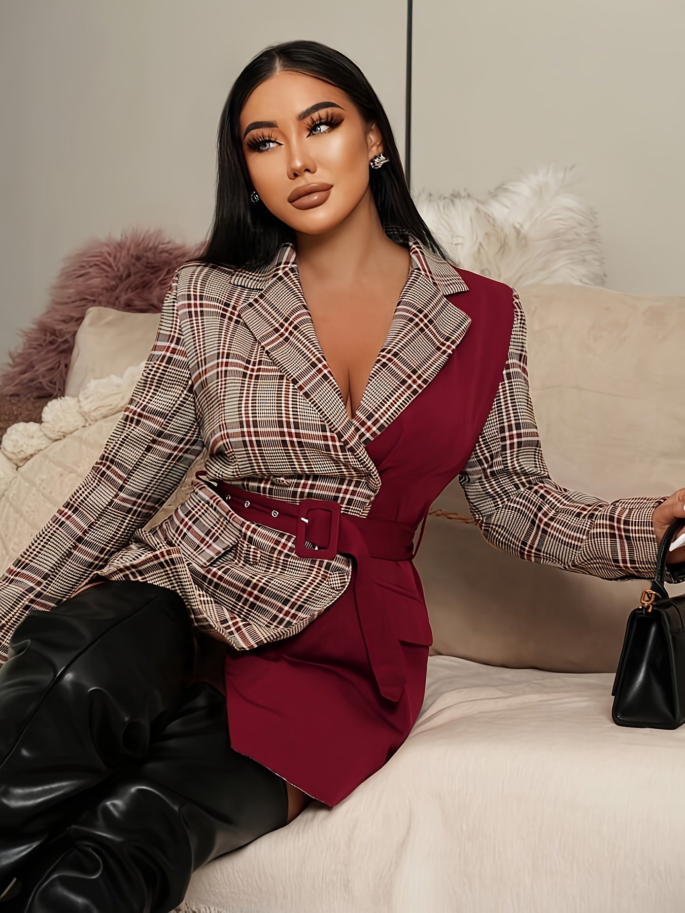 Be the first to review “YY0514981 Elegant European and American Plaid Print Double-Breasted Belted Women's Blazer with Lapel, Long Sleeves & Faux Pockets” Cancel reply