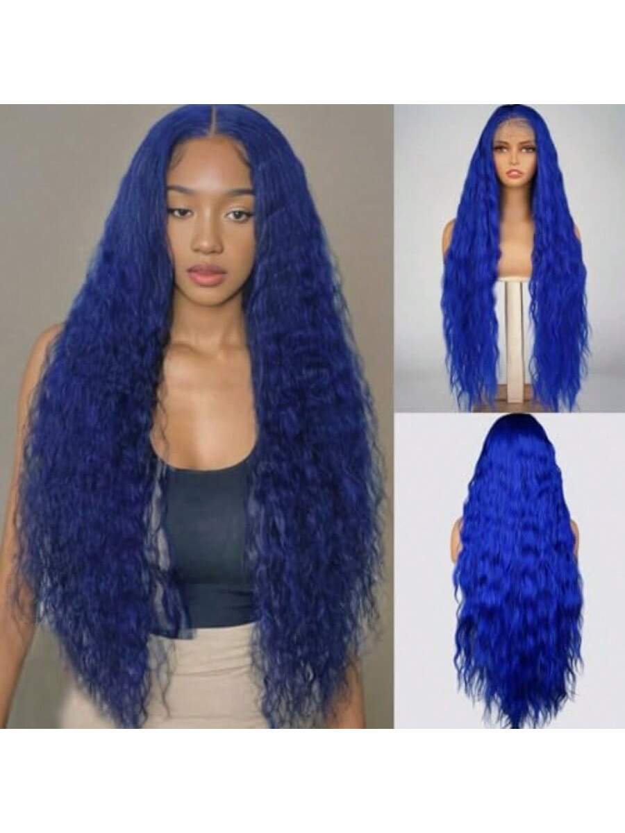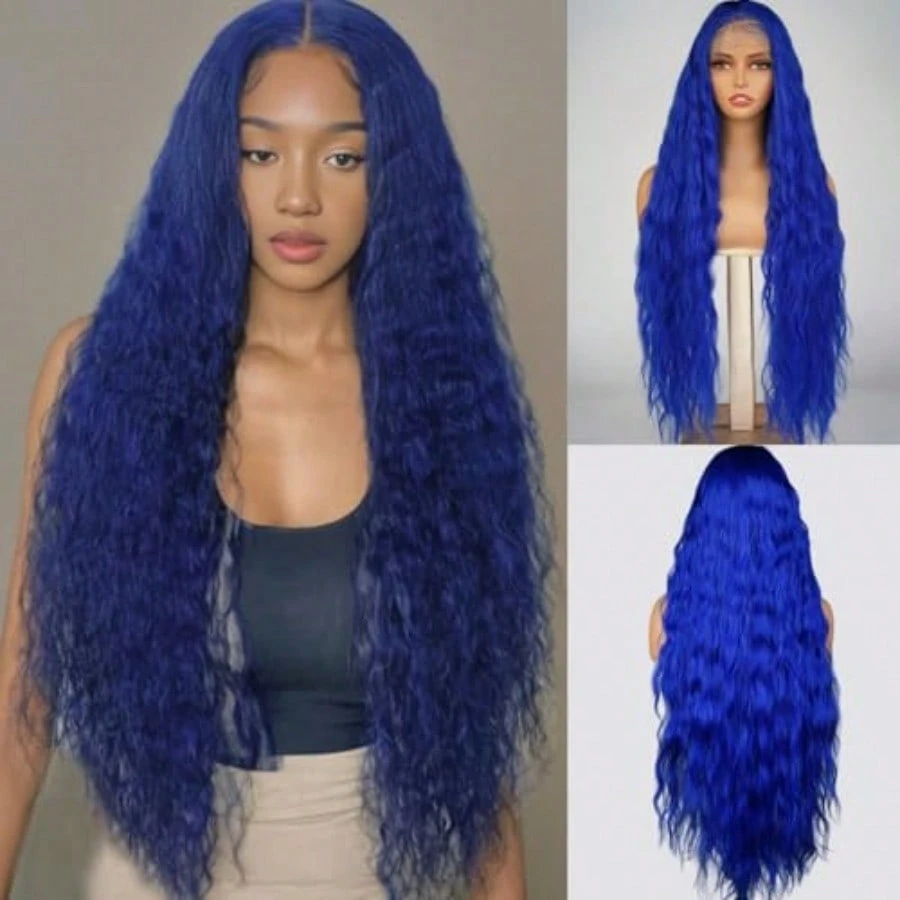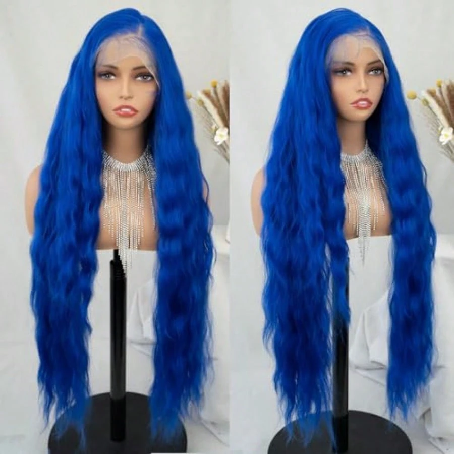 ZYKMQZY13X6 HD Lace Front Wigs For Black Women 34 Inch Blue Water Wave Wig Natural Hairline Heat Resistant Synthetic Glueless Pre Plucked Wigs With Baby Hair Long Curly Wig Daily Wear And Go