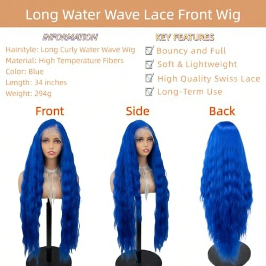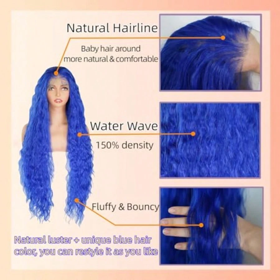 Be the first to review “ZYKMQZY13X6 HD Lace Front Wigs For Black Women 34 Inch Blue Water Wave Wig Natural Hairline Heat Resistant Synthetic Glueless Pre Plucked Wigs With Baby Hair Long Curly Wig Daily Wear And Go” Cancel reply