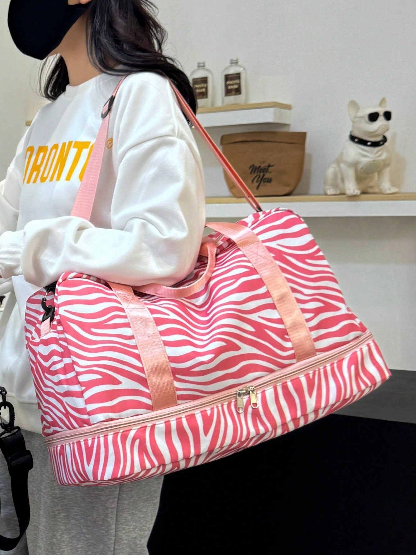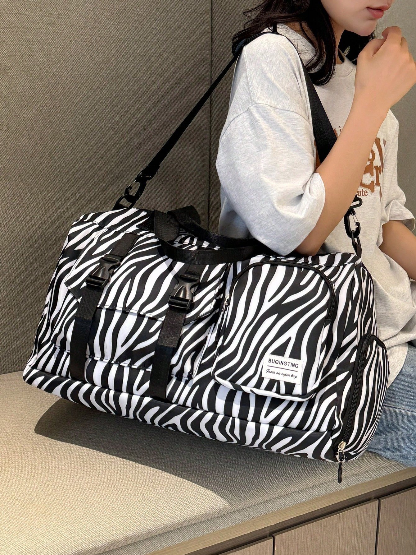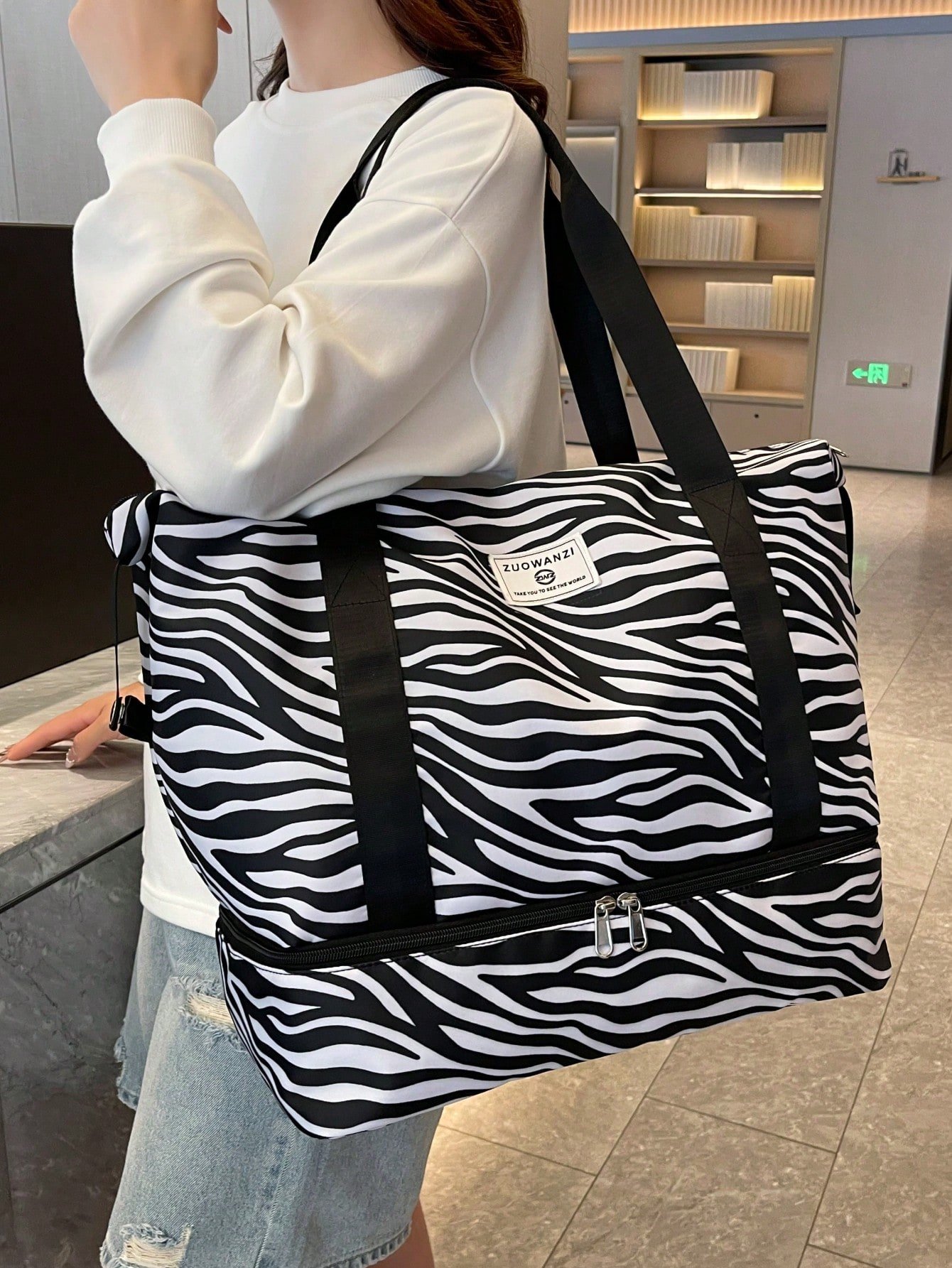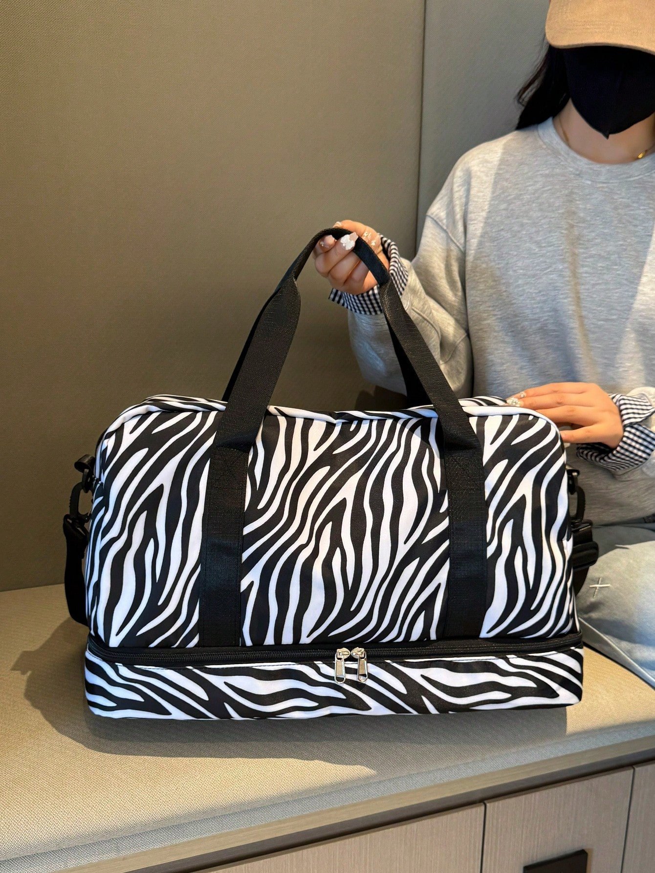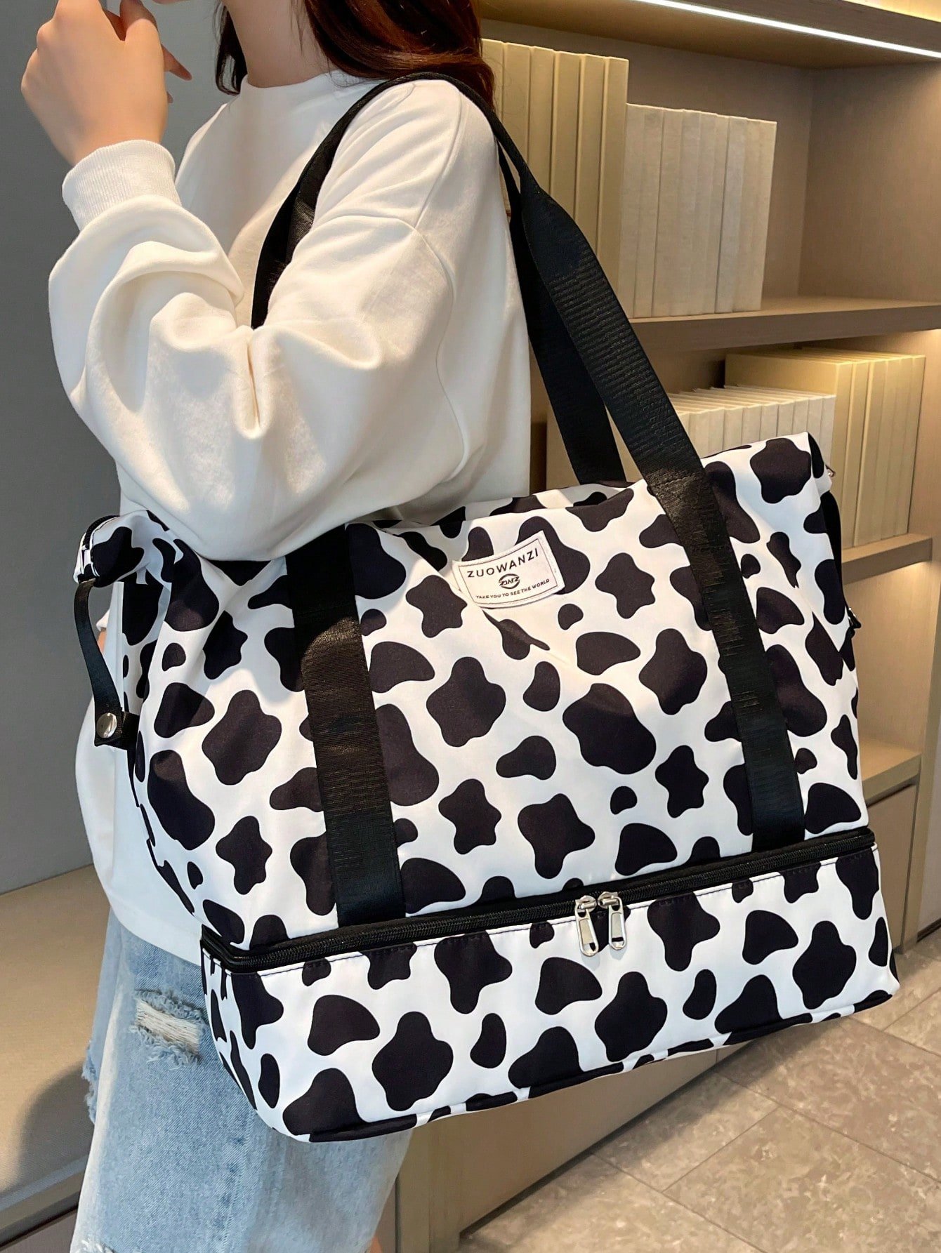 Cow, Leopard, Zebra Print, Duffle Bag, Travel Bag, Luggage Bag, Large Capacity, Dry And Wet Separation, For Business, For Travel, For Hospital, Nylon Black Traveling Bag Travelling Organizer Outfit Airport Travel Clothes Travel Stuff Luggage Bag Christmas