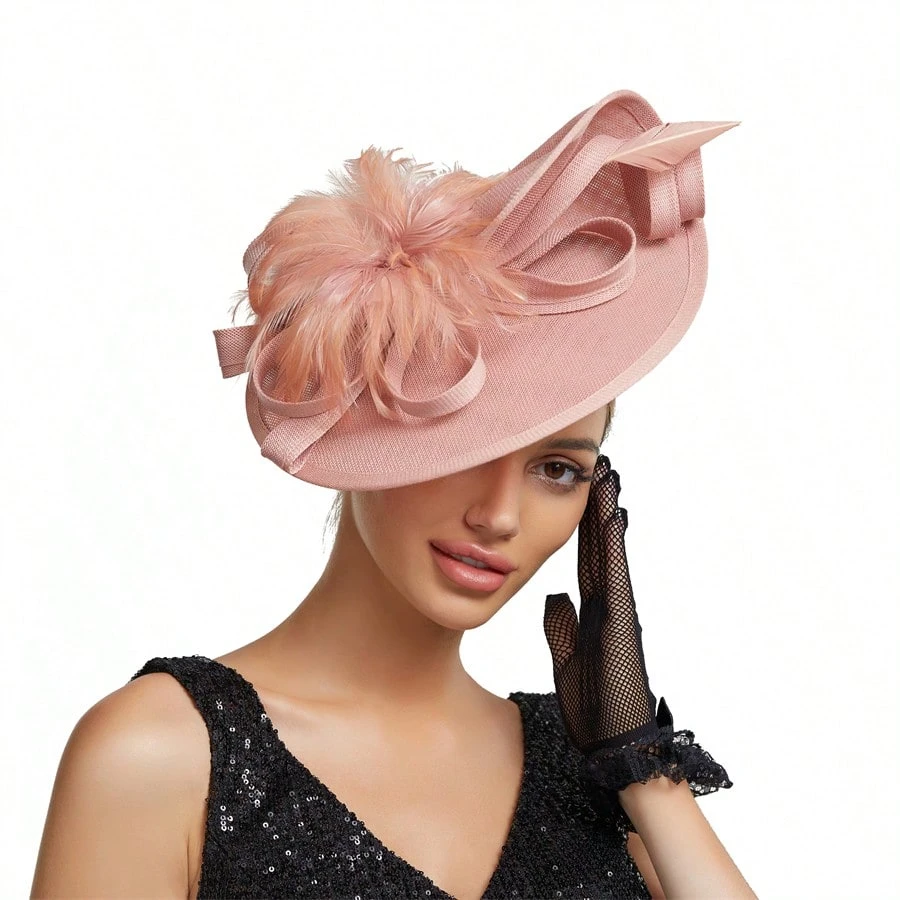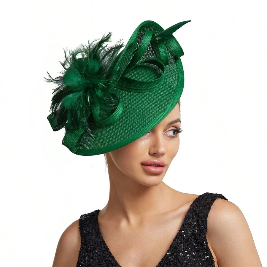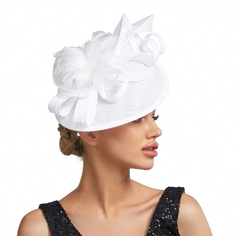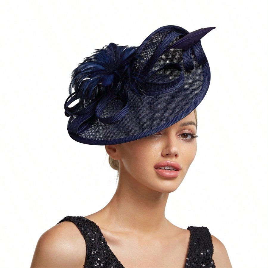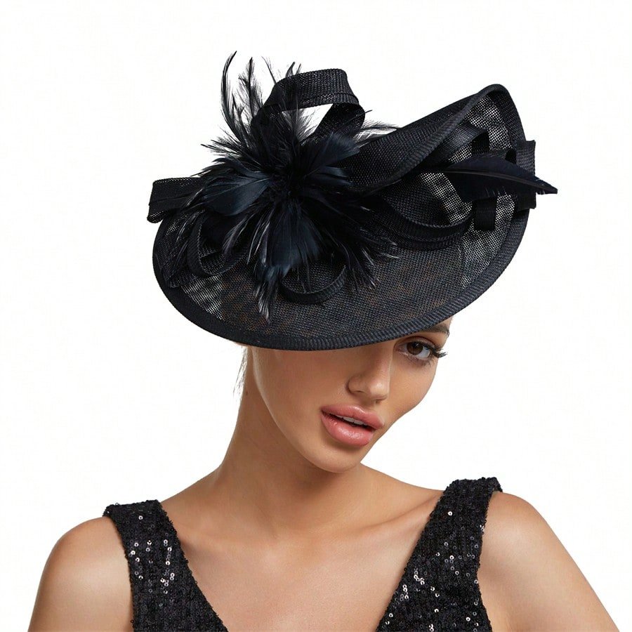 Elegant Alluring Women Derby Church Wedding Feather Sinamay Fascinator Headband Hair Clip Mini Hats Tiny Hats Derby Hat Mini Top Hat Mini Cap