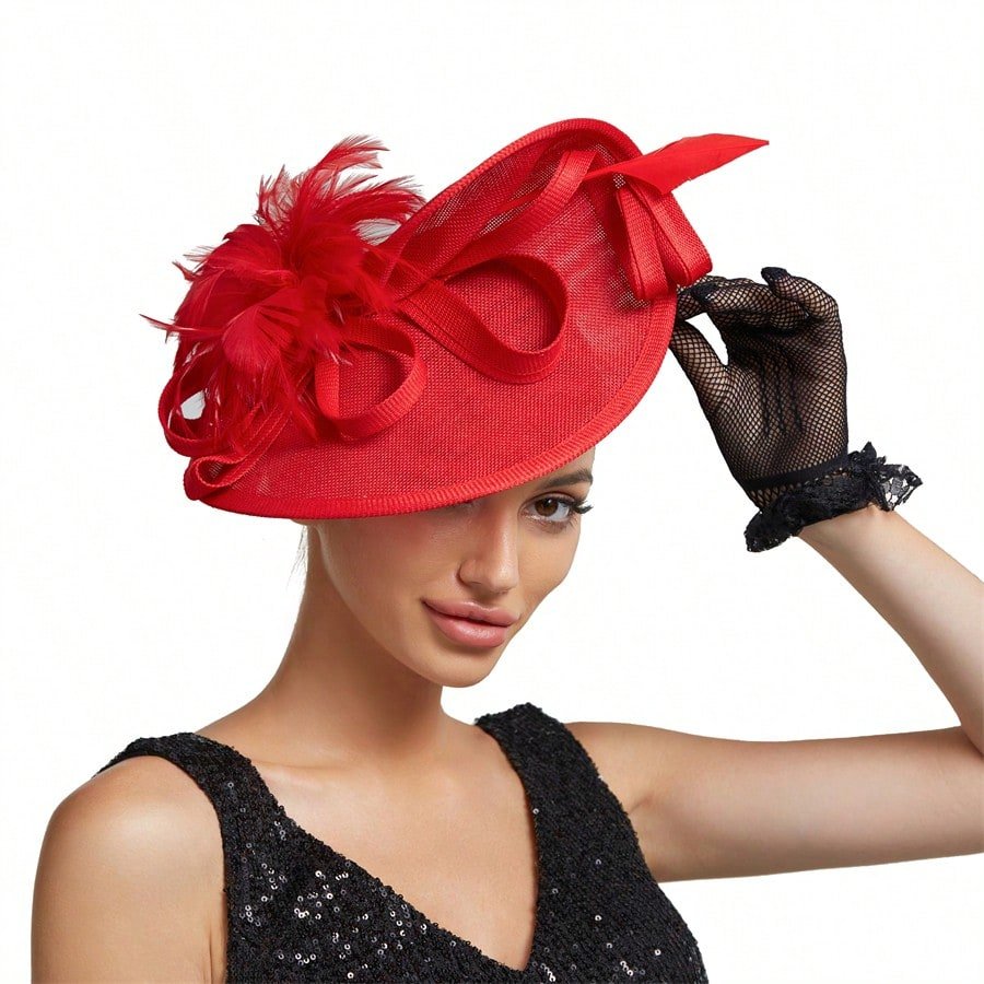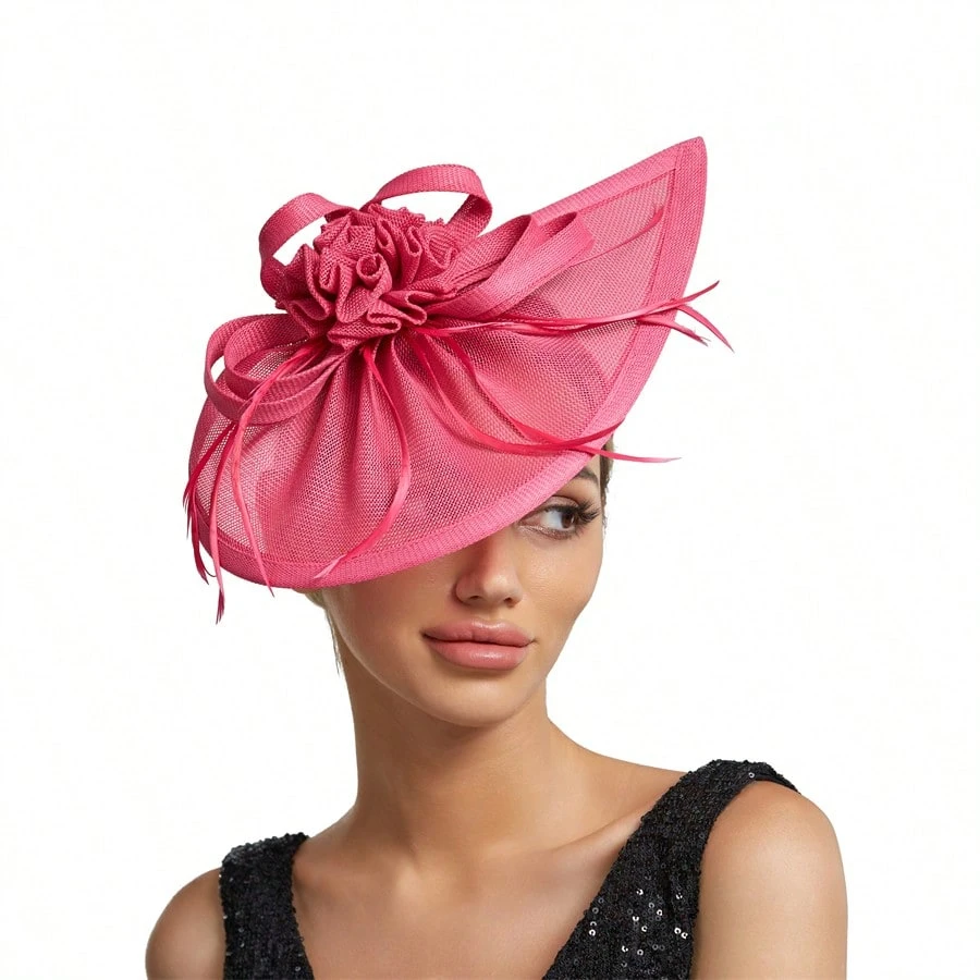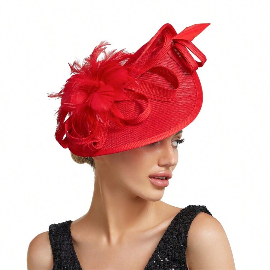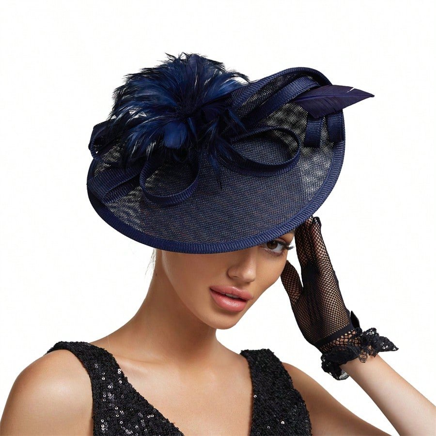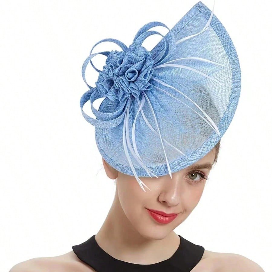 Elegant Alluring Women Derby Church Wedding Feather Sinamay Fascinator Headband Hair Clip Mini Hats Tiny Hats Derby Hat Mini Top Hat Mini Cap