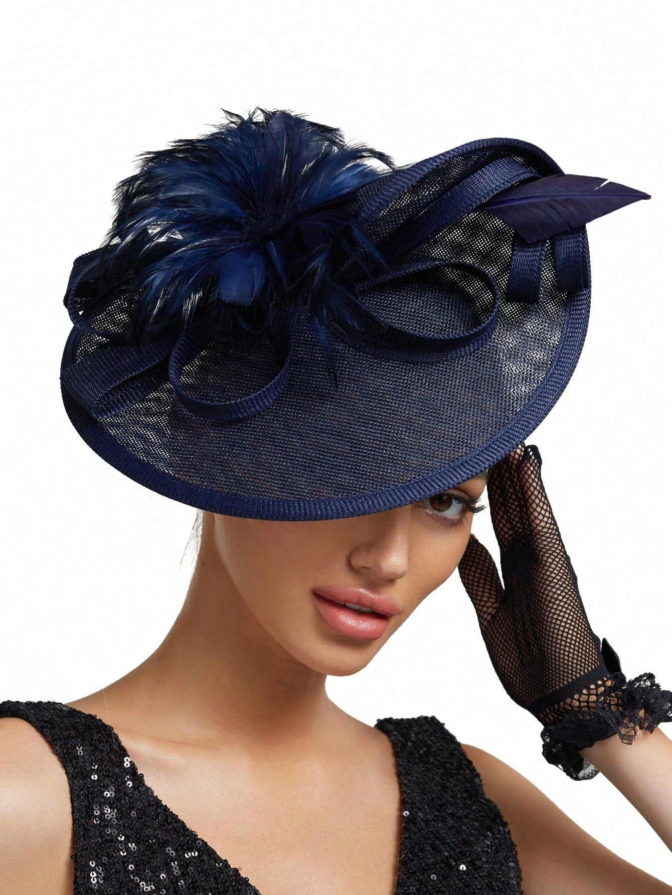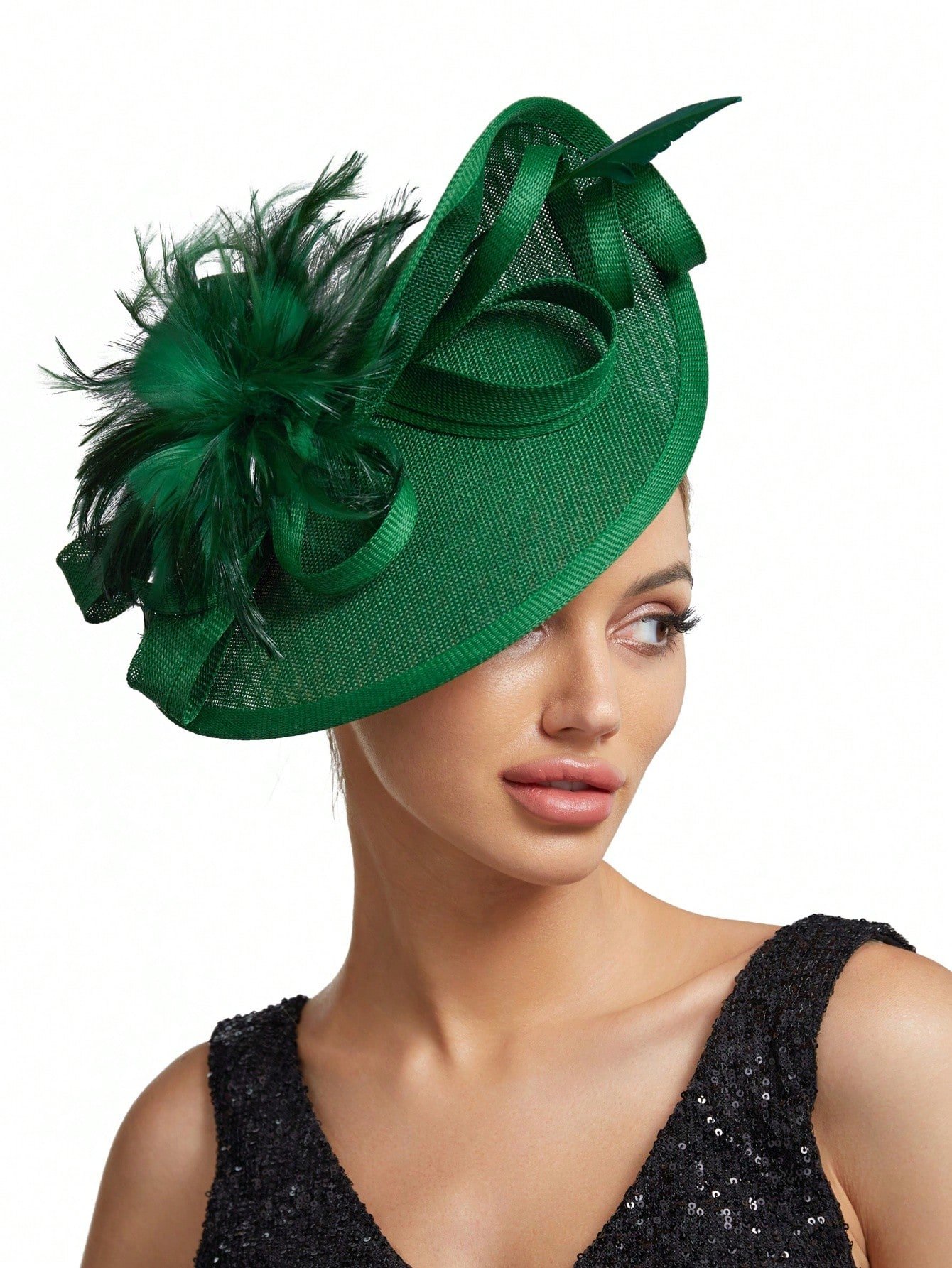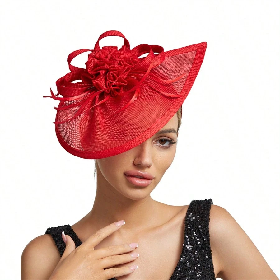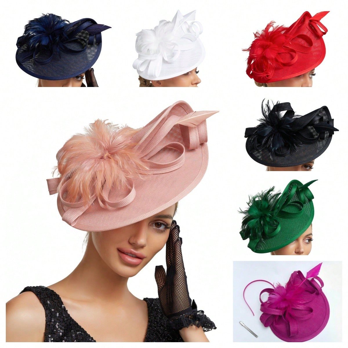 Elegant Alluring Women Derby Church Wedding Feather Sinamay Fascinator Headband Hair Clip Mini Hats Tiny Hats Derby Hat Mini Top Hat Mini Cap
