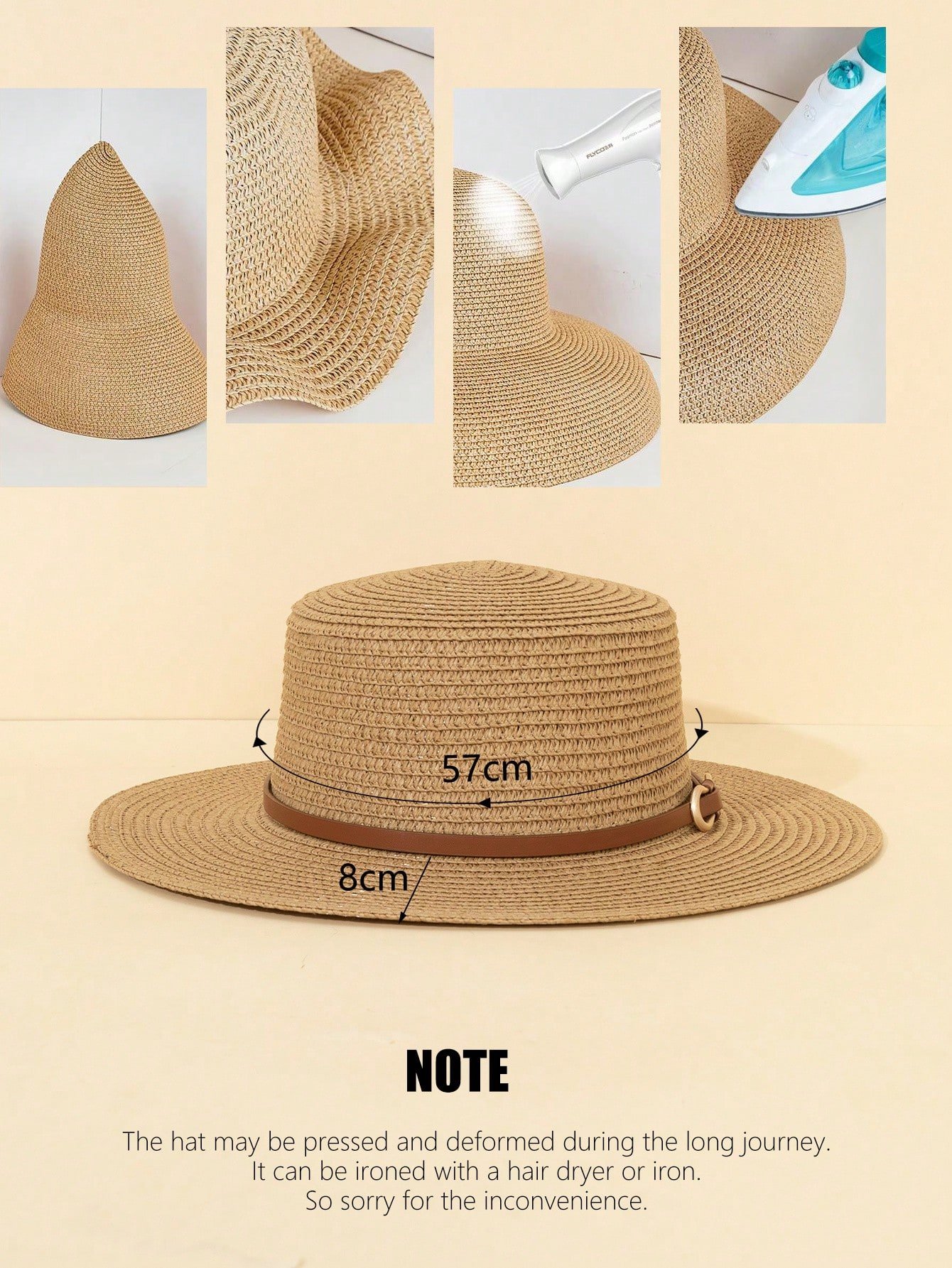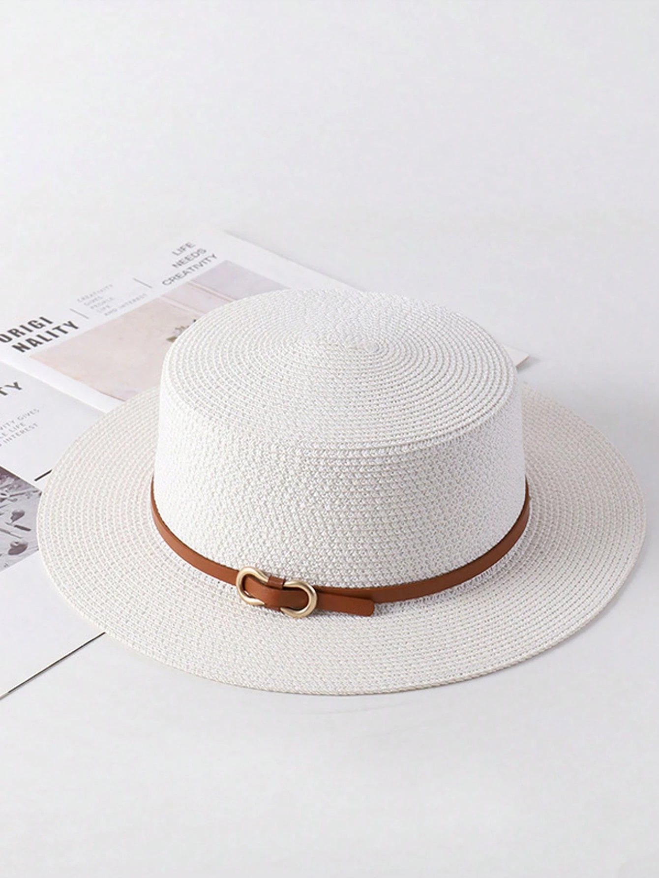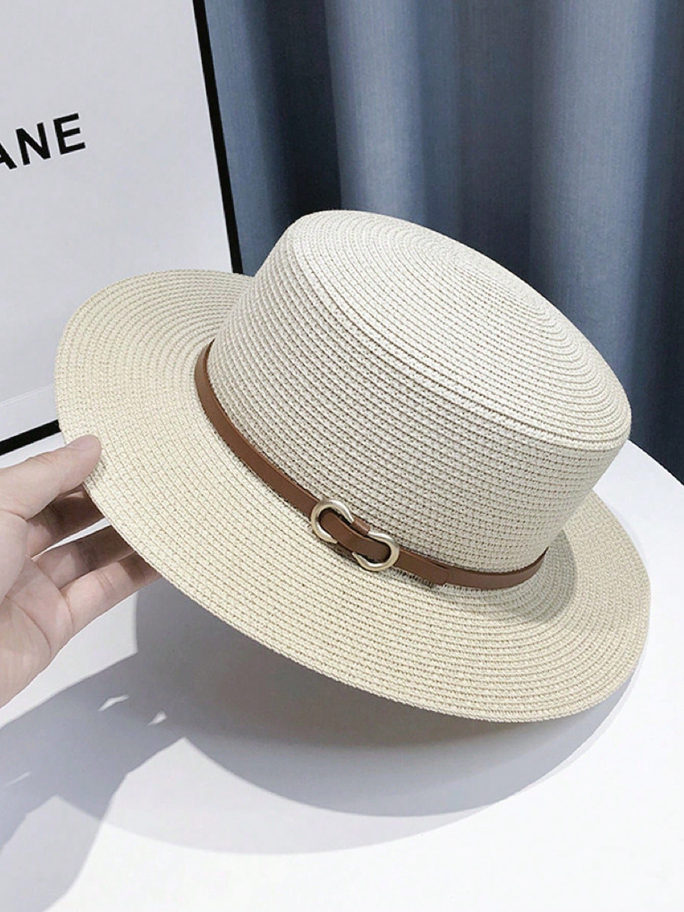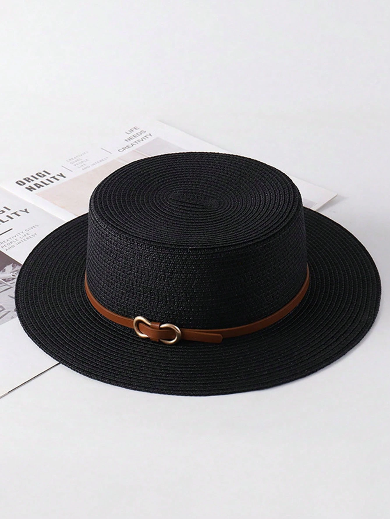 Women's Summer Sun Hat, Minimalist Fashion British Style Flat Top Hat, Beach Holiday Sun Protection Hat, Fashionable & Versatile