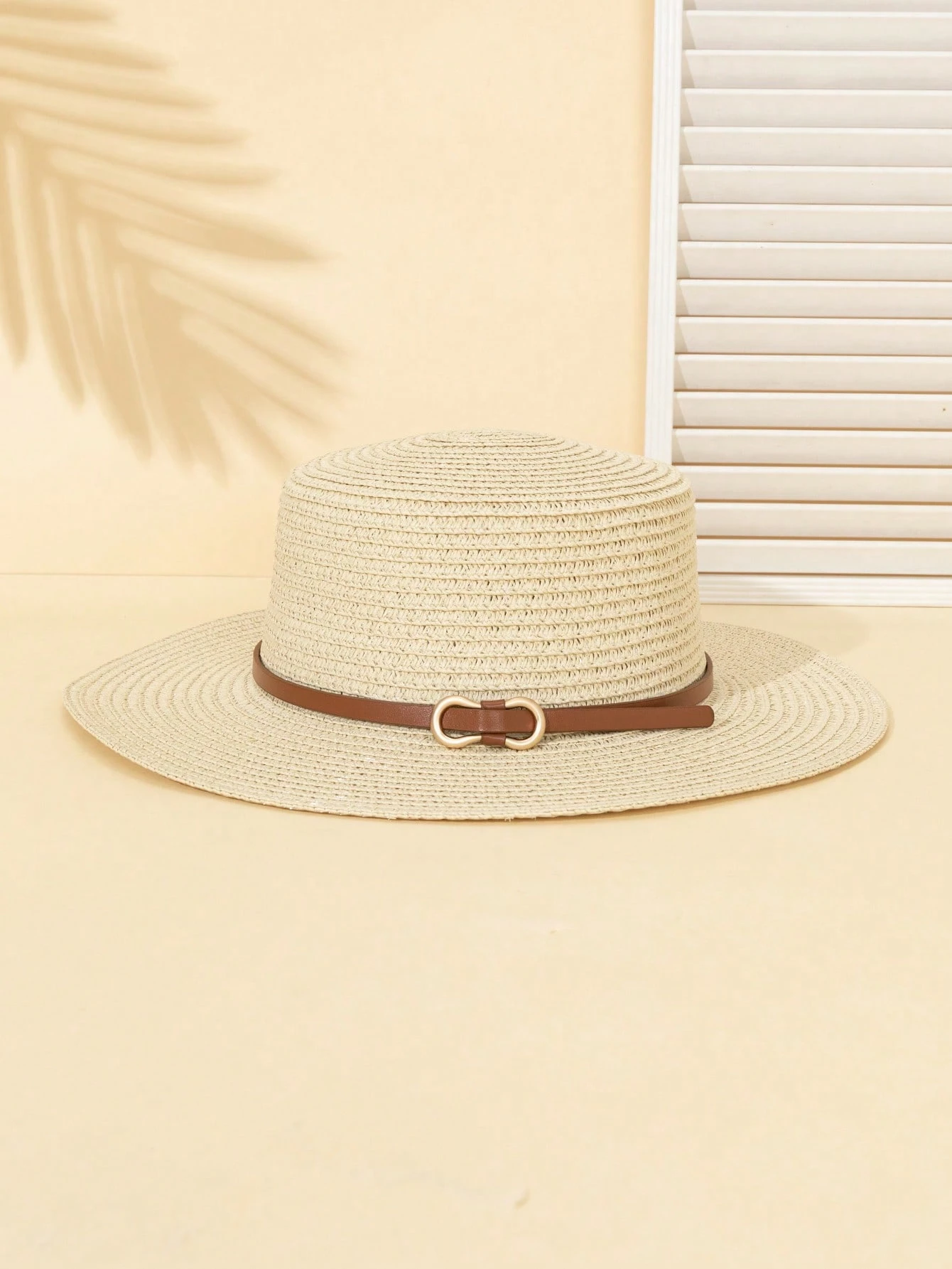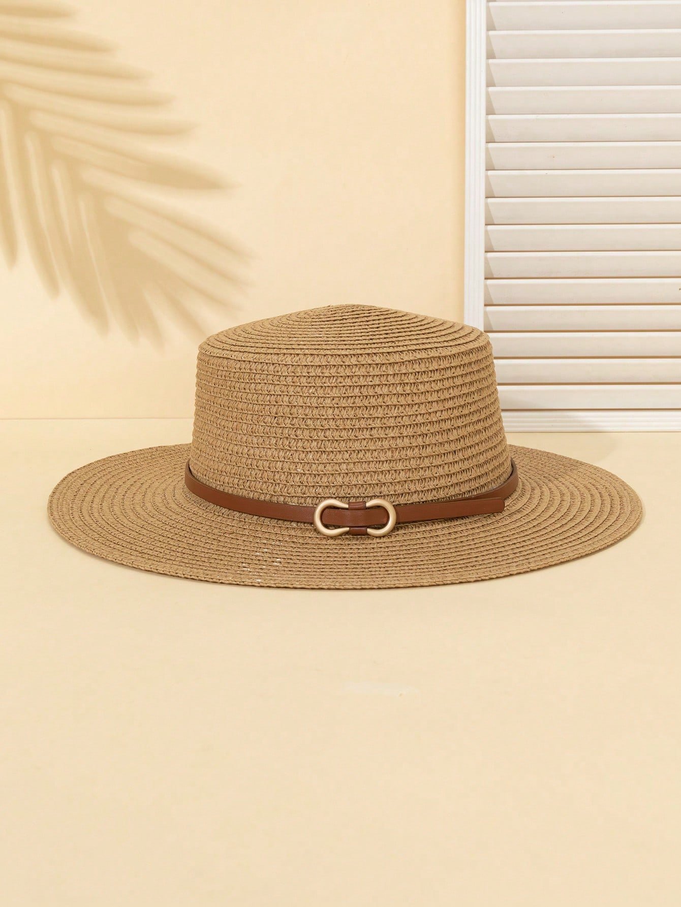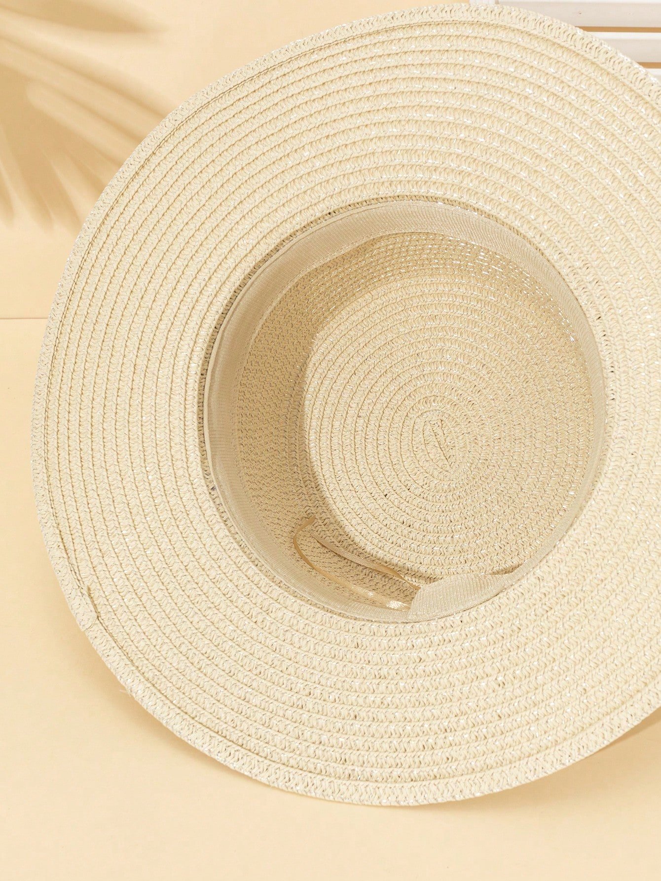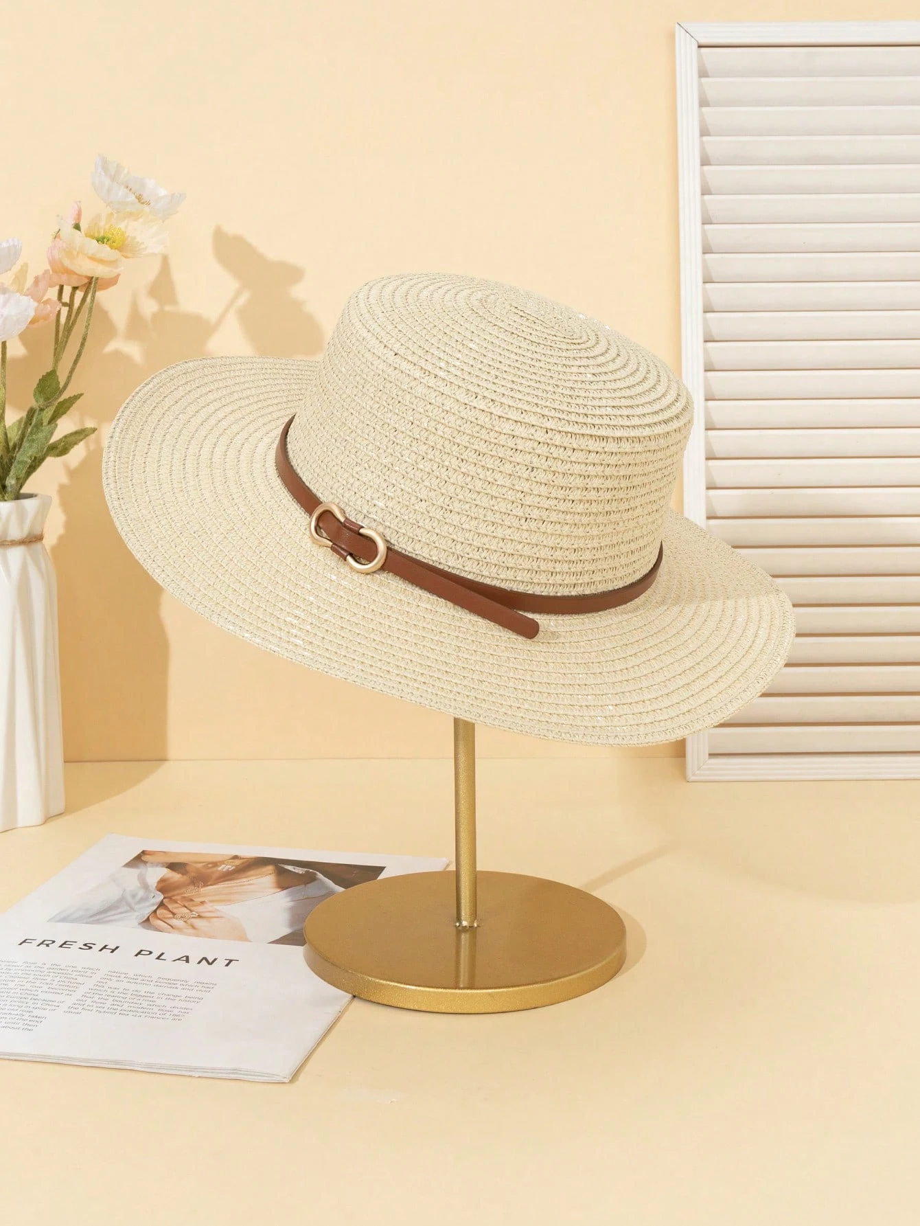 Women's Summer Sun Hat, Minimalist Fashion British Style Flat Top Hat, Beach Holiday Sun Protection Hat, Fashionable & Versatile