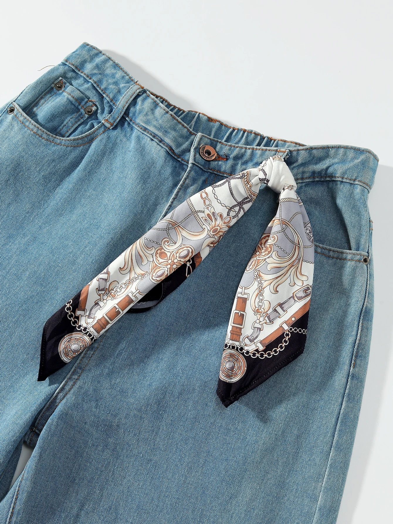1pc Women's Orange Belt Chain & Floral Printed Silk Scarf Elegant Bandana,Hair Band,Head Band Ideal For Dressing Up Your Look €12.00