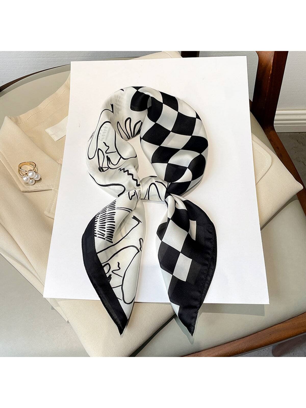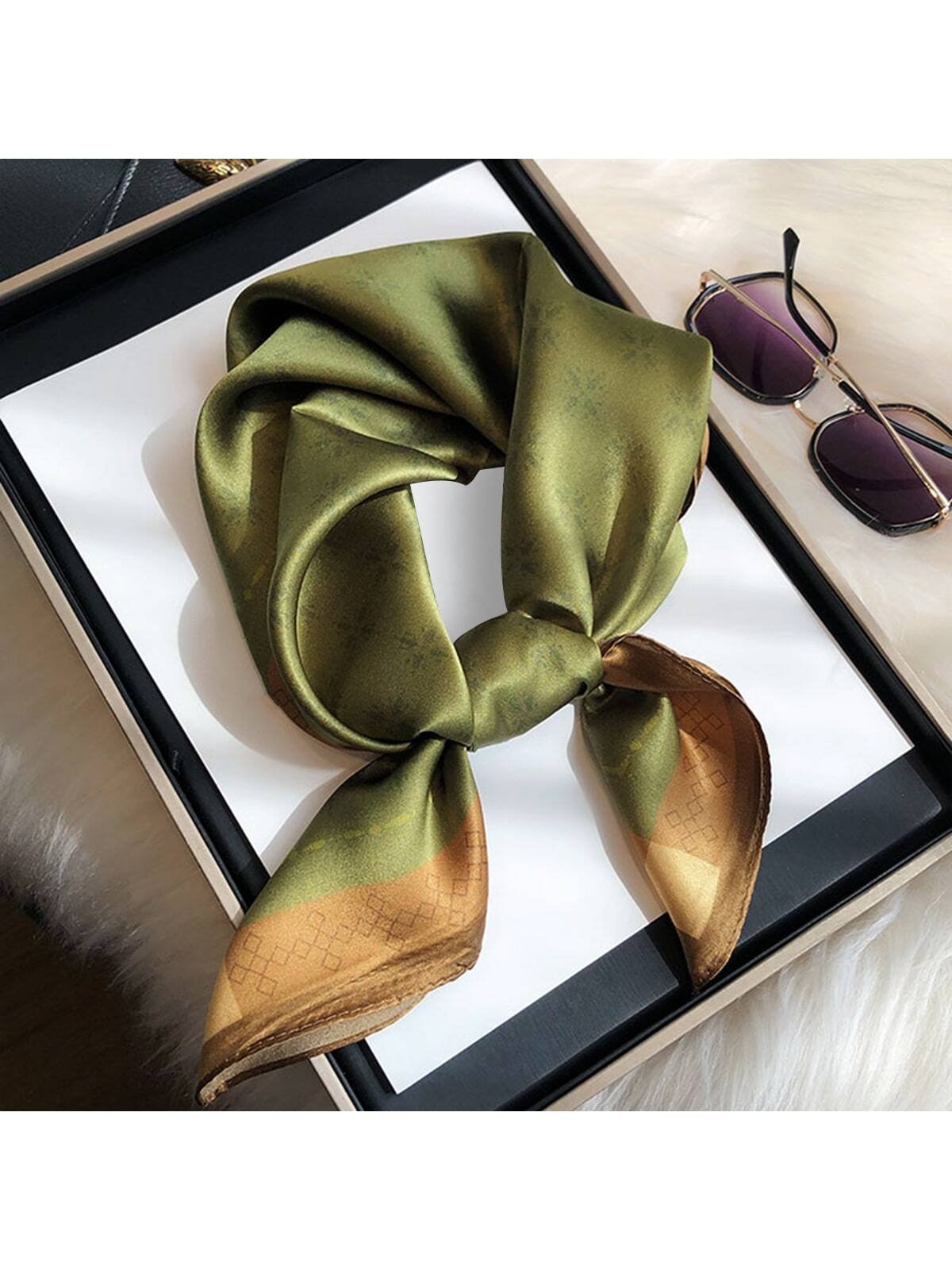 26.77in 68cm Women's Fashionable, Breathable, Multi-Purpose Faux Silk Printed Square Scarf/Hairband/Neckerchief/Bag Handle Accessory, 1pc Bandana,Hair Band,Head Band Ideal For Dressing Up Your Look