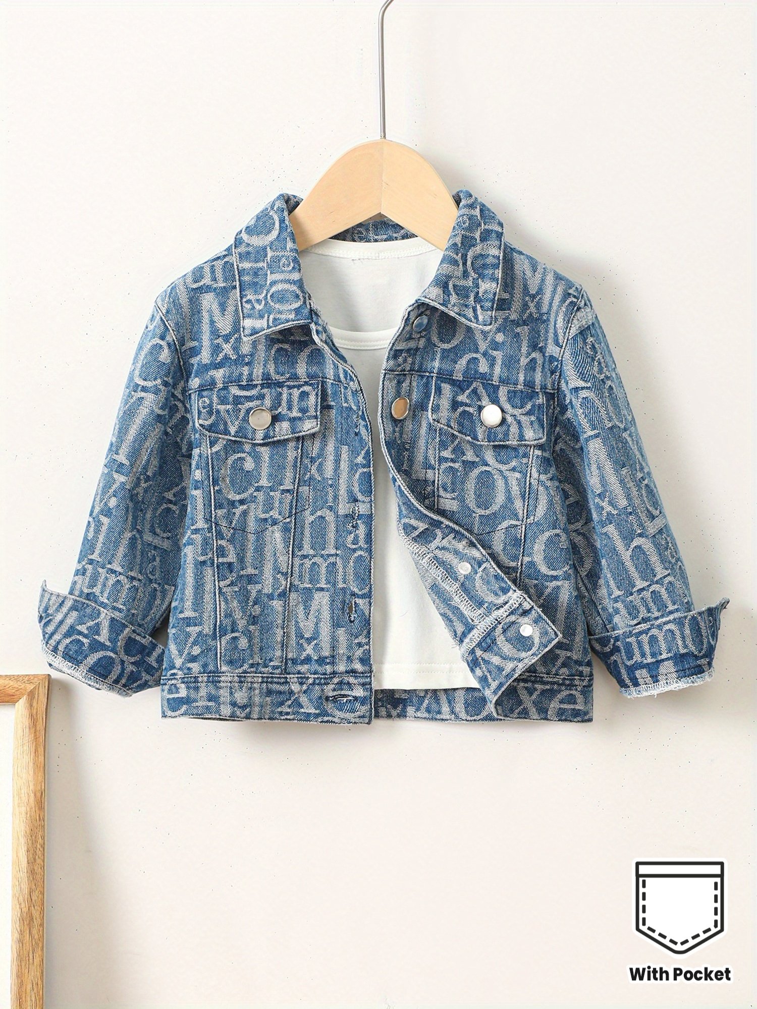 Be the first to review “Denim Jacket Single-Piece Girls' Fashion Casual Letter Jacquard Denim Fabric Pocket Flap Decorative Lapel Long Sleeve Denim Jacket for Autumn and Winter” Cancel reply