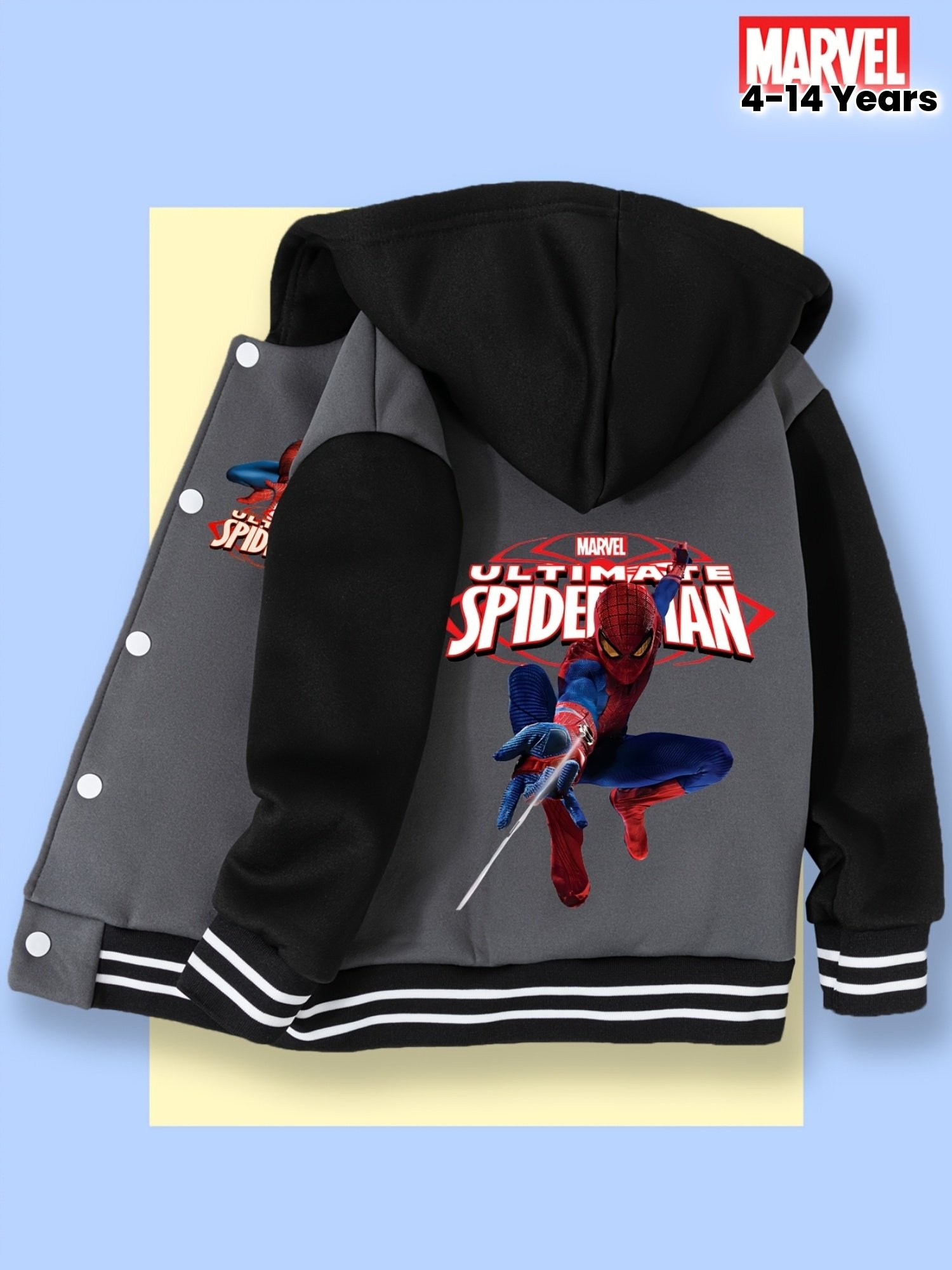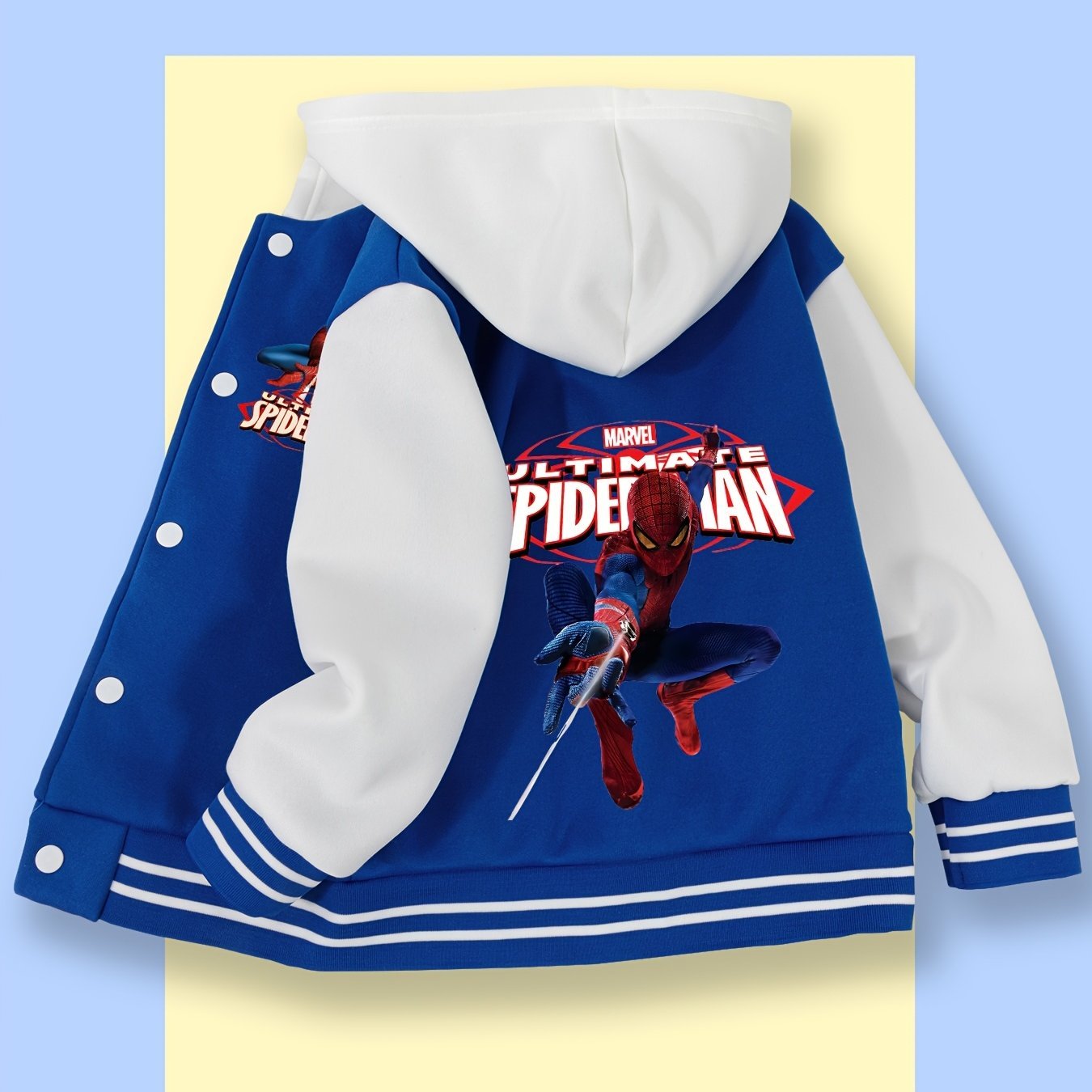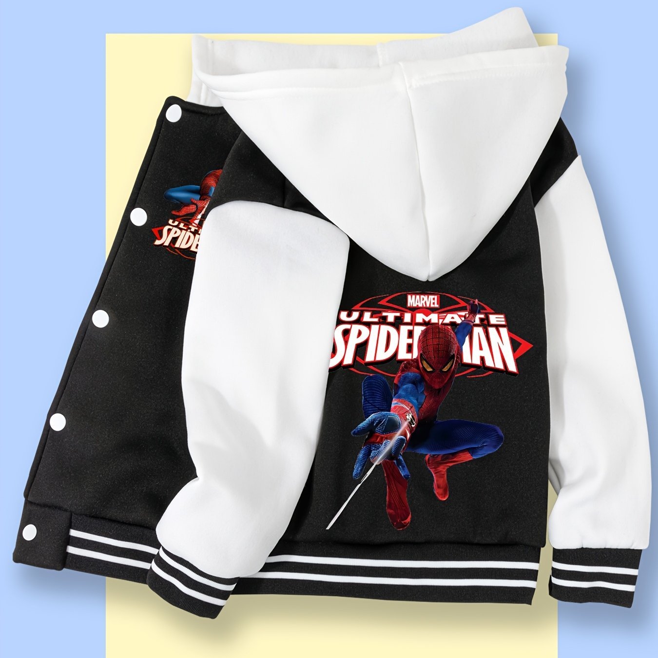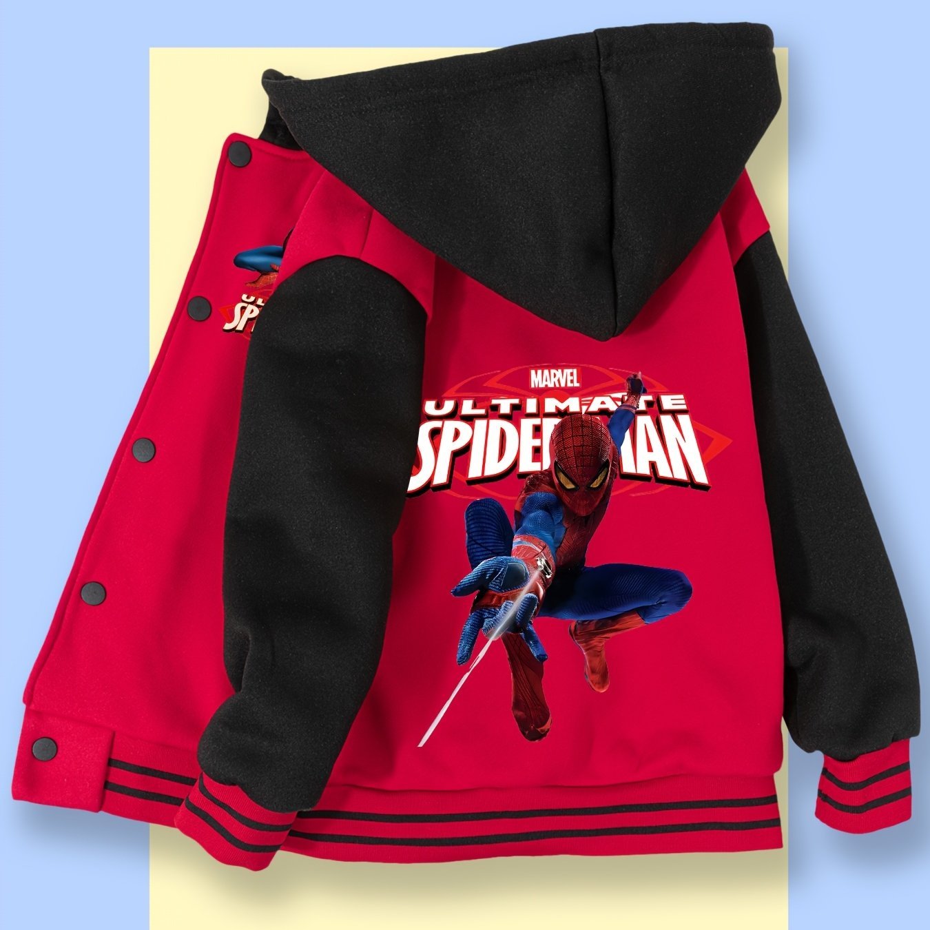 Marvel Spider-Man Themed Baseball Jackets for Boys And Girls, Featuring a Campus Jacket Design with Double-Sided Spider-Man Prints. These Casual Sports Jackets Are Perfect for The Back-To-School Season And Make Great Birthday Gifts for Children