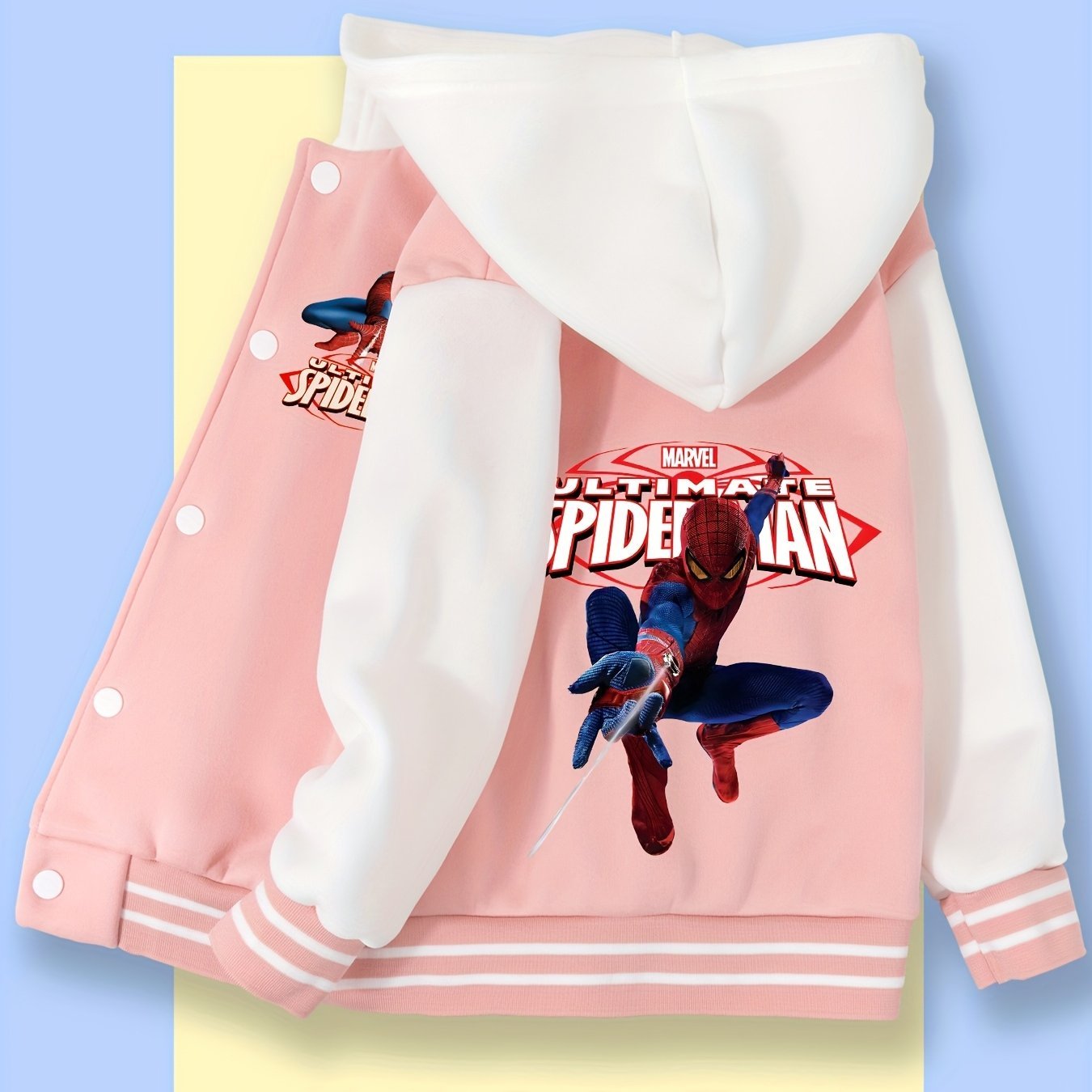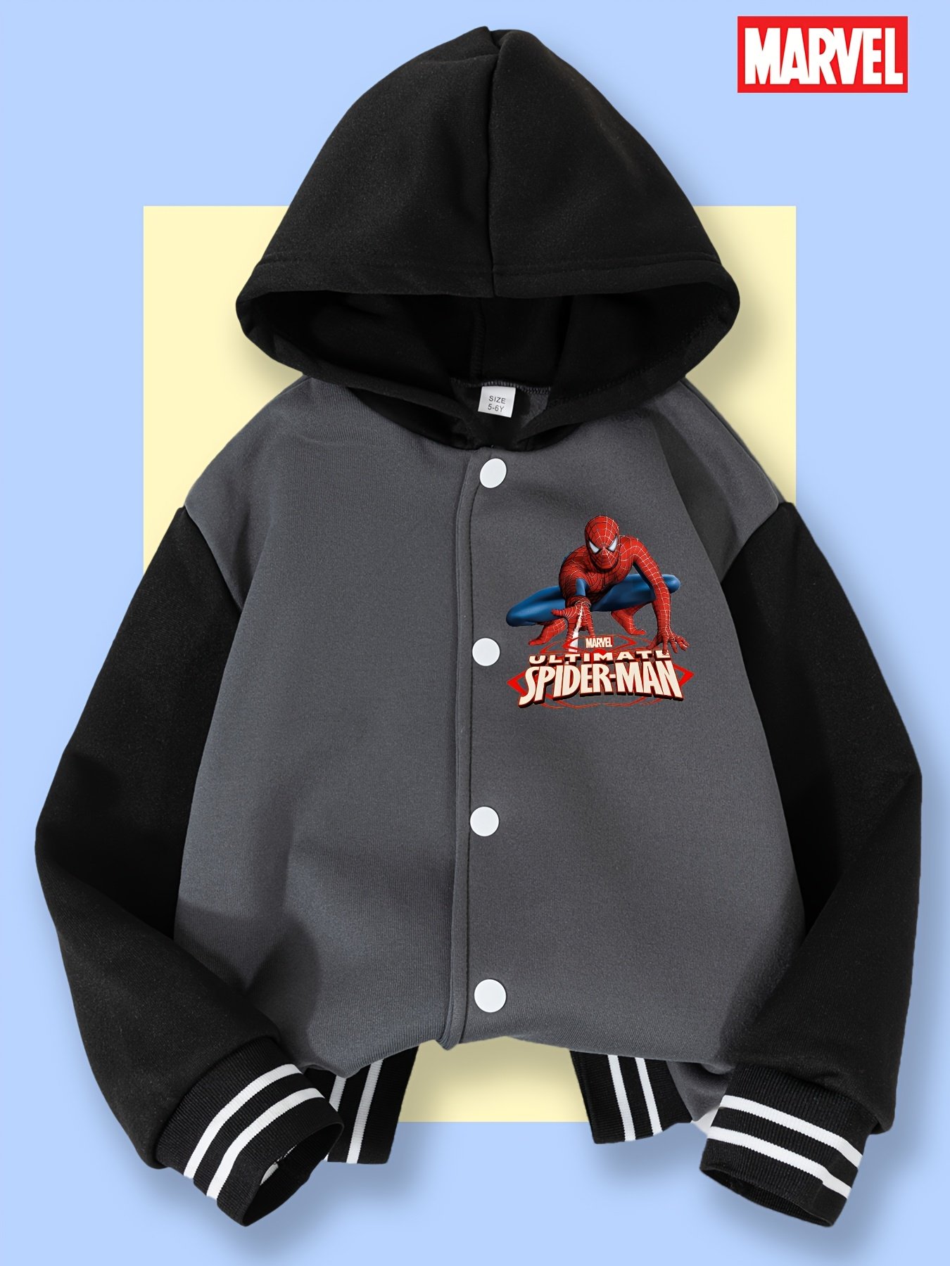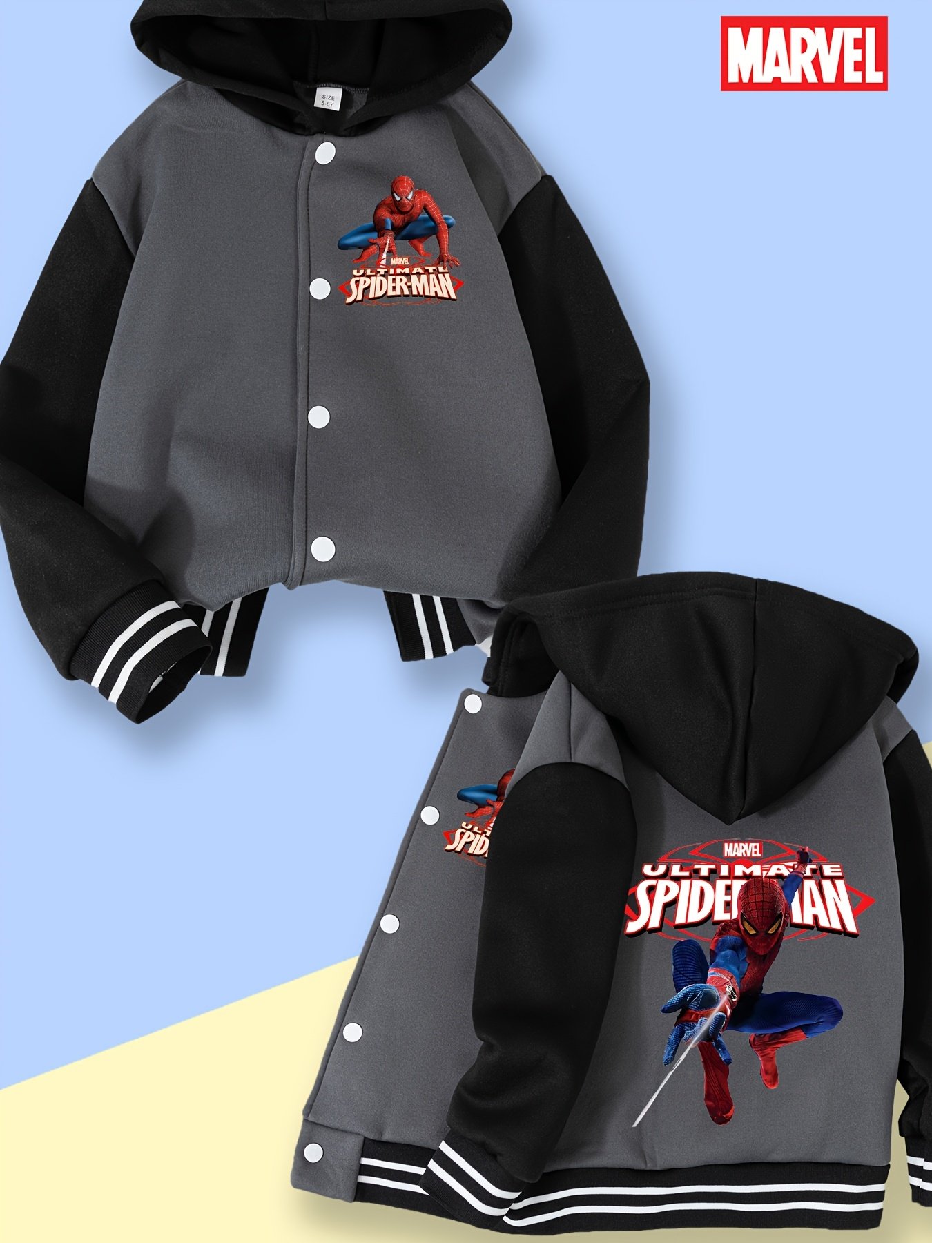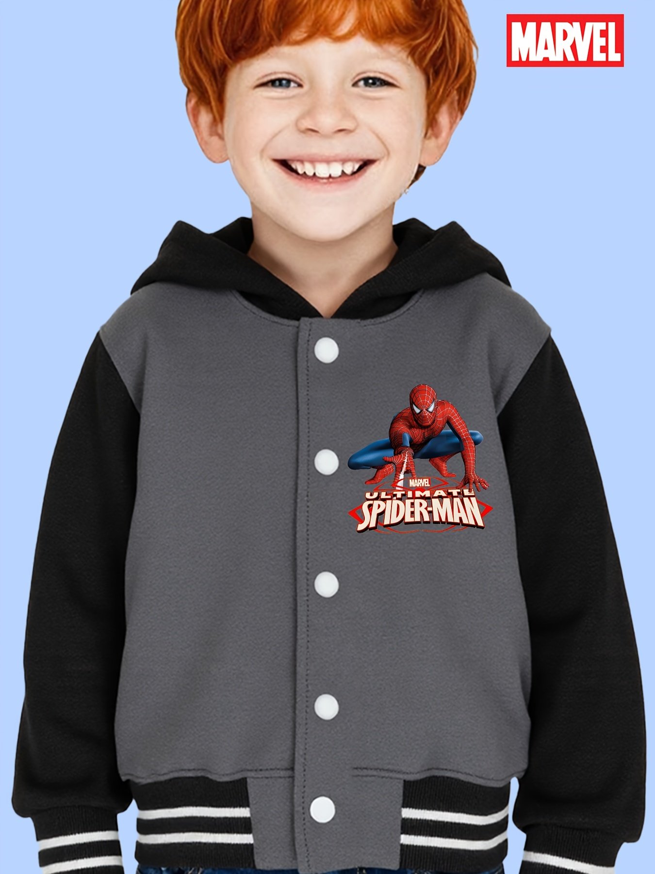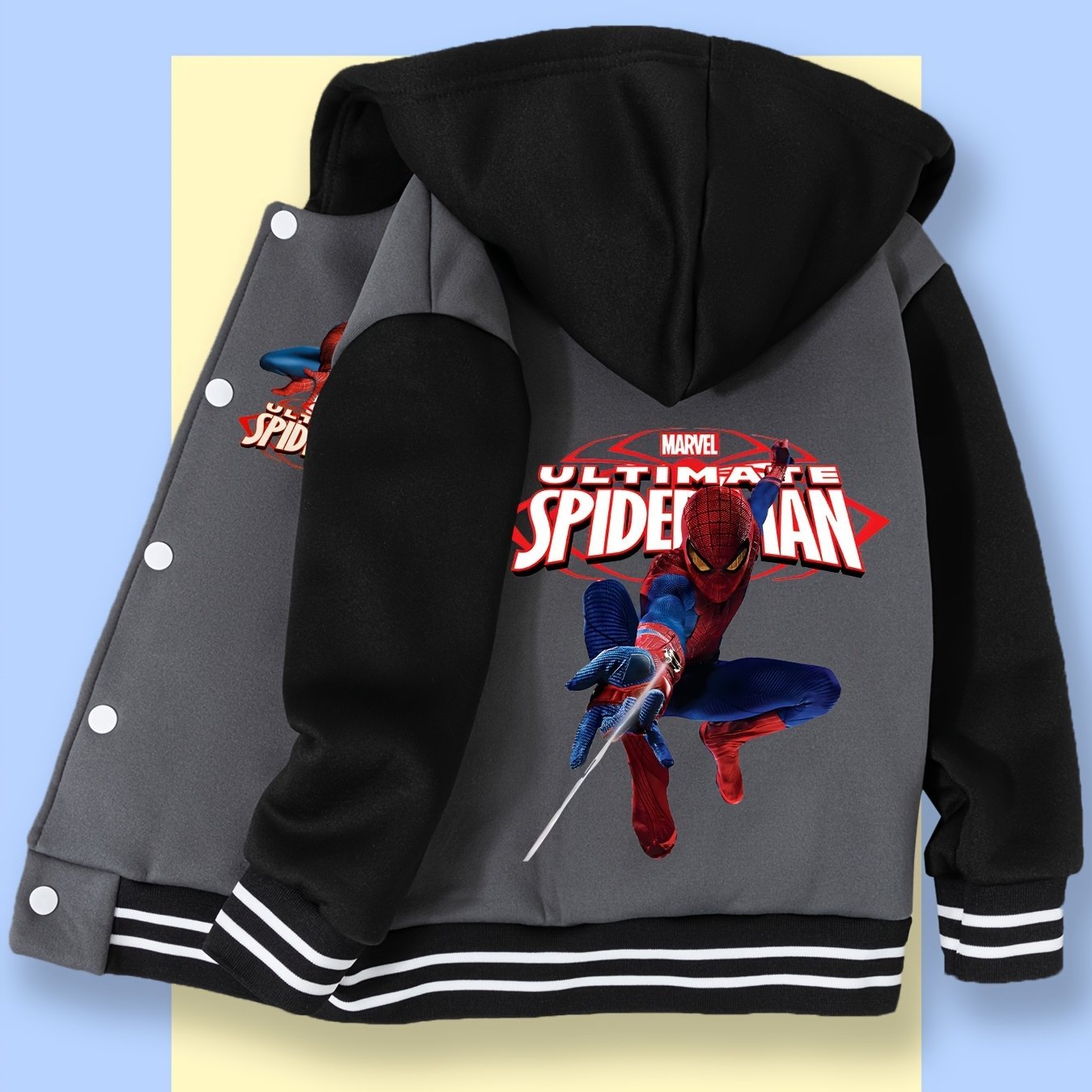 Marvel Spider-Man Themed Baseball Jackets for Boys And Girls, Featuring a Campus Jacket Design with Double-Sided Spider-Man Prints. These Casual Sports Jackets Are Perfect for The Back-To-School Season And Make Great Birthday Gifts for Children