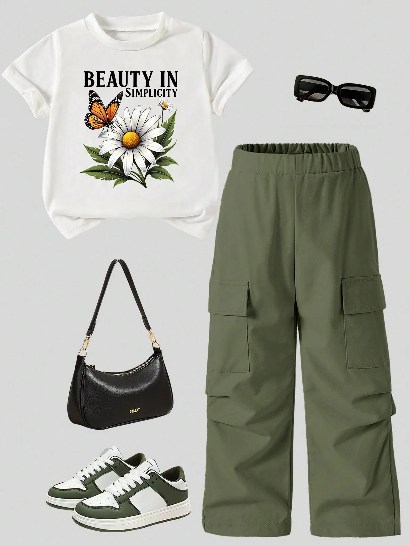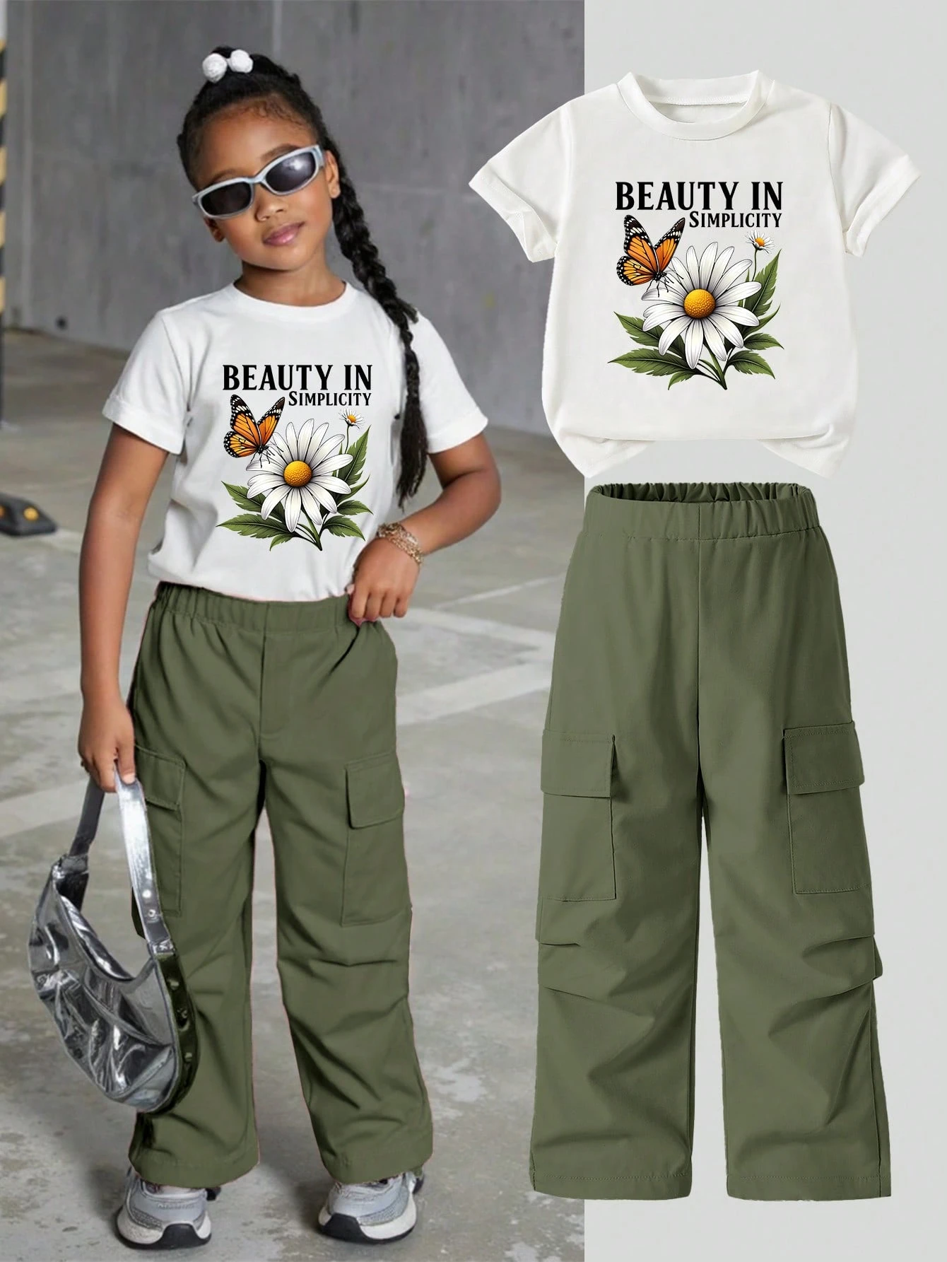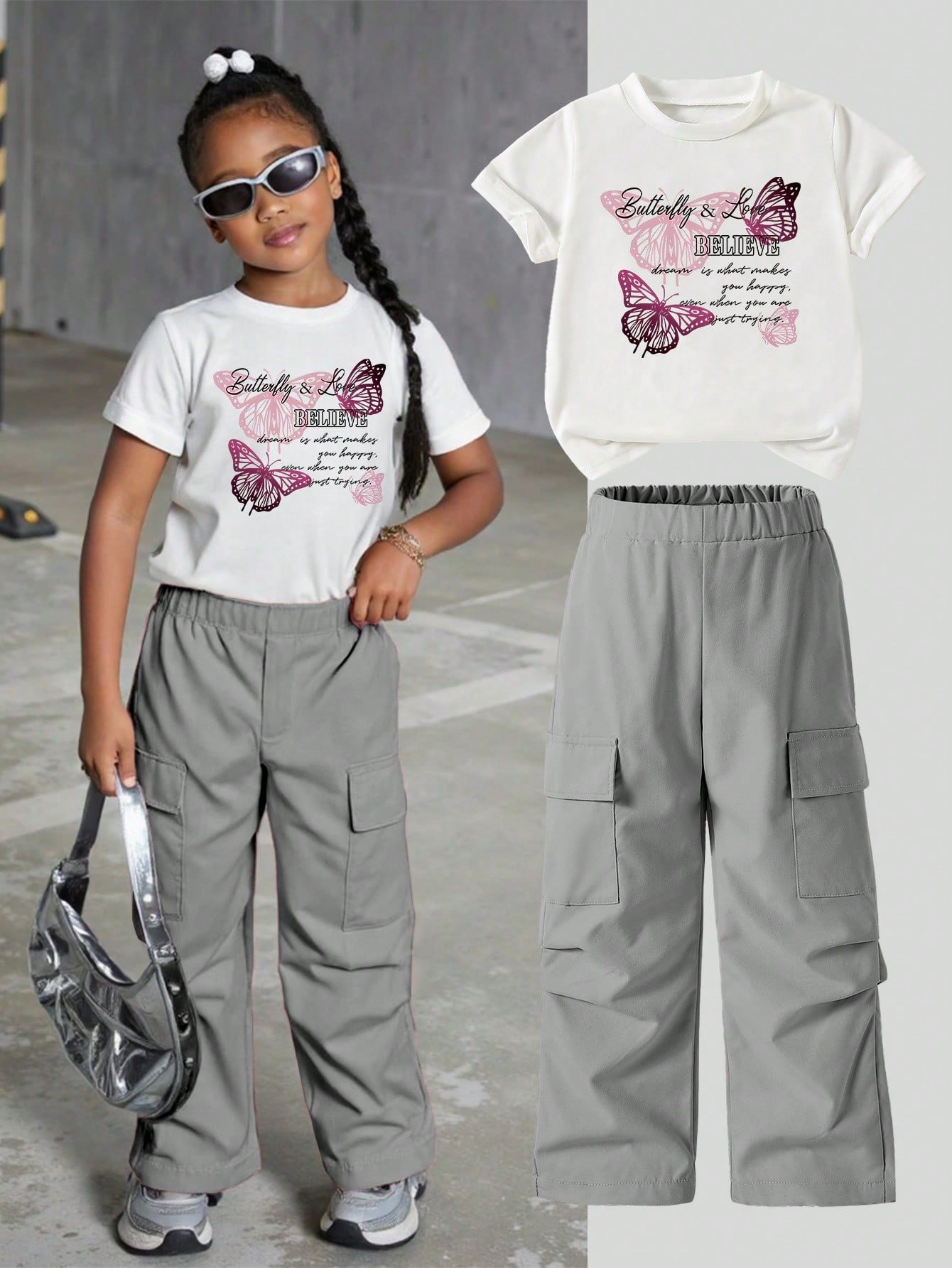 Be the first to review “SHEIN Young Girl Letter & Butterfly Print Short Sleeve T-Shirt With Cargo Pants Set” Cancel reply