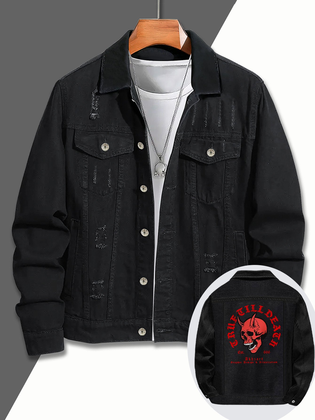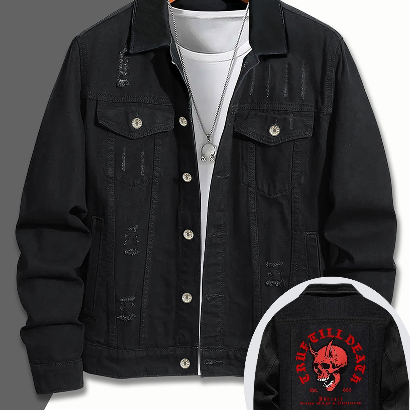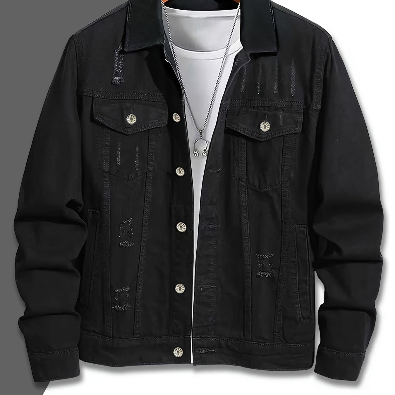 A Spring and Autumn New Men's Casual Trend Denim Jacket Jacket, Ripped Fashion Design, Street Style Suitable for Spring and Autumn Long-sleeved Men's Denim Jacket