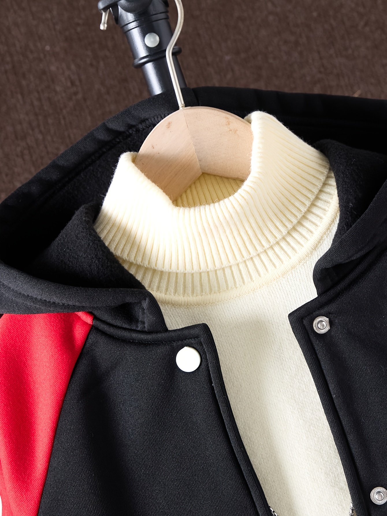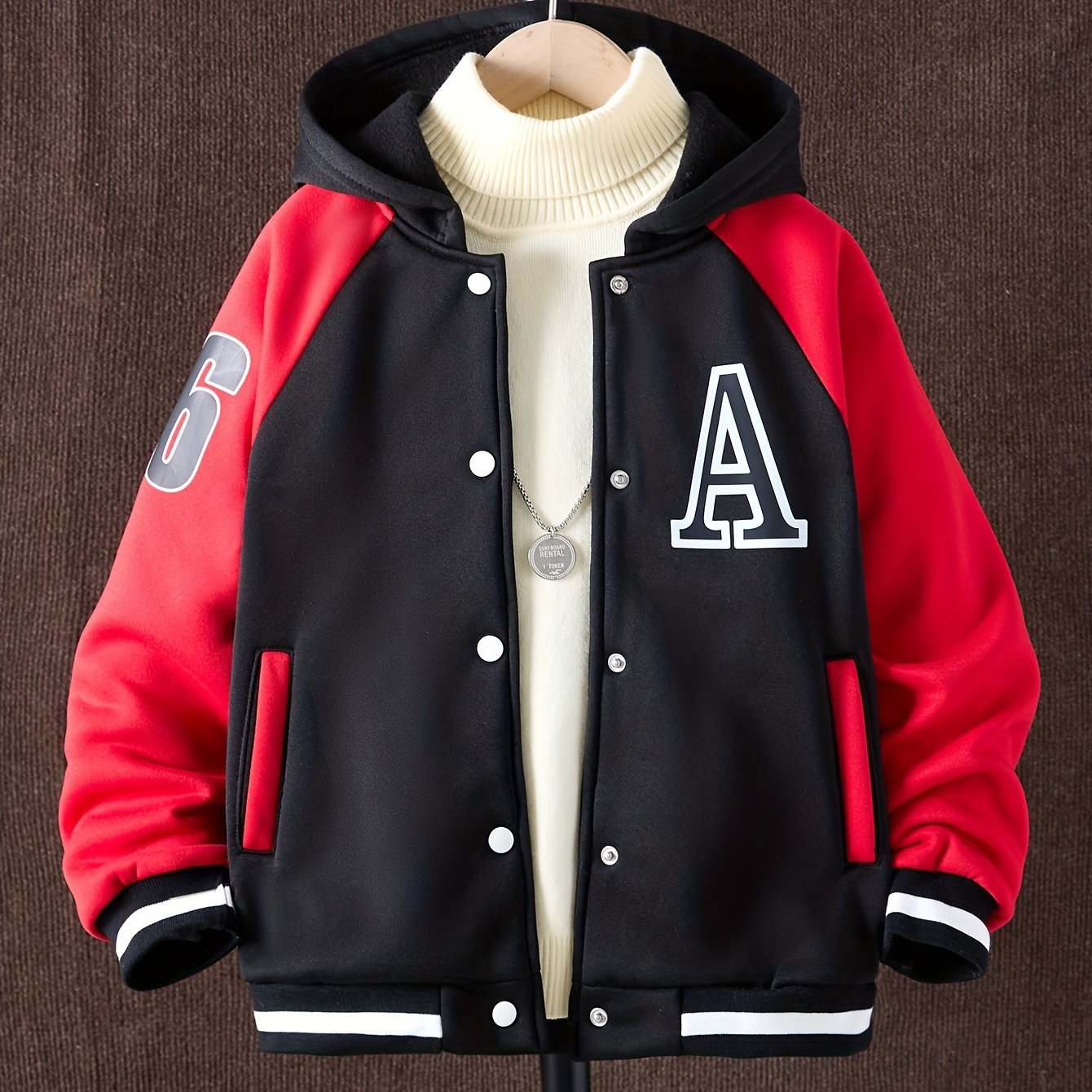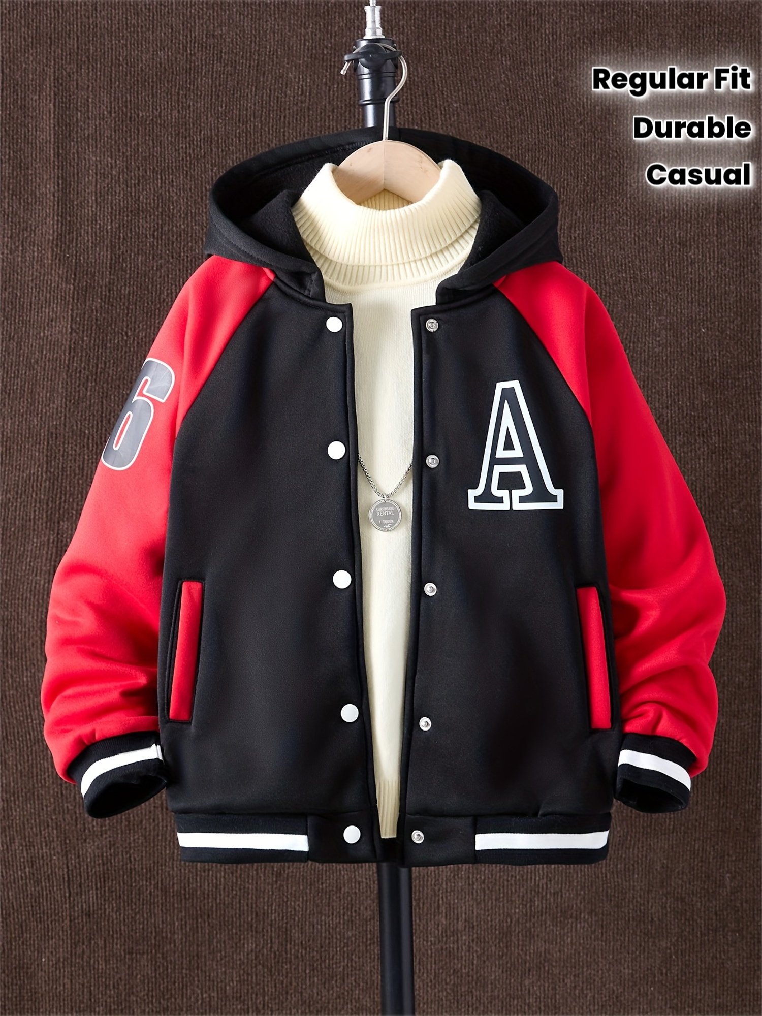 Be the first to review “Boys' Casual Hooded Fleece-Lined Jacket with &quote;A&quote; Letter Print – Red & Color Block, Long Sleeve, Button-Up Front, Geometric Pattern, Regular Fit For Fall/winter, Boy Jacket, Winter Clothing, Durable Fabric” Cancel reply