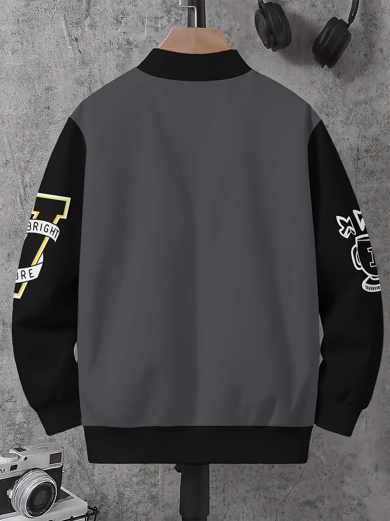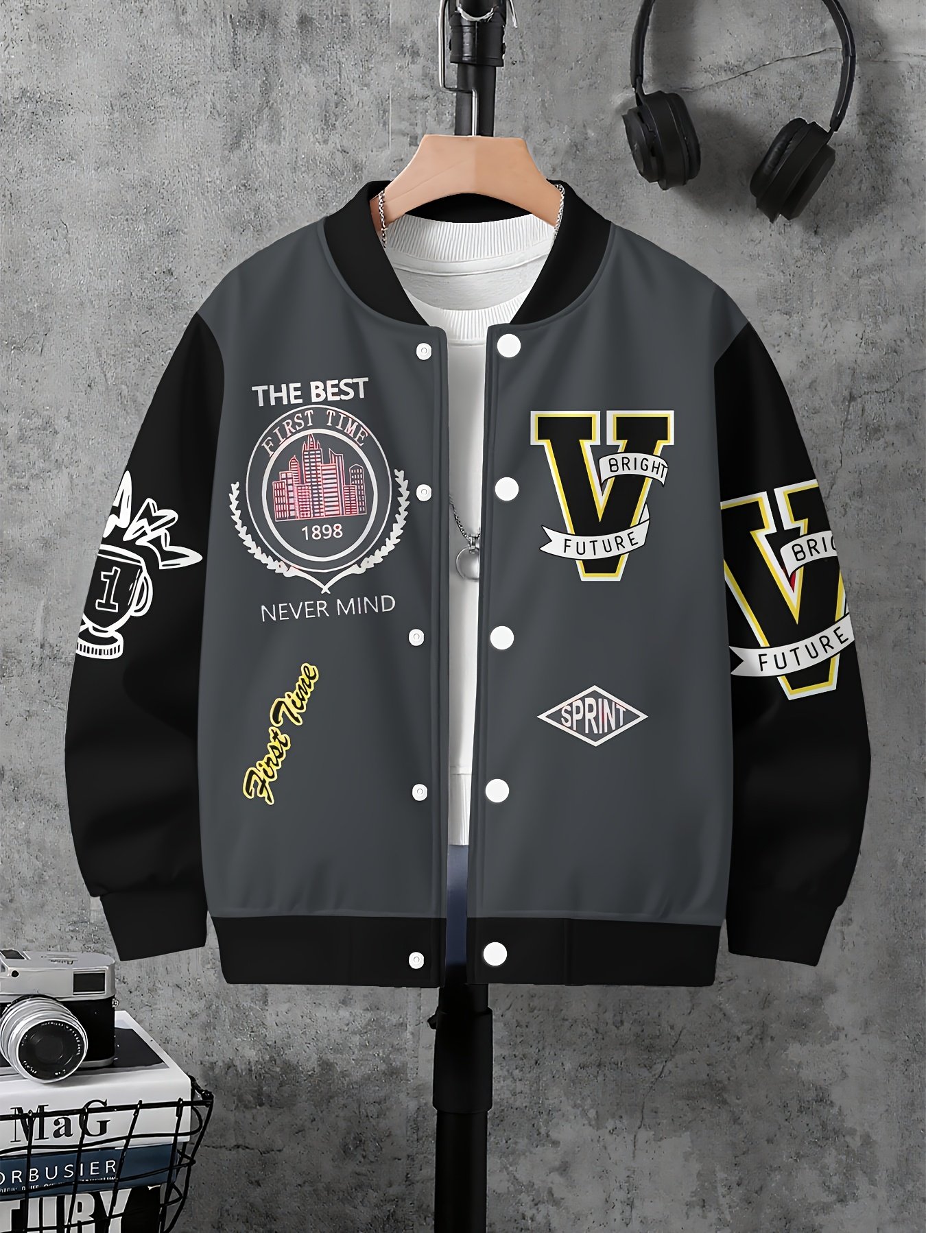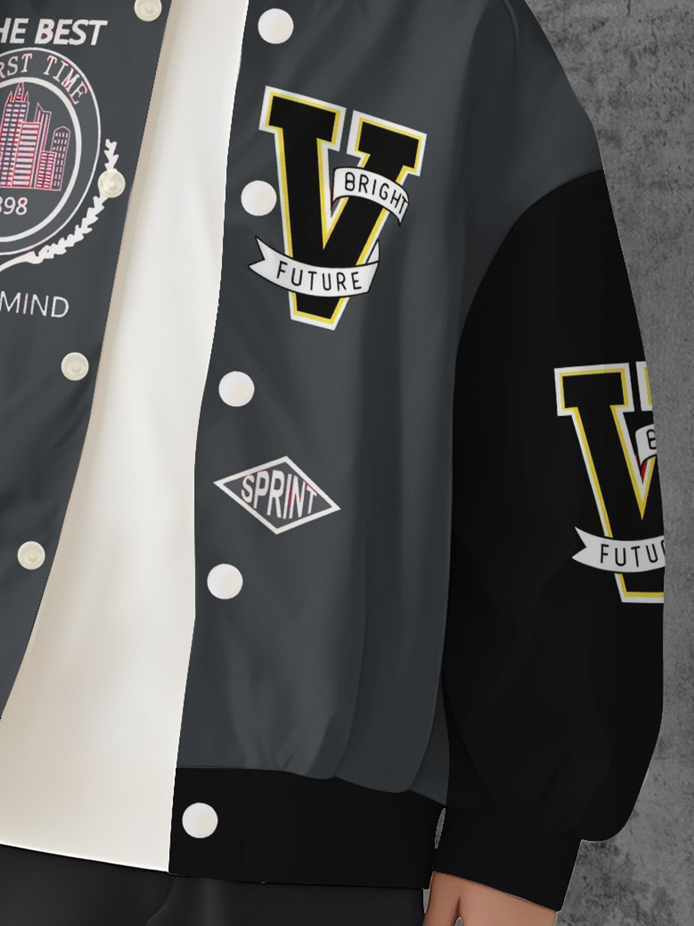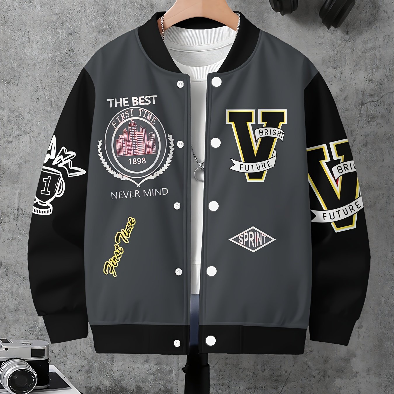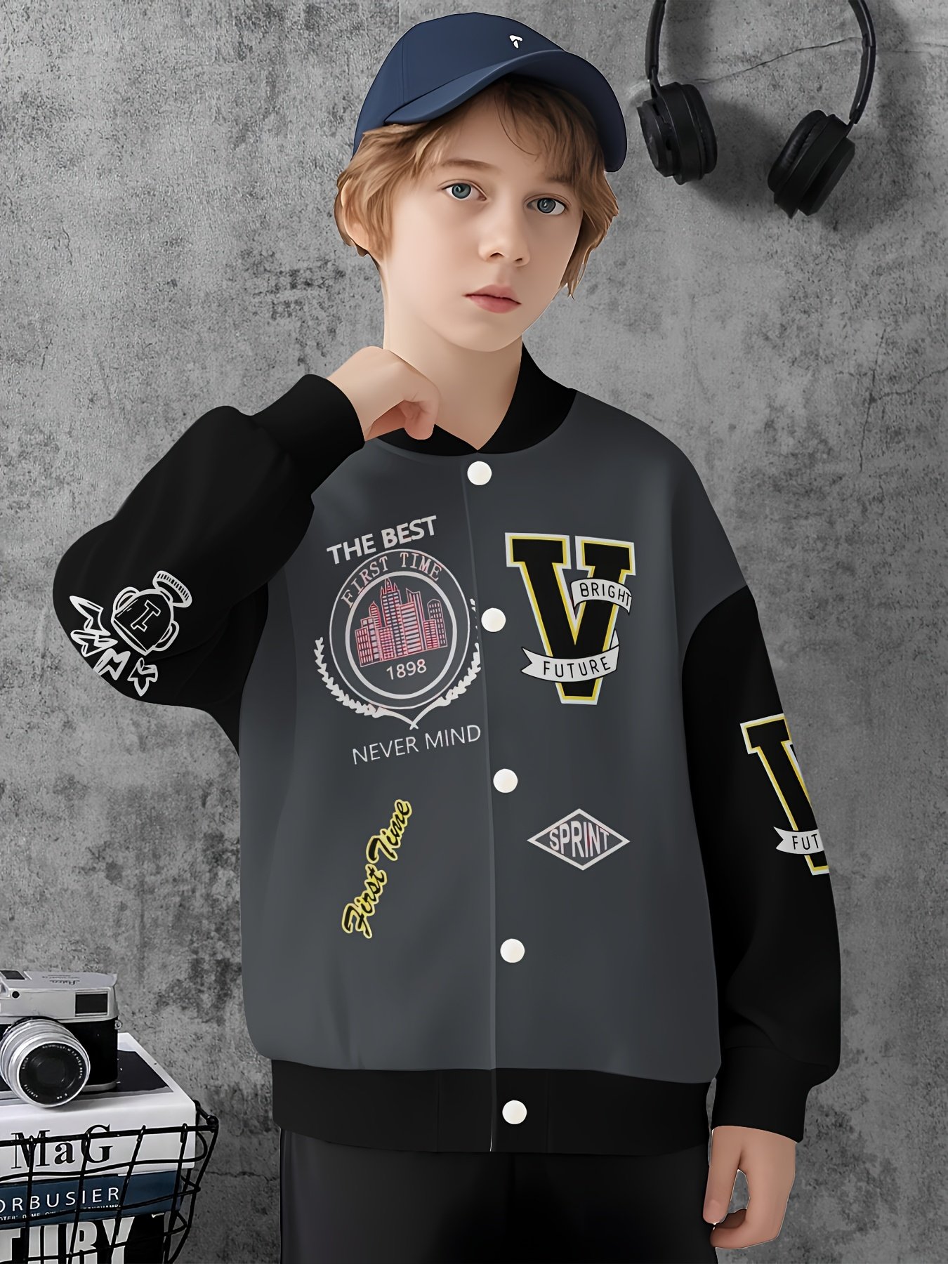 Boys' Jacket, Kids Baseball Uniform Casual Fashion Cool Pattern Print Trendy English Letter New Stylish Versatile Crew Neck Daily Wear